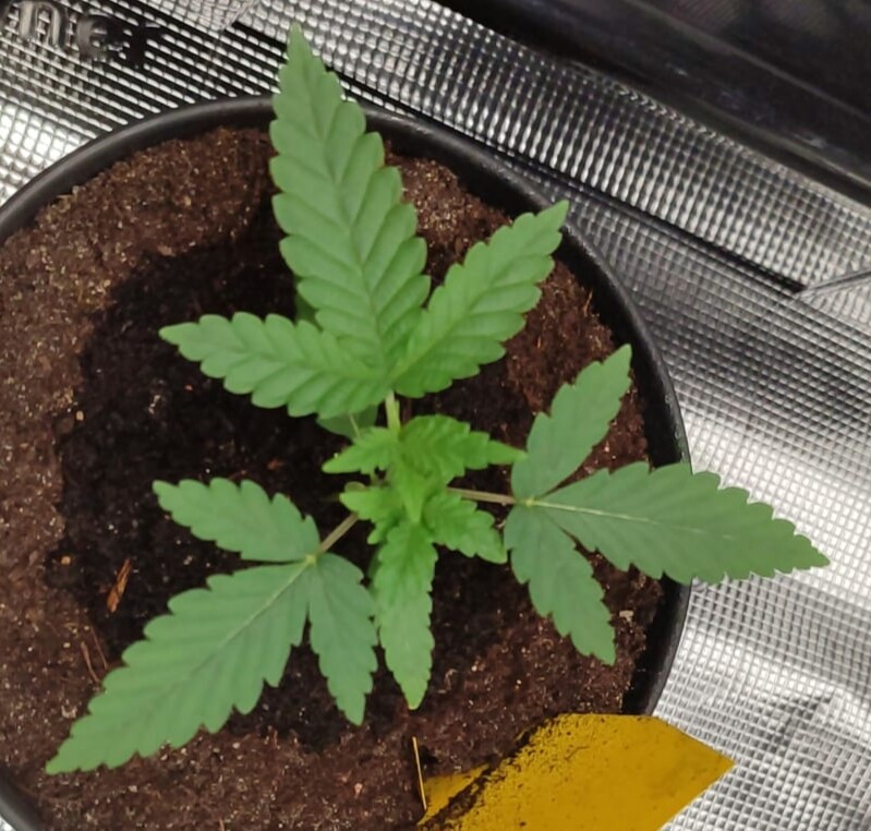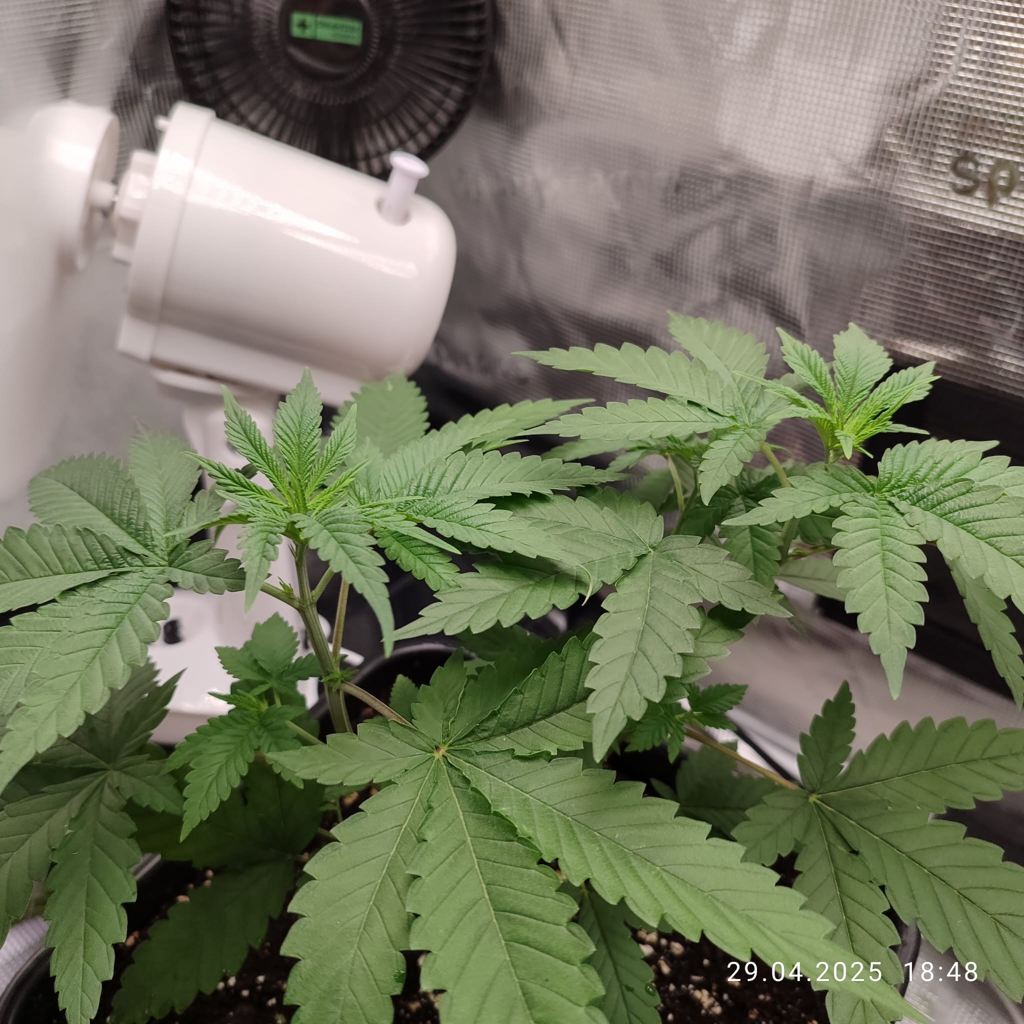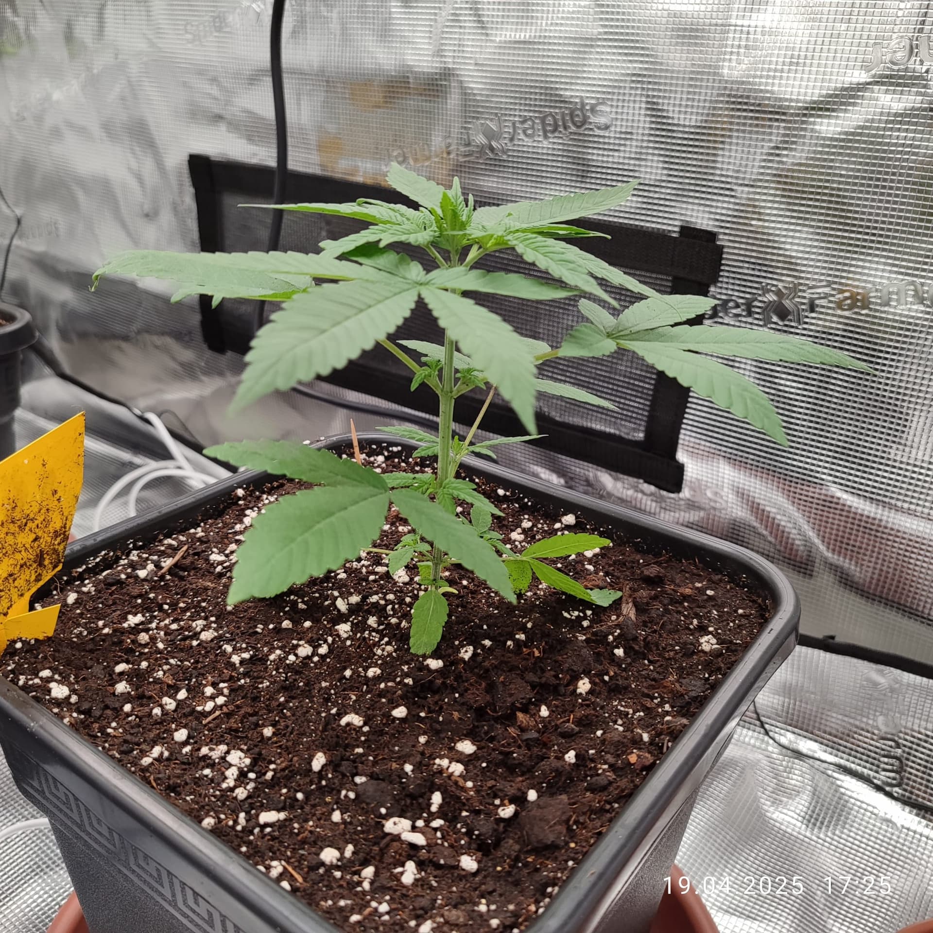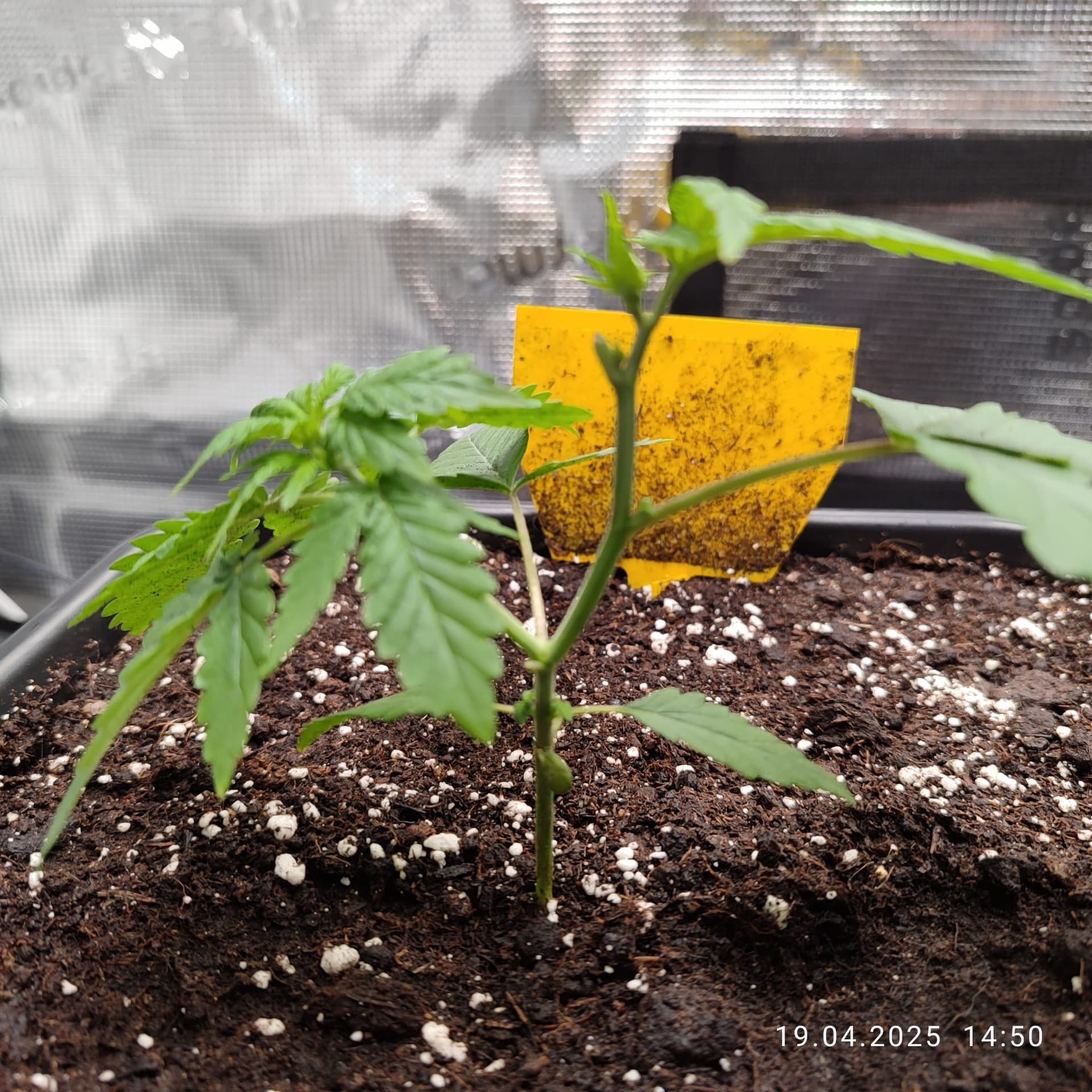 Die Blätter hängen etwas weil gerade umgetopf und bewässert. Im gegensatz zu ihrer Schwester im Zelt, wächst sie noch sehr kompakt. Aber mal schauen was noch wird.
