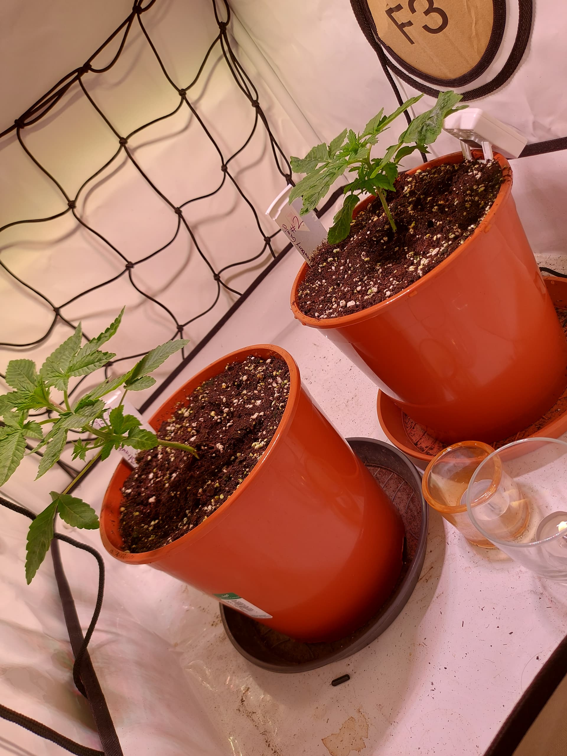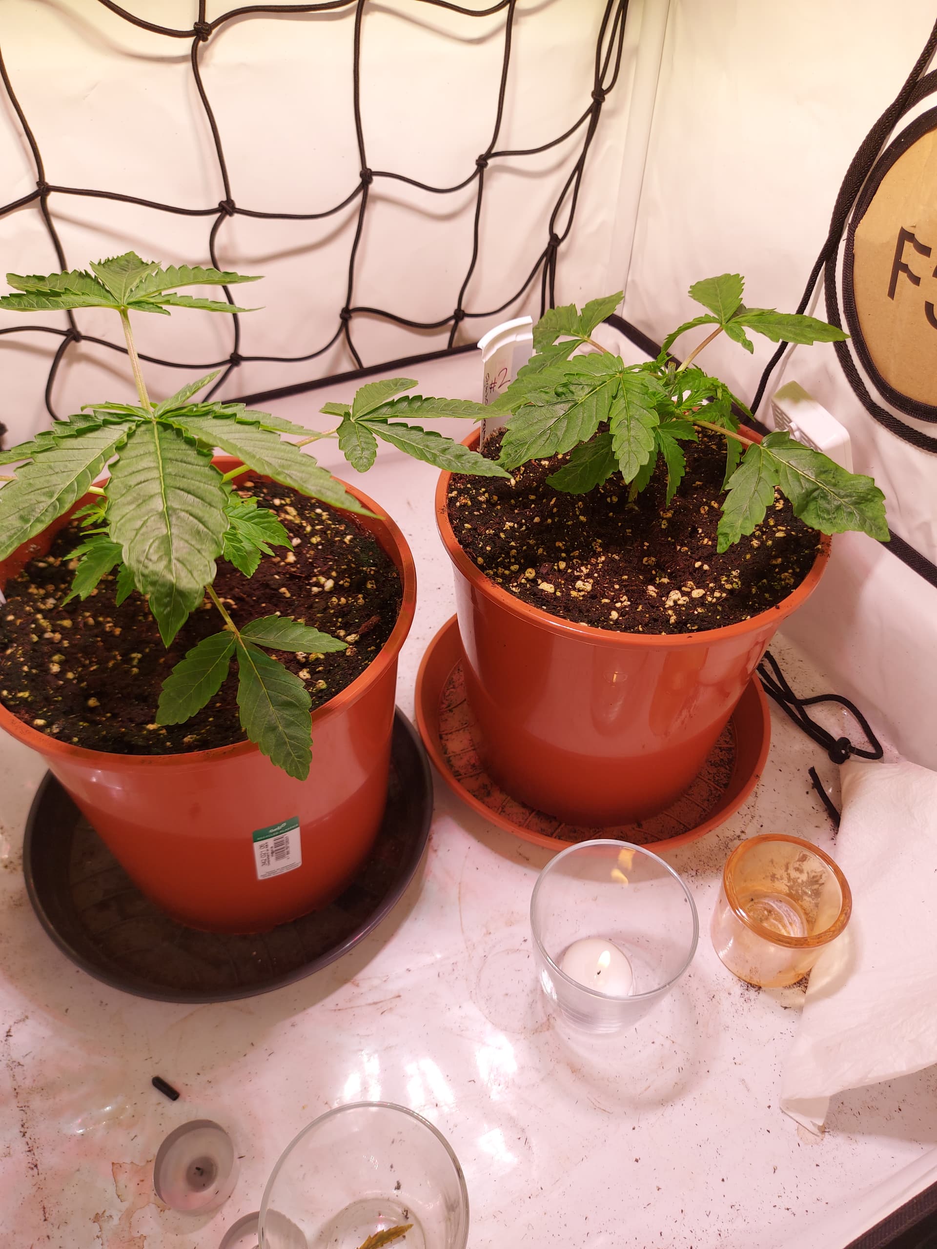 Am Wochenende habe ich sie außerdem in ihre 15l Endtöpfe gesetzt. Unten eine ca 2cm hohe drainage schicht aus ton-kügelchen. Ich lasse sie jetzt bis Mittwoch in ruhe und dann wird auf 12/12 gestellt. Nummer 1 Streckt sich so schon ganz schön in die höhe aber dank des Scrog Netzes, welches ich dann aufspanne, werde ich das schon hinbekommen.