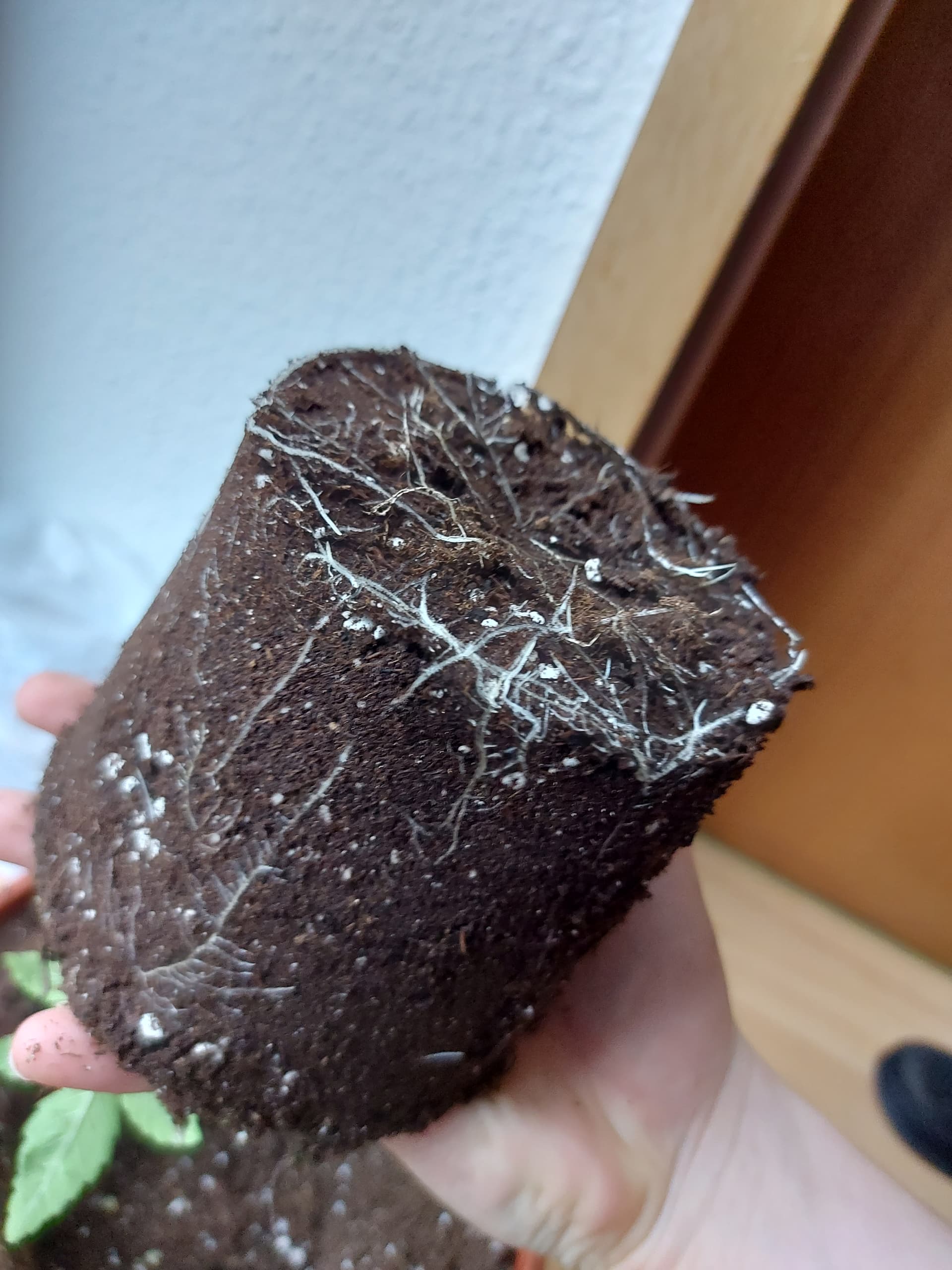 So richtig durchgewurzelt war der Topf leider auch nicht obwohl bei beiden die Wurzeln unten raus geschaut haben, Nummer 2 wollte sogar kurz lieber in einer Hydrokultur wachsen. Ich vermute für Cannabis eignen sich längere Pflanzgefäße besser. Wenn dort die Wurzeln unten raus kommen kann man schon eher davon ausgehen dass der Topf gut durchgewurzelt ist.