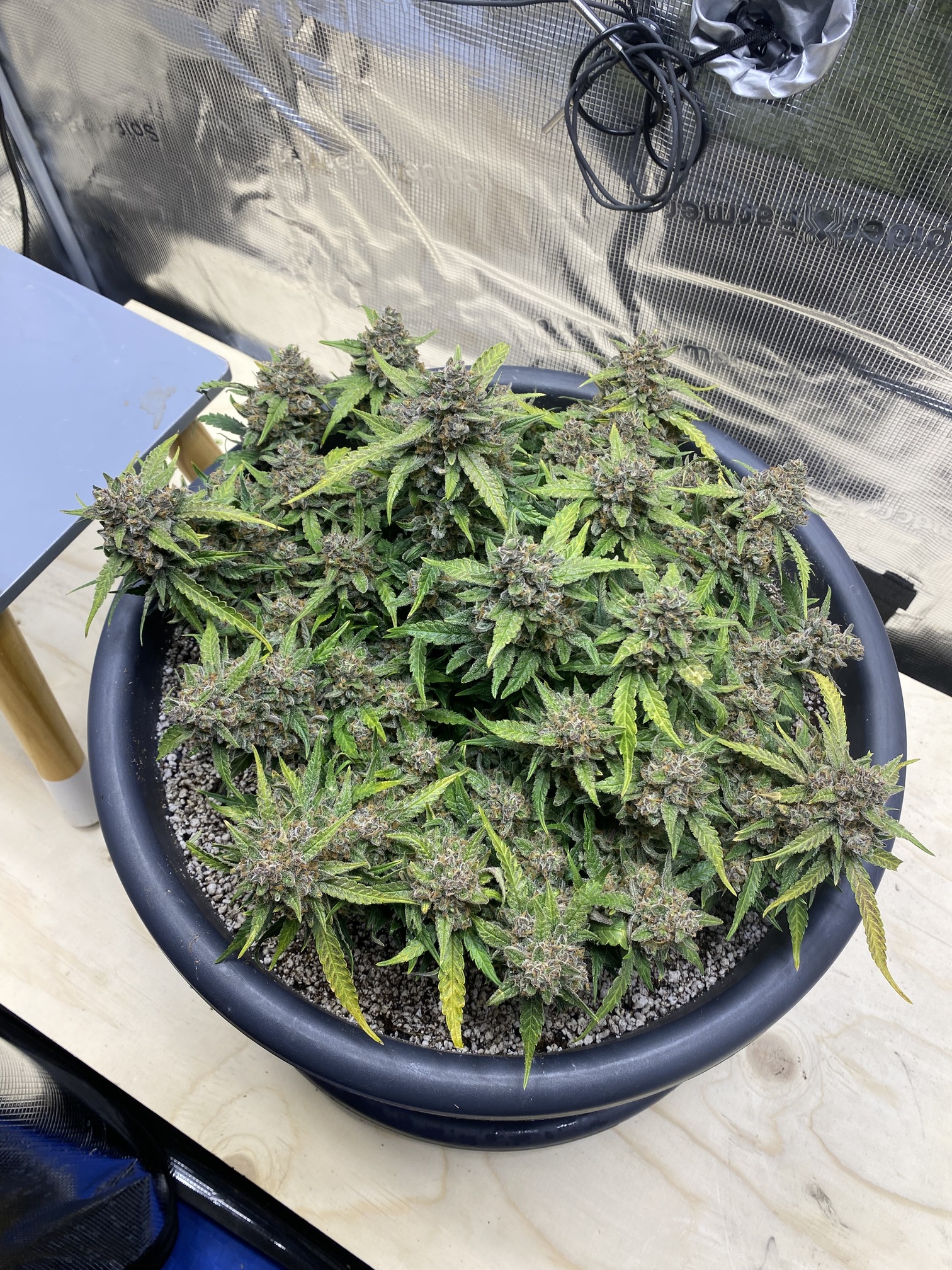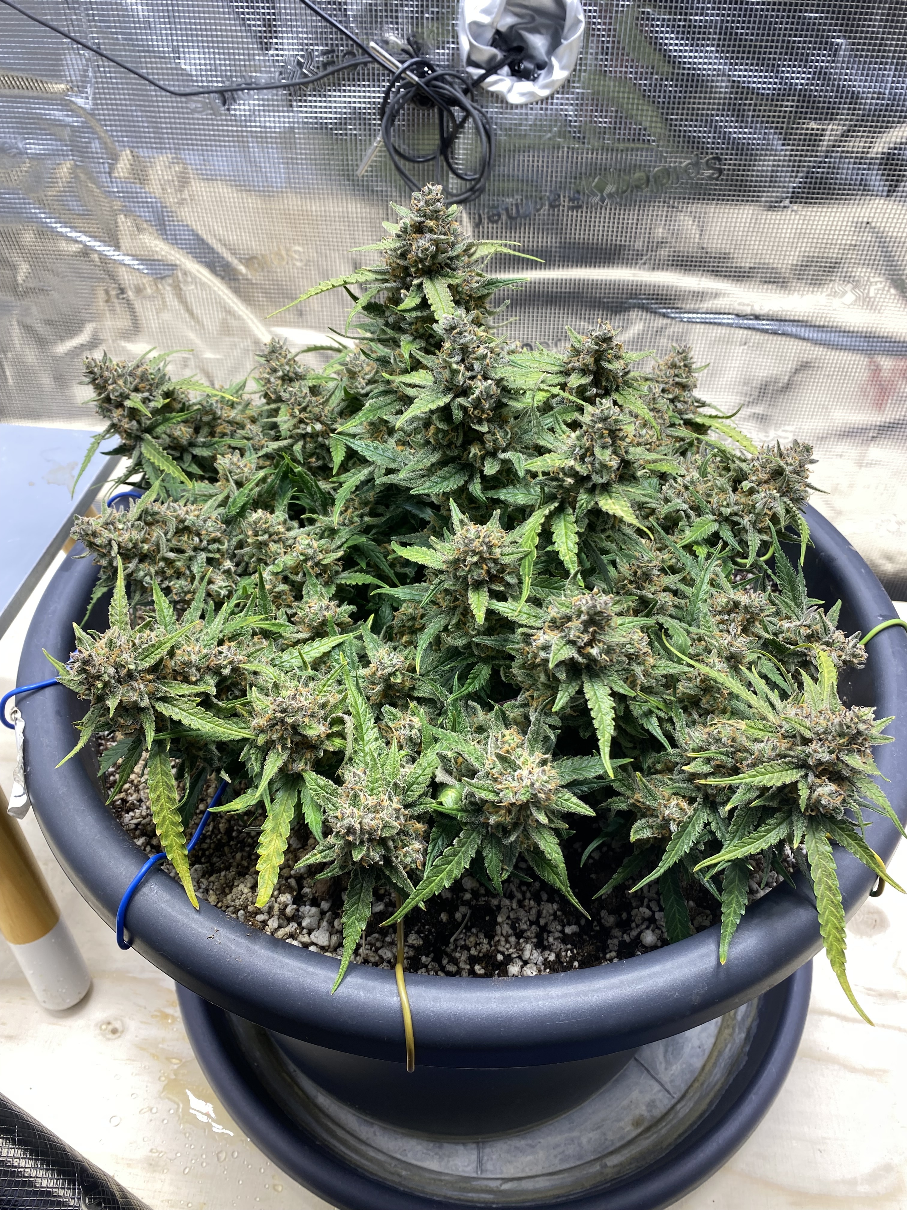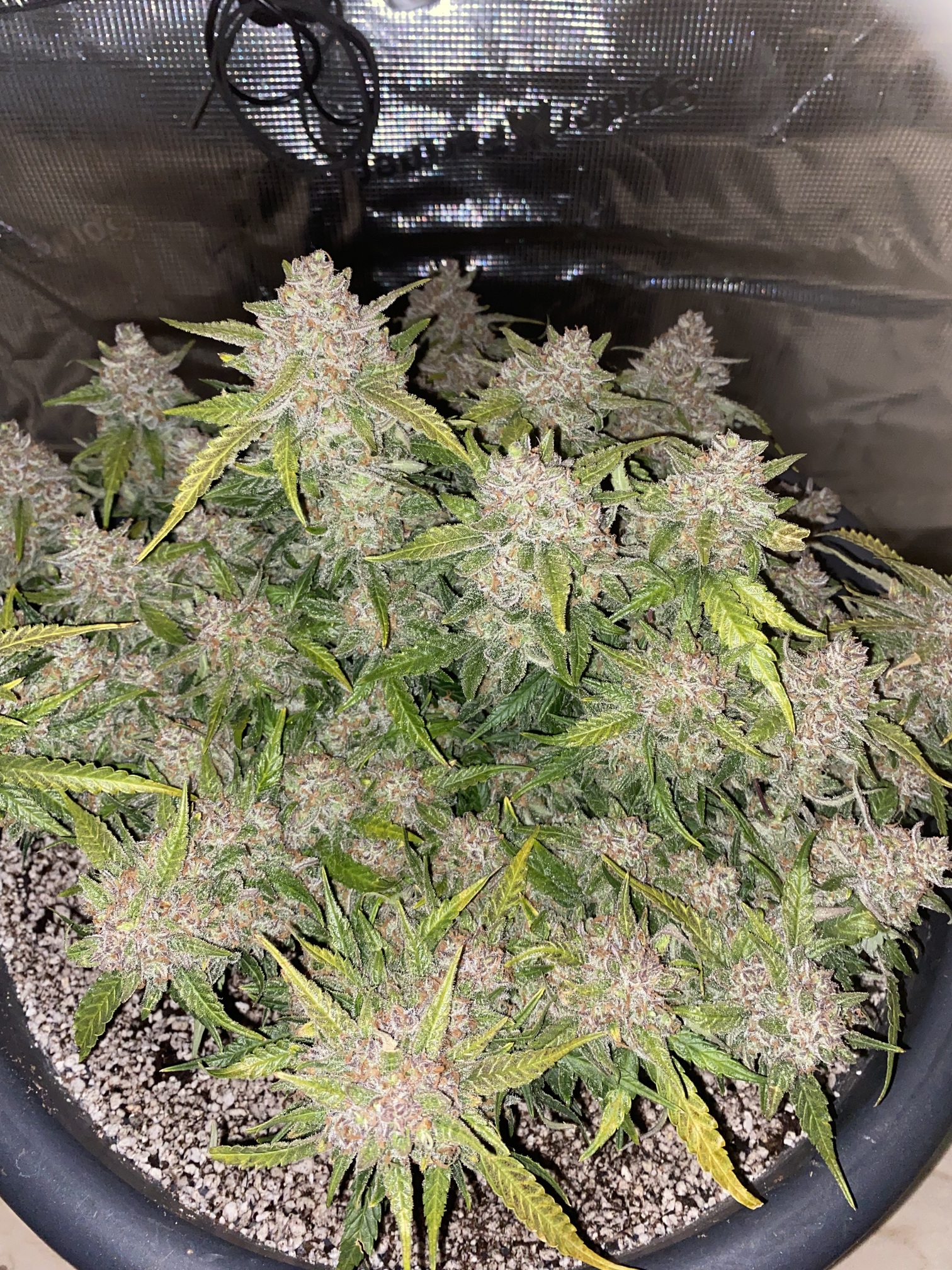 Und weil ich euch so gern hab und nix verheimlichen will, hat mein Gewissen mir in den Arsch getrennt das ich wenigstens mal einen Einblick biete ins Zelt über das momentan kein Report läuft (sry) aber hier schaut selbst das ist alles im selben DIY Mix den die Mimosa Orange Punch auch hatte bloß hier hab ich zum Start mit Clonex ProSolution begonnen und immer etwas TA Calmag dabei gehabt ansonsten nur Wasser und EM bisher