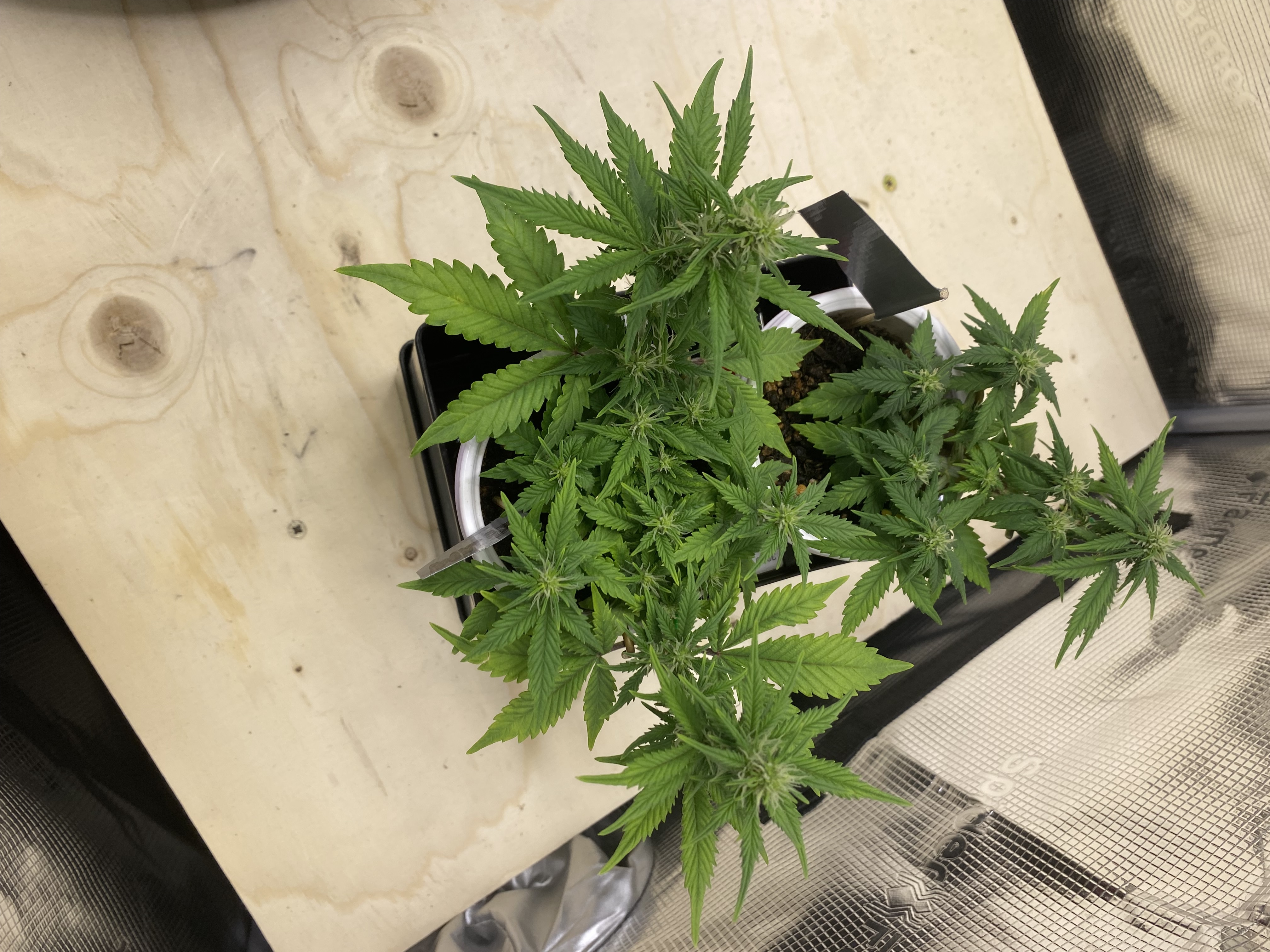 Zu den zwei kleinen die ich nebenbei im Bierpongbecher Grow die sind nun in der blühte der Behindi der beiden hat sich etwas gefangen und sieht aus wie getoppt obwohl das nicht der Fall ist und die Mrs.Hamp hat nochmal die Zange abbekommen