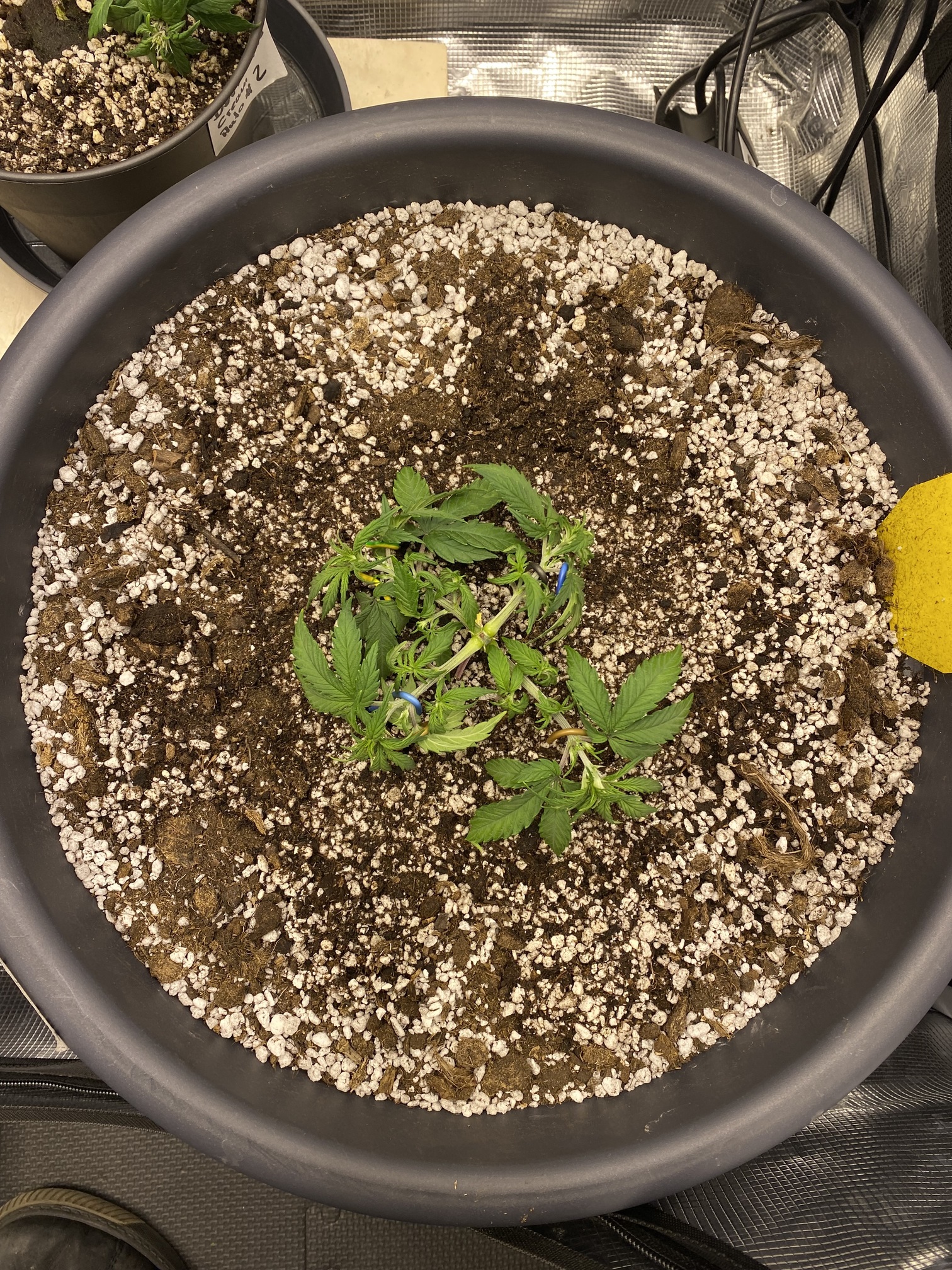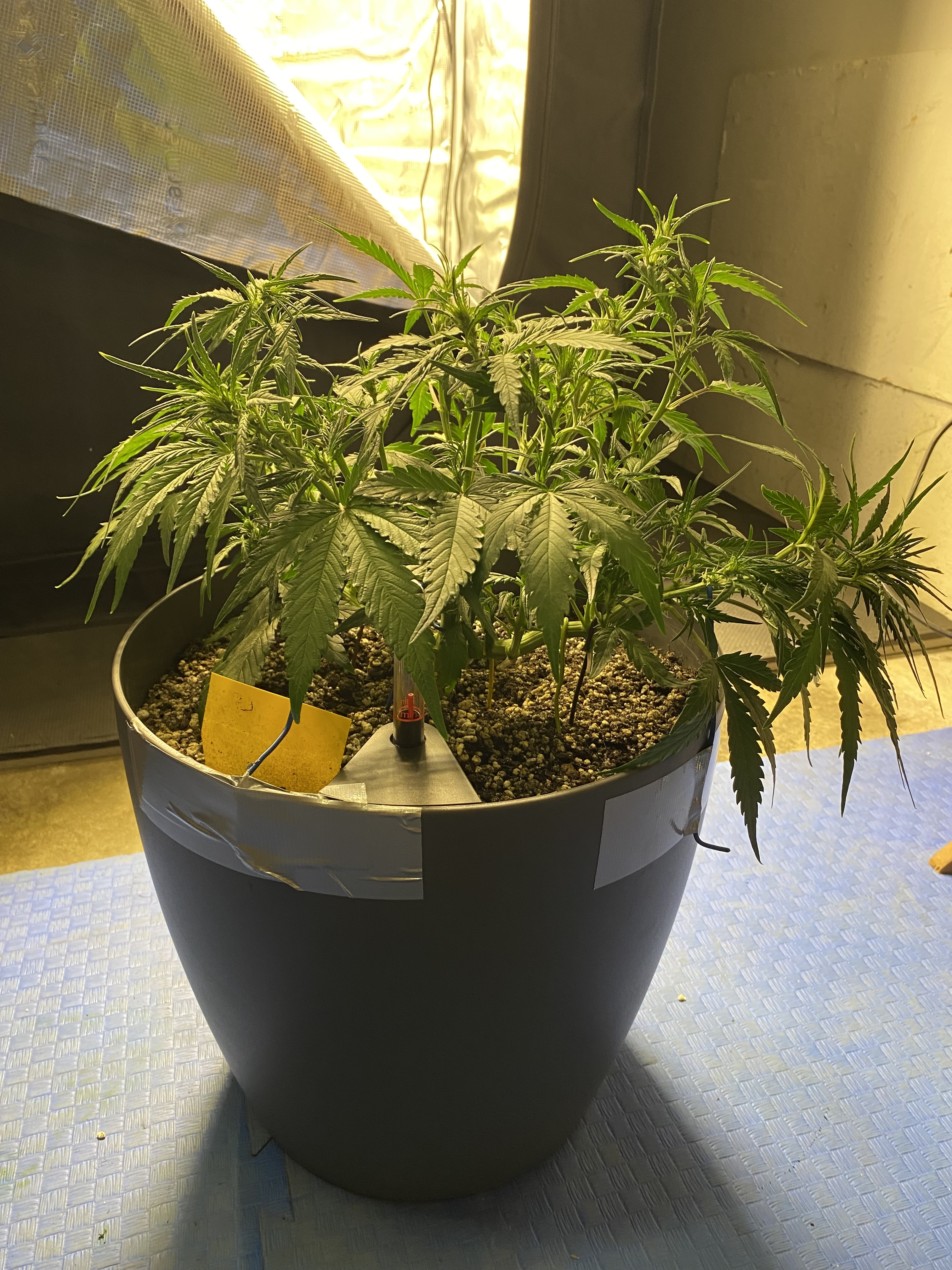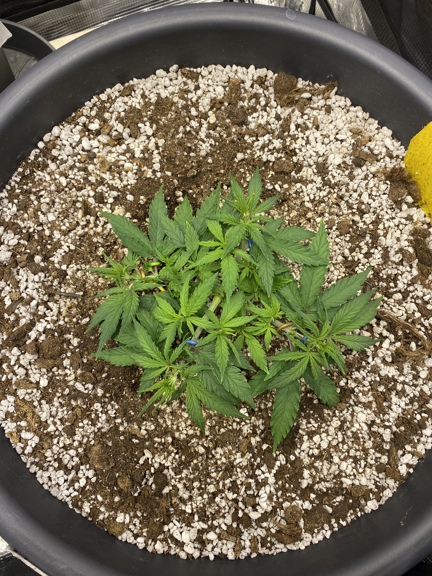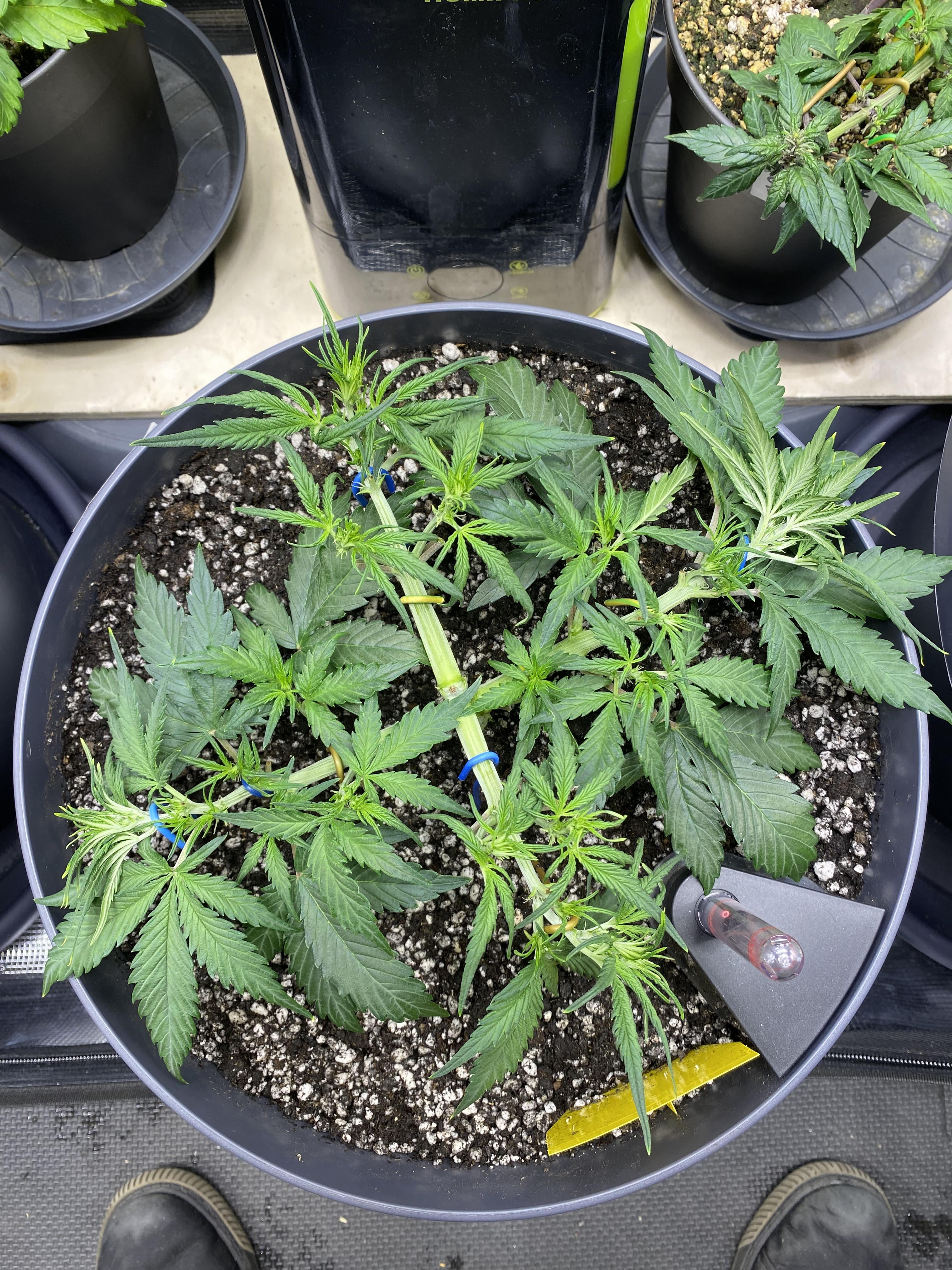 hat bekommen 500ml Yucca Lösung gesprüht um die Oberflächen Spannung zu lösen und dann 2L Futte mit 2ml/L Bloom und 1ml/L calmag und dann pH so das 5,8 war und der EC 1,2 das hab ich zu schnell gekippt so das die Mitte gut gesaugt hat aber außen waren noch trocken Spots under den ersten 2cm feuchte Erde also gabs ausen rum am Rand nochmal 2L der selben Lösung jetzt is alles gut feucht das ganze hat mich Zuviel meines abgestanden Wassers gekostet