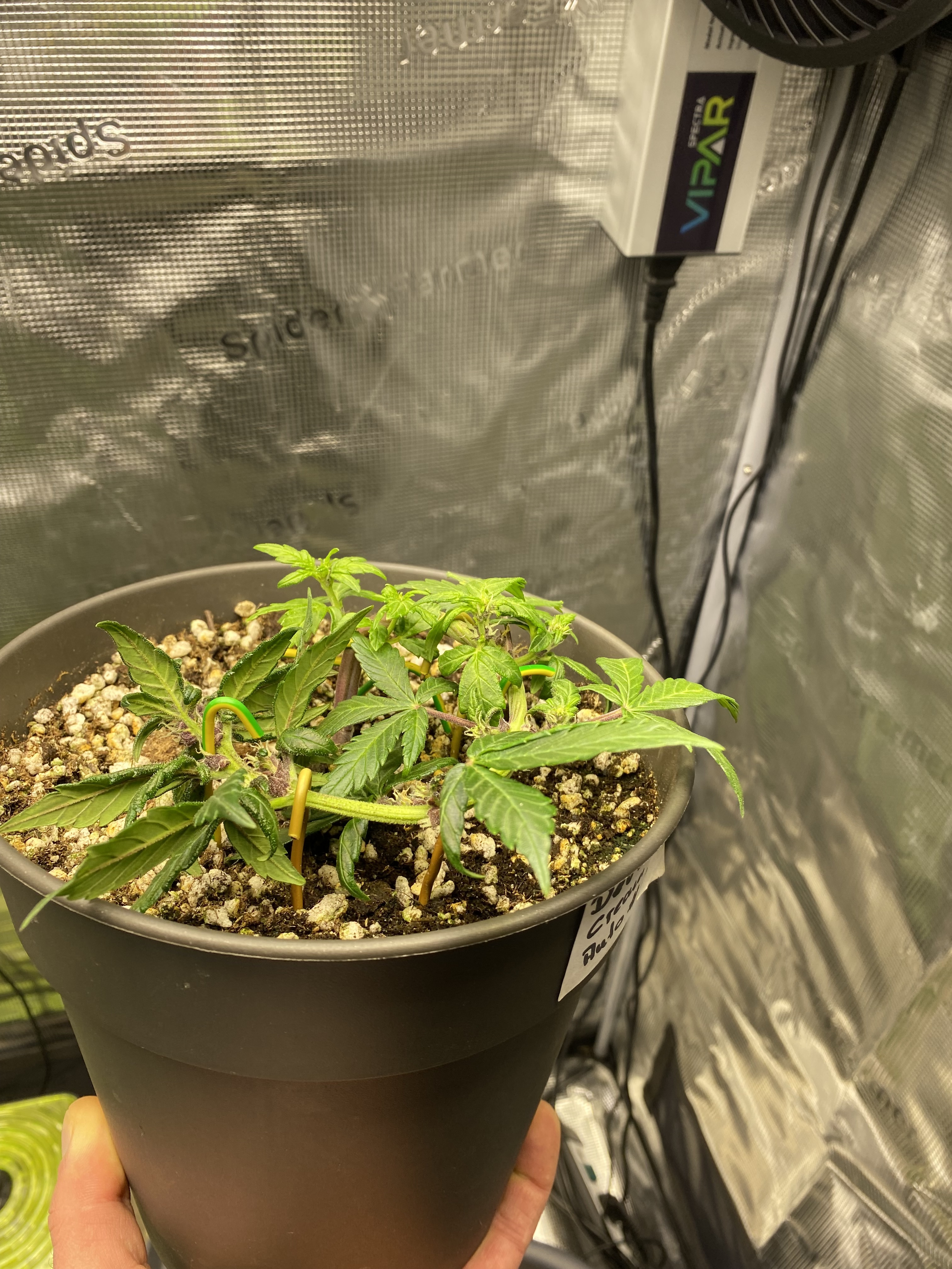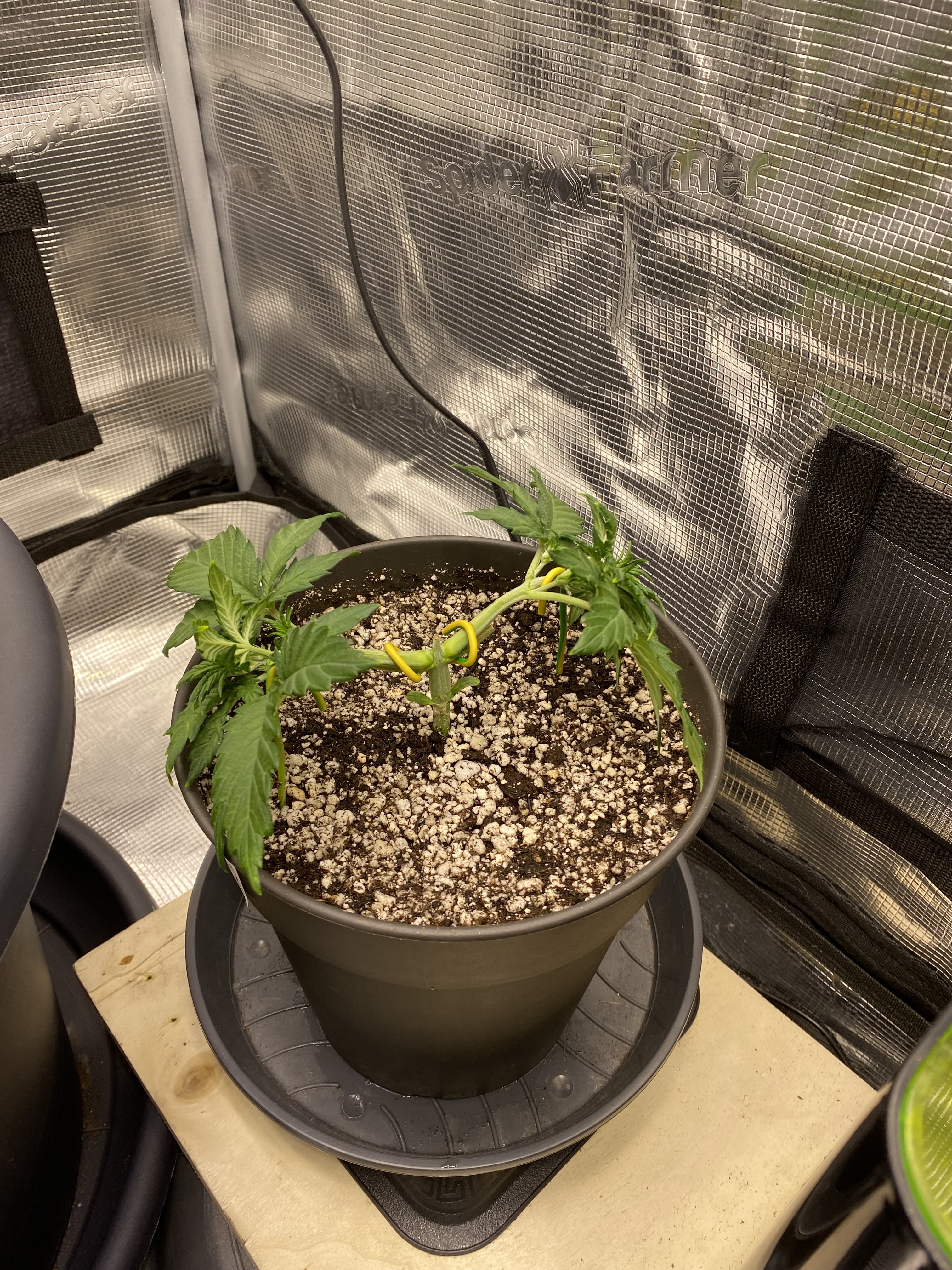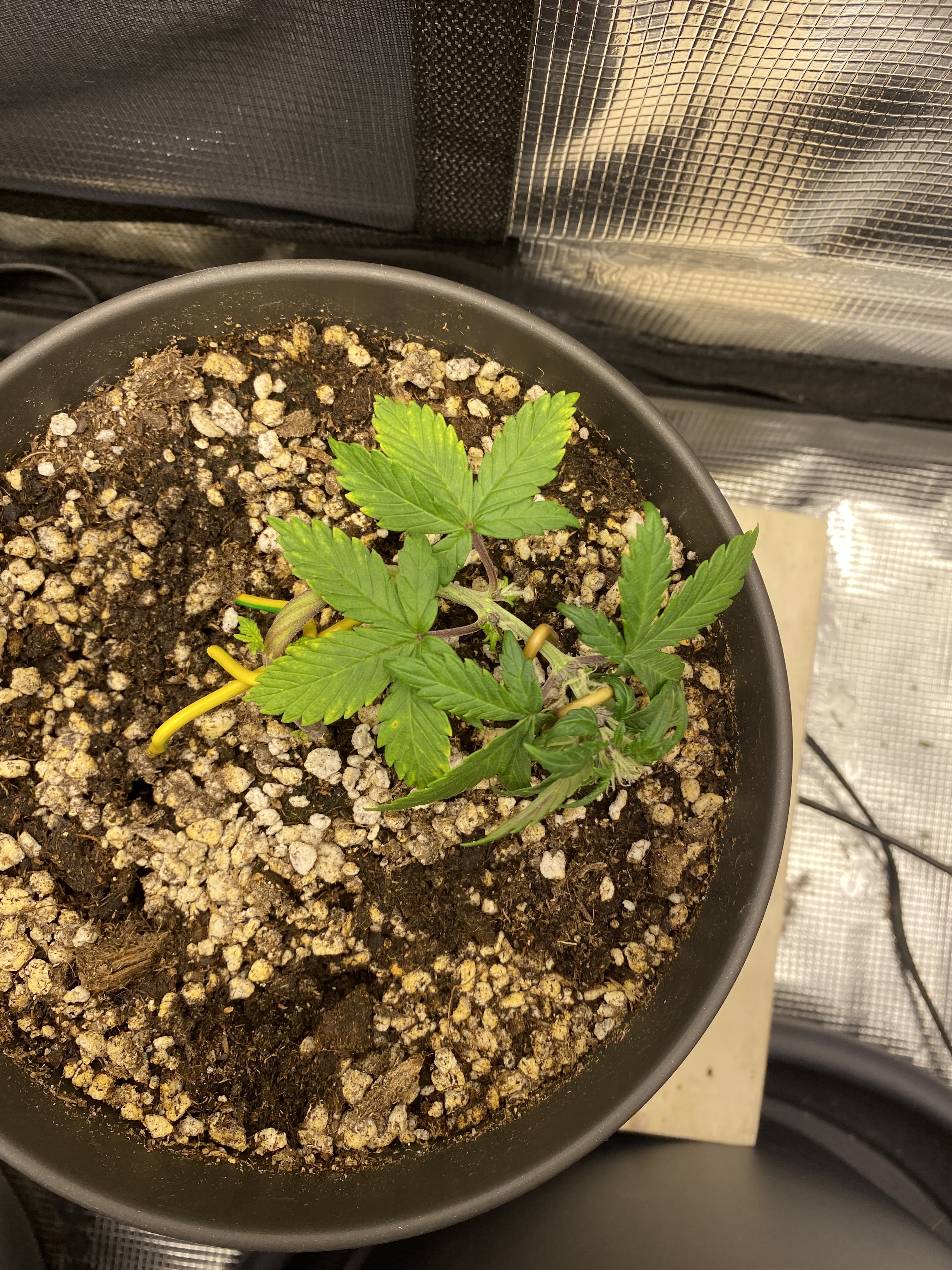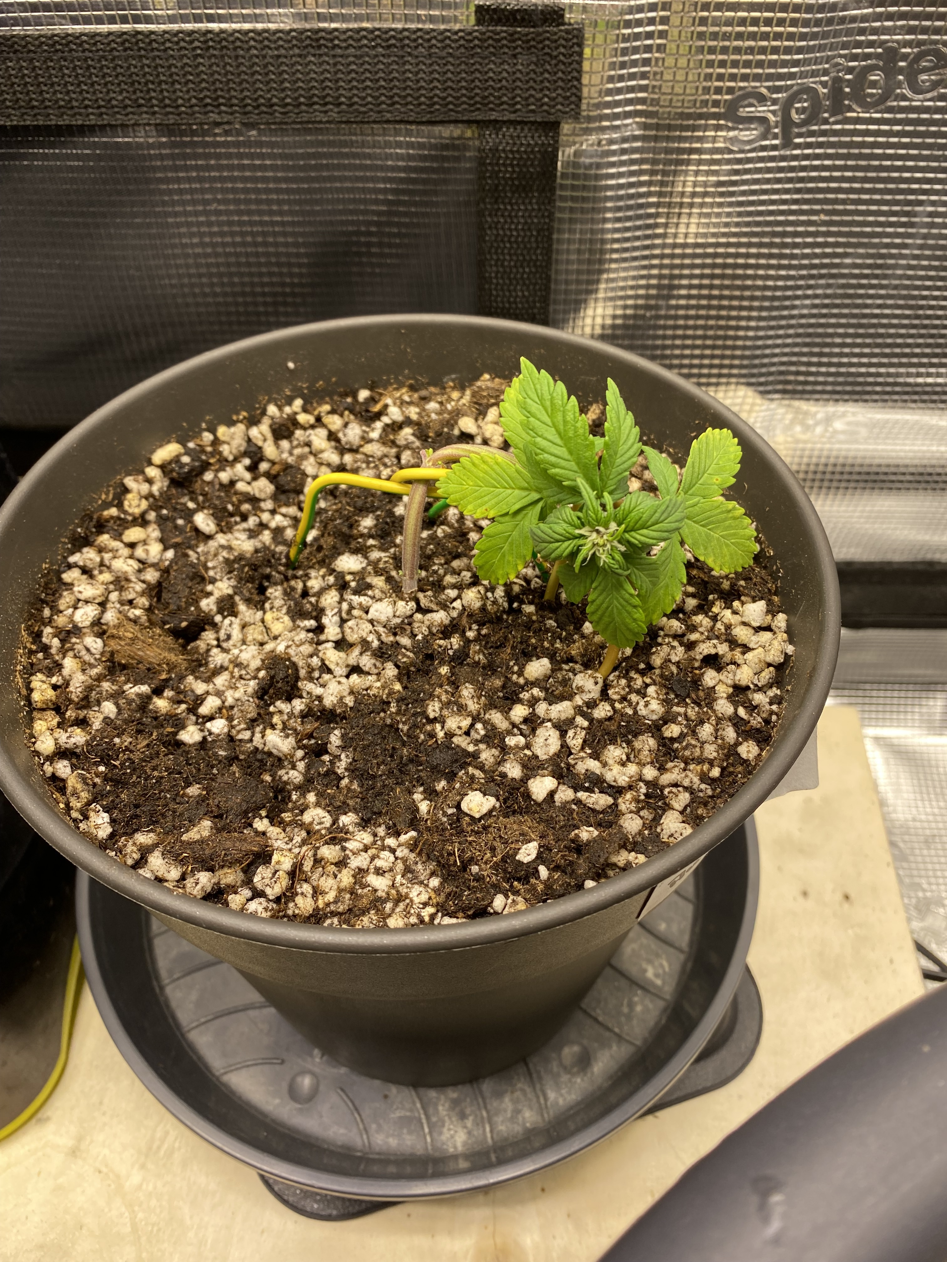hat bekommen 500ml Yucca Lösung gesprüht um die Oberflächen Spannung zu lösen und dann 2L Futte mit 2ml/L Bloom und 1ml/L calmag und dann pH so das 5,8 war und der EC 1,2 das hab ich zu schnell gekippt so das die Mitte gut gesaugt hat aber außen waren noch trocken Spots under den ersten 2cm feuchte Erde also gabs ausen rum am Rand nochmal 2L der selben Lösung jetzt is alles gut feucht das ganze hat mich Zuviel meines abgestanden Wassers gekostet