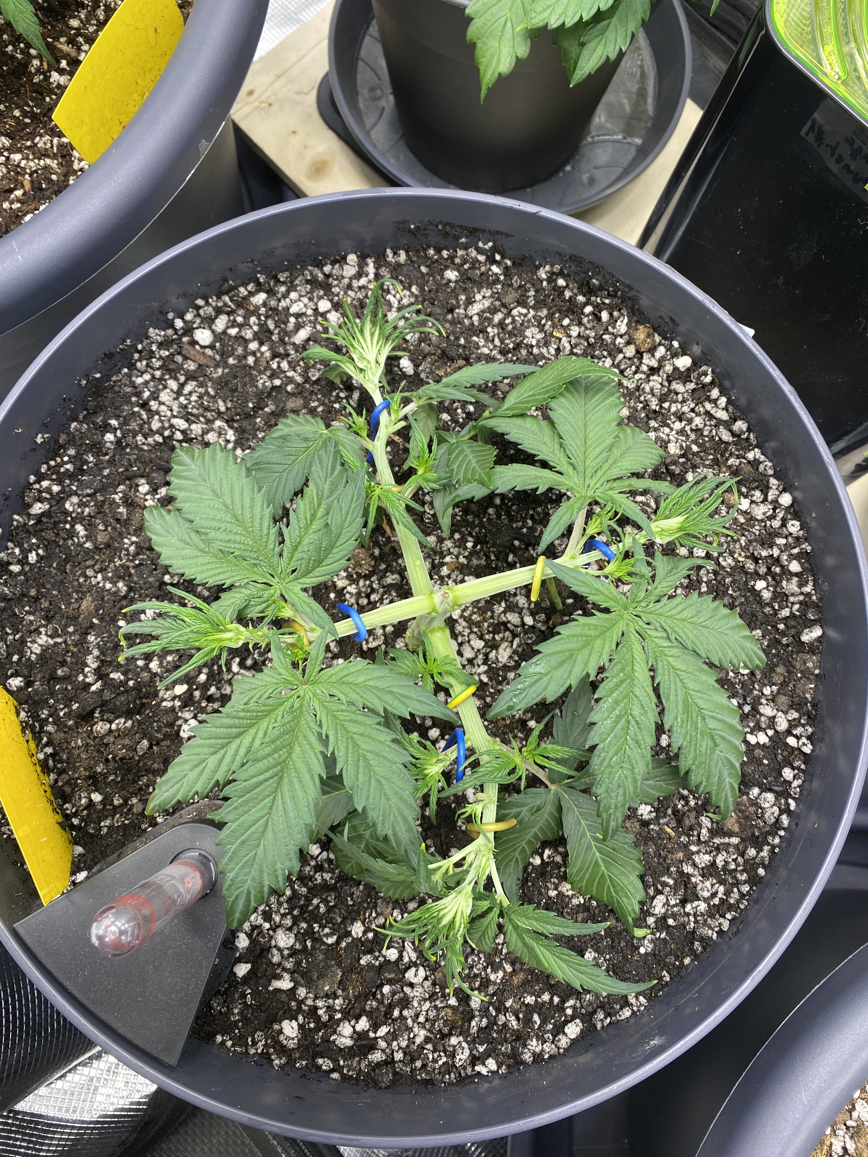 Hallo den Damen(DC#1, MOP#1&2) hab ich heut paar Blätter entfernt pro Pflanze vllt so 2-3 die mir persönlich Zuviel bedeckt haben oder es bald tun würden
