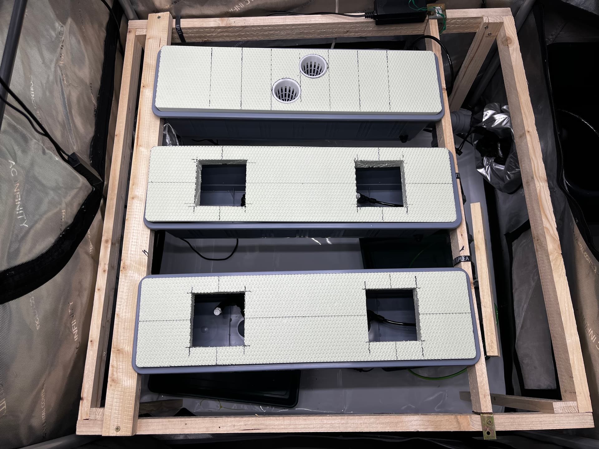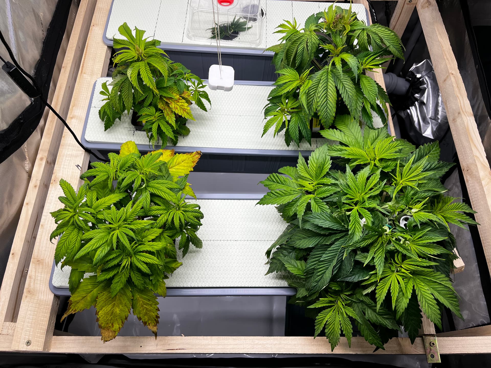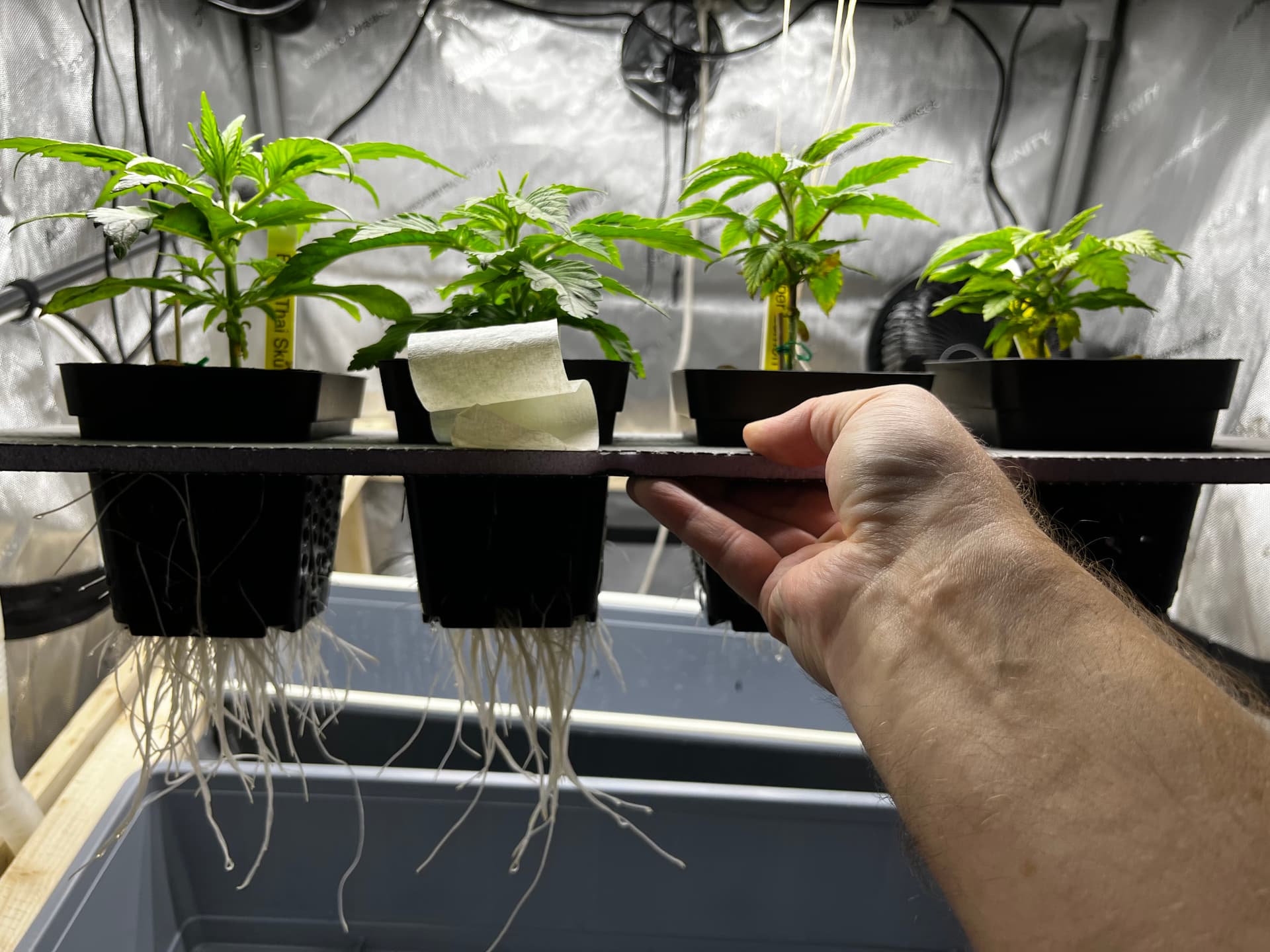 Mein Bewässerungssystem habe ich ein wenig angepasst, der erste Lauf war sehr mühselig was das Handling mit dem Tank anging. Dieses Mal stehen die Damen in einfachen Blumenkästen und der Tank soll außerhalb der Box platziert werden. Bin nicht sicher wie es sich entwickelt, das Wurzelwachstum war ja extrem im Aeroponicsystem. Bin gespannt wie das Setup dieses mal funktioniert.