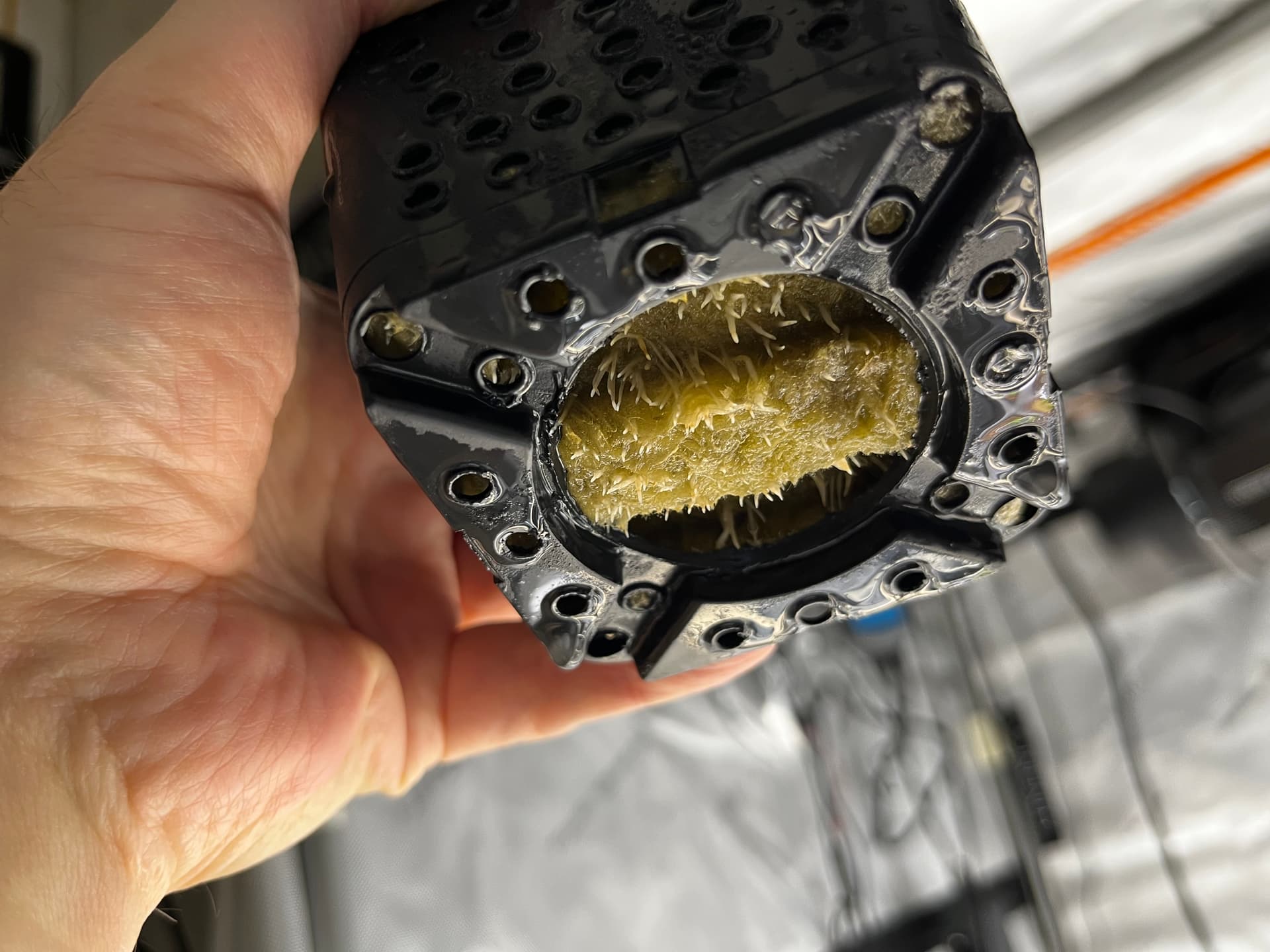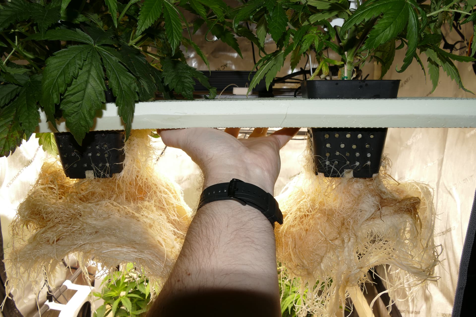 Bis die Wurzeln aus den Steinwollklötzen raus kamen dauerte auch sehr lange. Die Kammer in der meine Box steht ist nicht beheizt, die Temperaturen waren somit sehr suboptimal. In der Dunkelphase liegt die Temperatur auch schon mal unter 15 Grad.