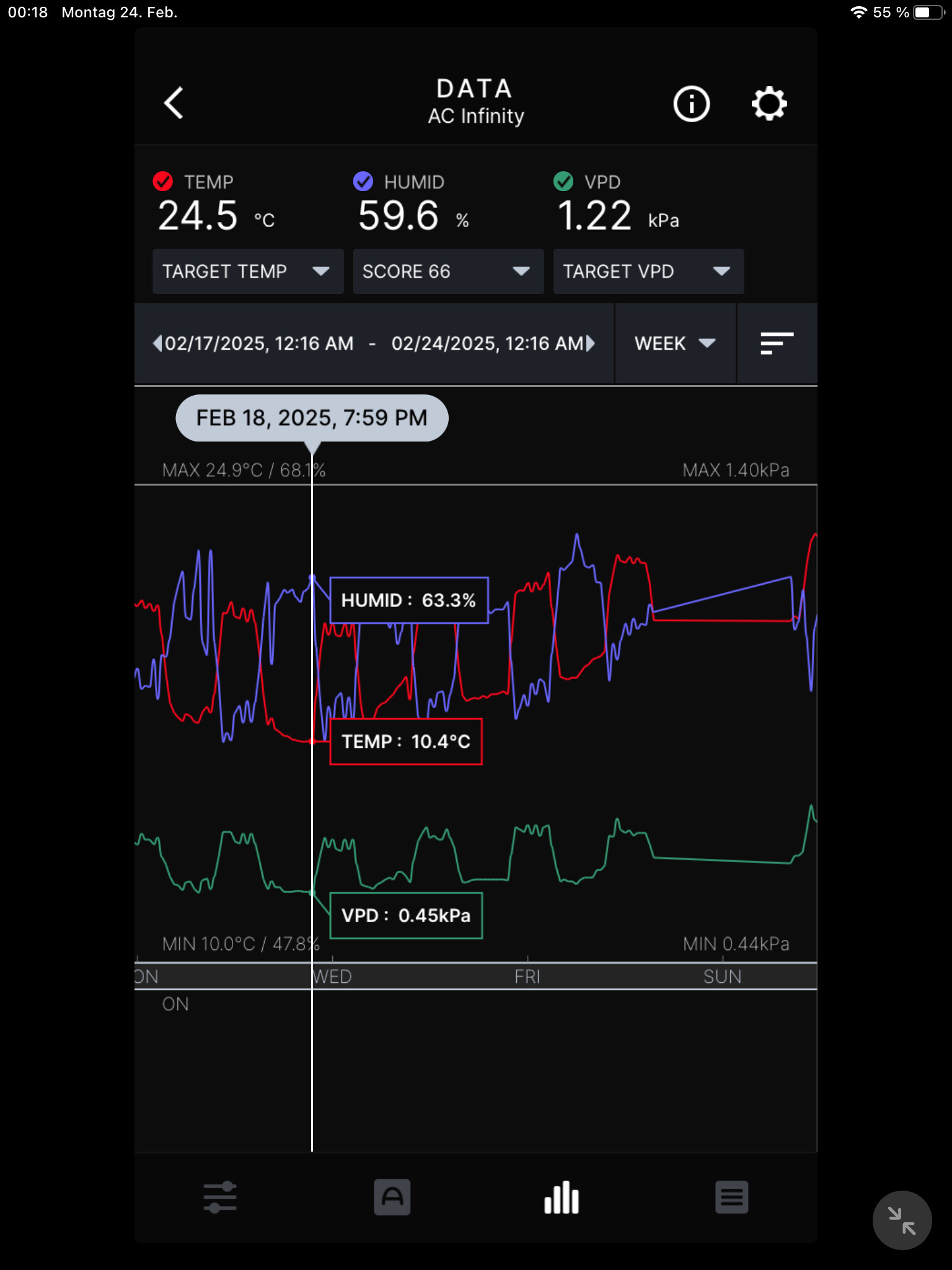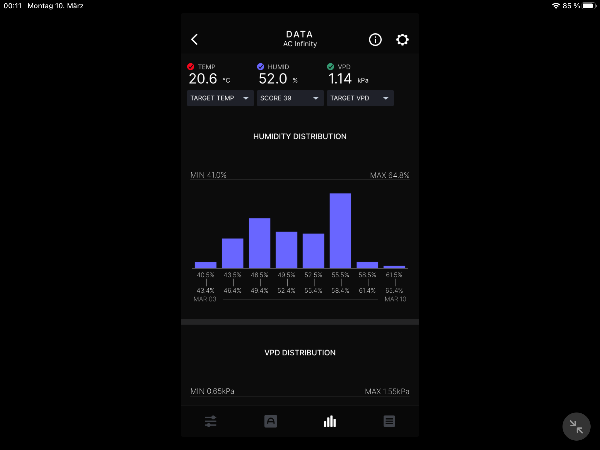 Die Temperaturen waren die Woche natürlich für mich ideal, in der Lichtphase mal wieder über 20 Grad. Luftfeuchtigkeit unter 50%, das ist bei mir sehr ungewöhnlich.