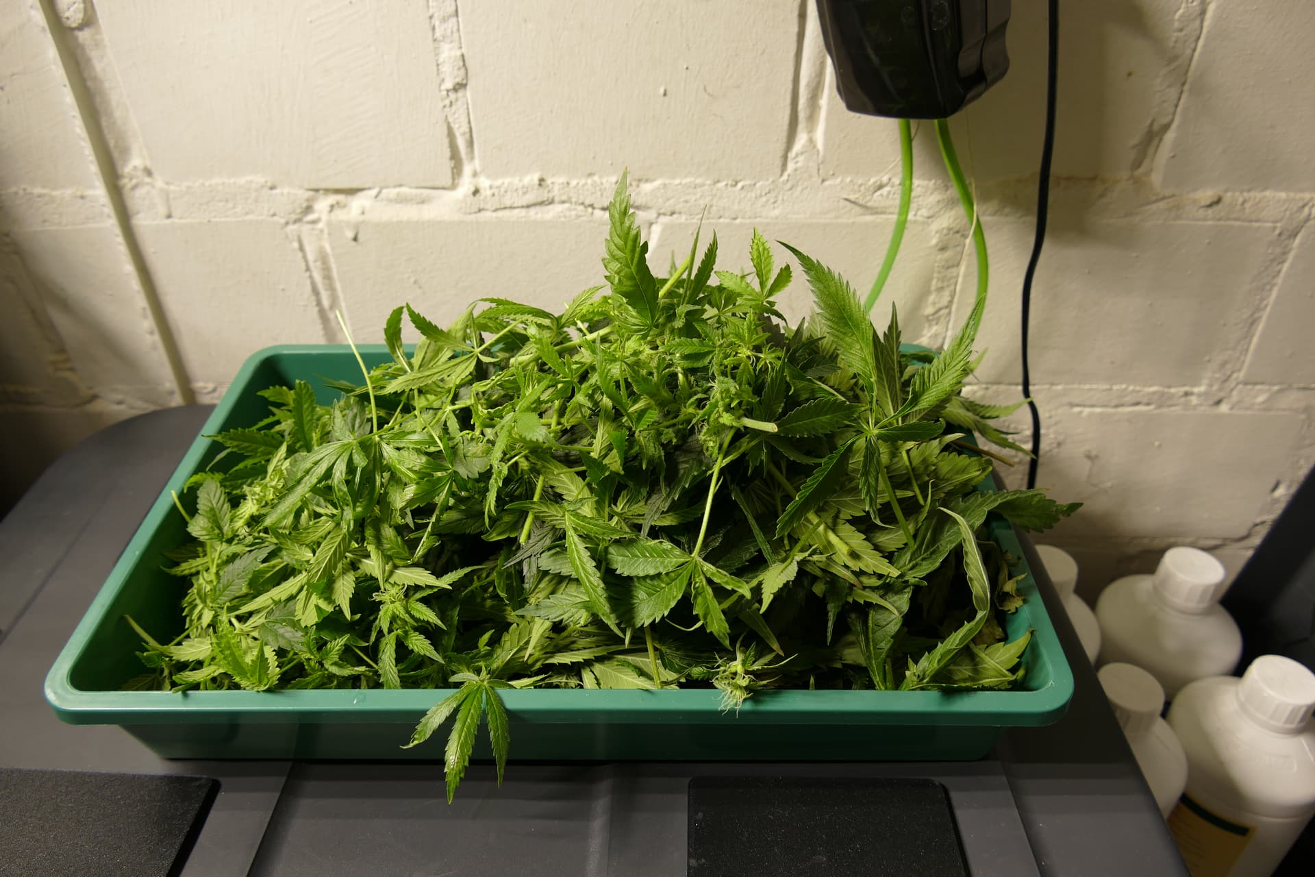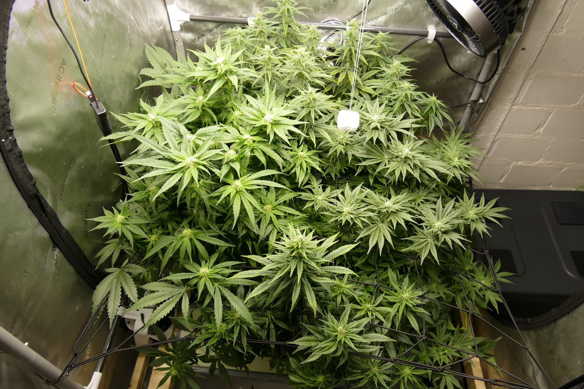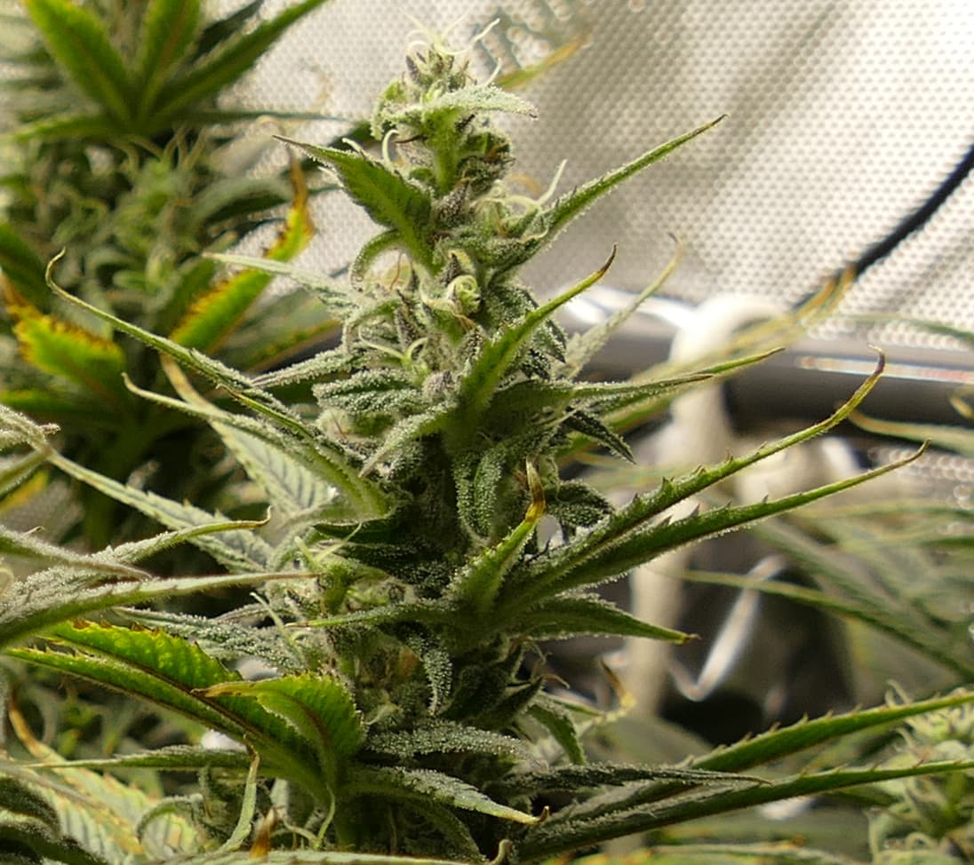 Wer sich die Bilder genauer anschaut, wird feststellen das die beiden Super Lemon Haze (vorne und hinten, Bild 2 u.3) ein wenig Probleme haben. Ich vermute das es sich hierbei anhand des Schadbildes um CalMag-Mangel handelt. Am 26.02 habe ich die Nährlösung auf Blüte umgestellt und den Anteil an CalMag erhöht. Ist natürlich blöde in einem Grow mit unterschiedlichen Sorten darauf angemessen zu reagieren, die beiden anderen Pflanzen sehen ja klasse aus. Hatte Phosphormangel auch nicht ganz ausgeschlossen. In einer kalten Umgebung kann die Aufnahme von Phosohor gestört sein, dazu die Blütephase in der sich die Pflanzen befinden. Zur Sicherheit habe ich den Umsatz in meinem örtlichen Growshop mal erhöht und mir von Canna die Mono Dünger Magnesium, Calzium, Phosphor und Kalium zugelegt. Ich bin allerdings der Meinung das sich mit Wechsel der Nährlösung auf Blüte und die Erhöhung des CalMag Wertes der Mangel mindestens verlangsamt hat.