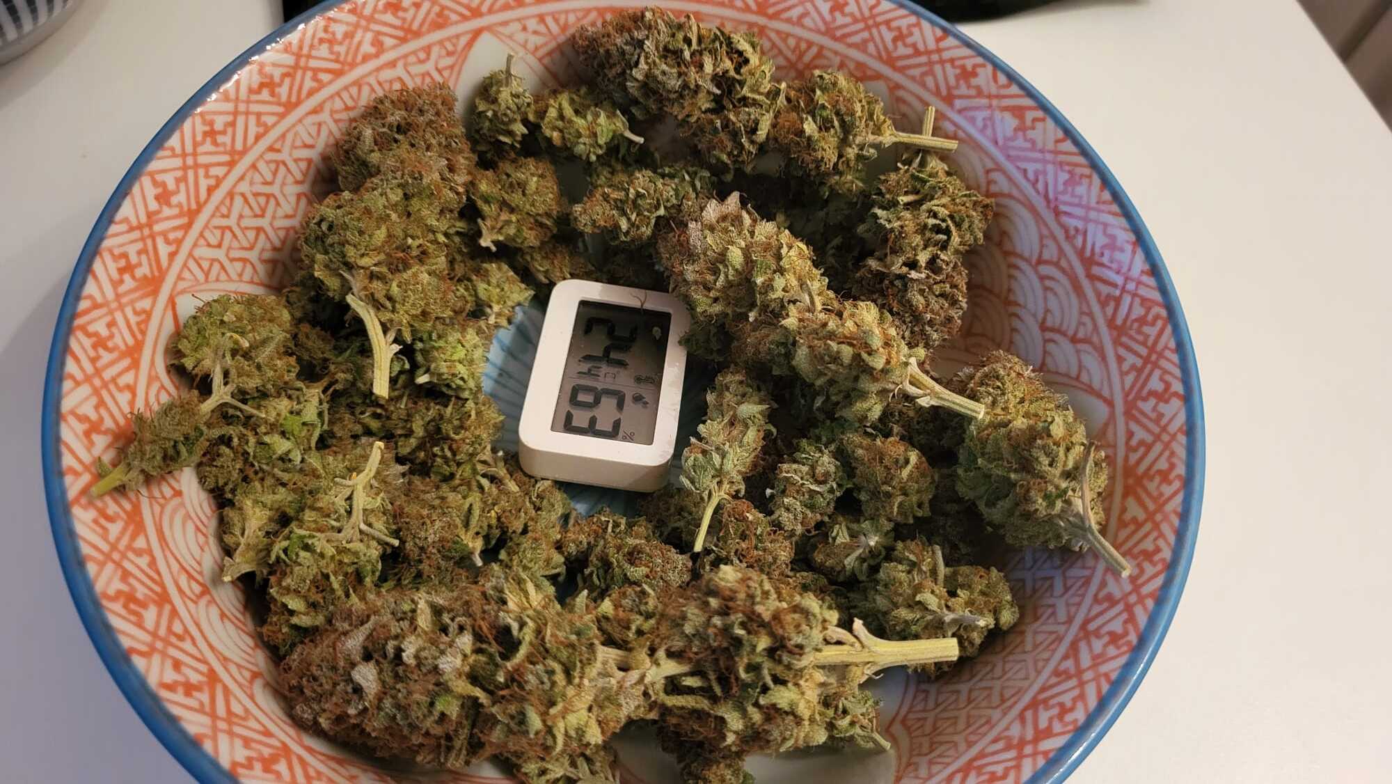 Caramel: die Tüte ist auch verschweißt. Da wollte ich nichts riskieren und habe die Buds schon 2 Mal raus genommen aus der Tüte, weil die RLF auf 66% gewandert ist. Die Buds haben sich gut angefühlt beim raus nehmen. Anfangs hat es sich gut eingependelt. Mittlerweile zeigt das Hygrometer wieder 65% an und ich bin am hadern, ob ich nochmal lüften soll. Tendiere zu nein, aber bei der Caramel würde es mich echt stark ärgern, falls da was schief laufen sollte.