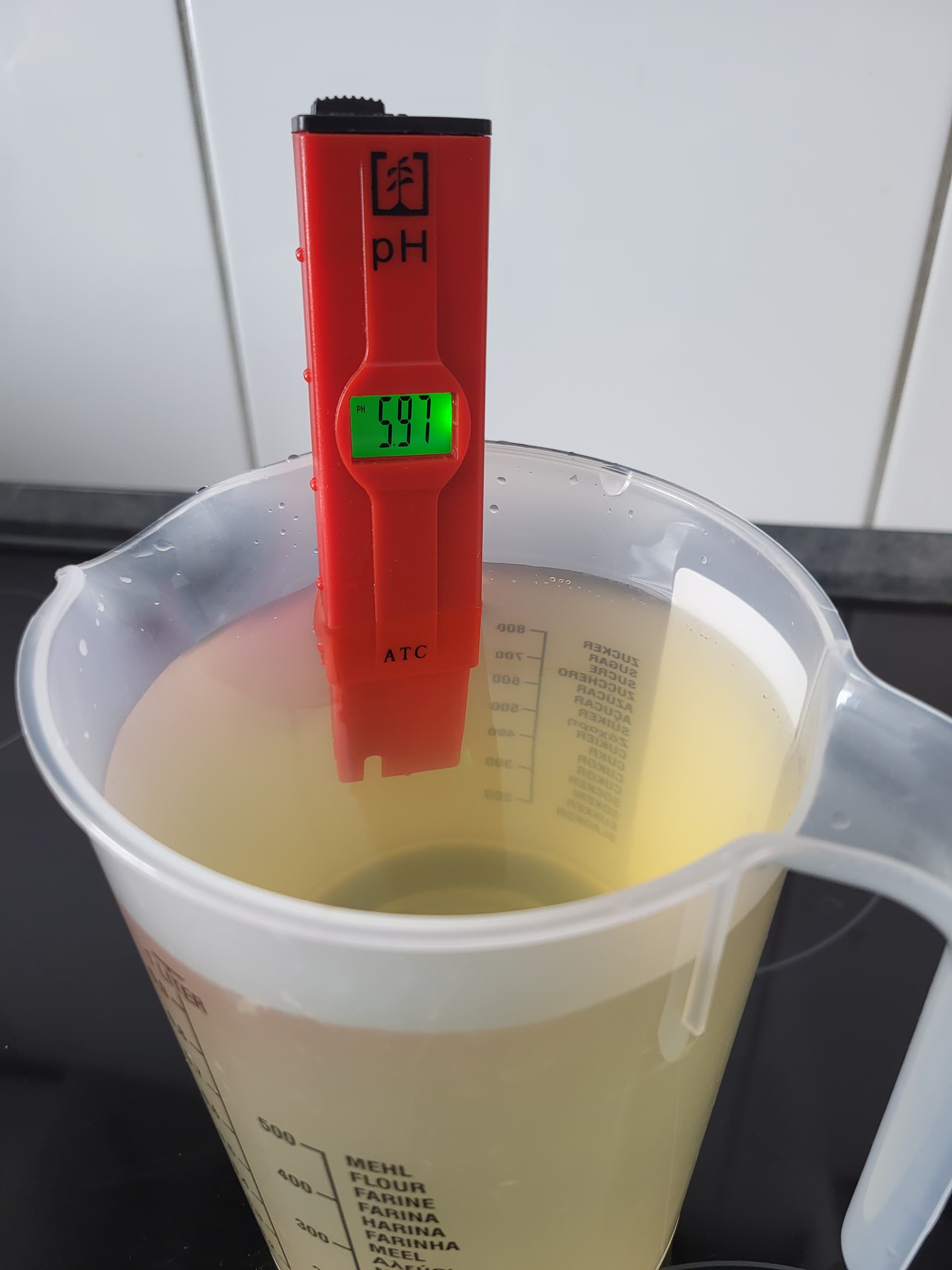 . LW mit 10 ml/L ALFA Boost ergibt einen PH Wert von 5,8 bis 5,9, was eindeutig zu niedrig ist. Am Montag wird er auf 6,5 angepasst. ![]()