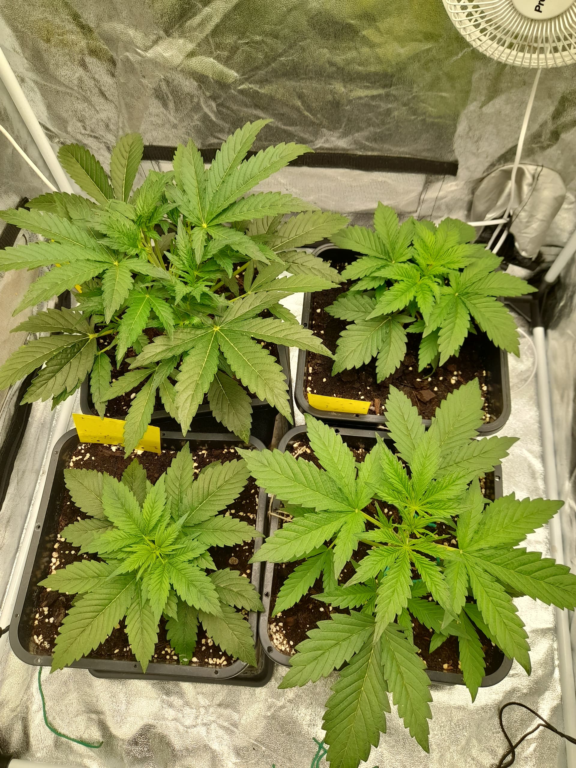 Hinten rechts gelato und links unten gelato fem . Kommen mir nur recht klein vor und ziemlich gedrungen. Die seitentriebe rechts unten (gelato )sind deutlich besser u Länger ausgeprägt als bei den anderen 2en.