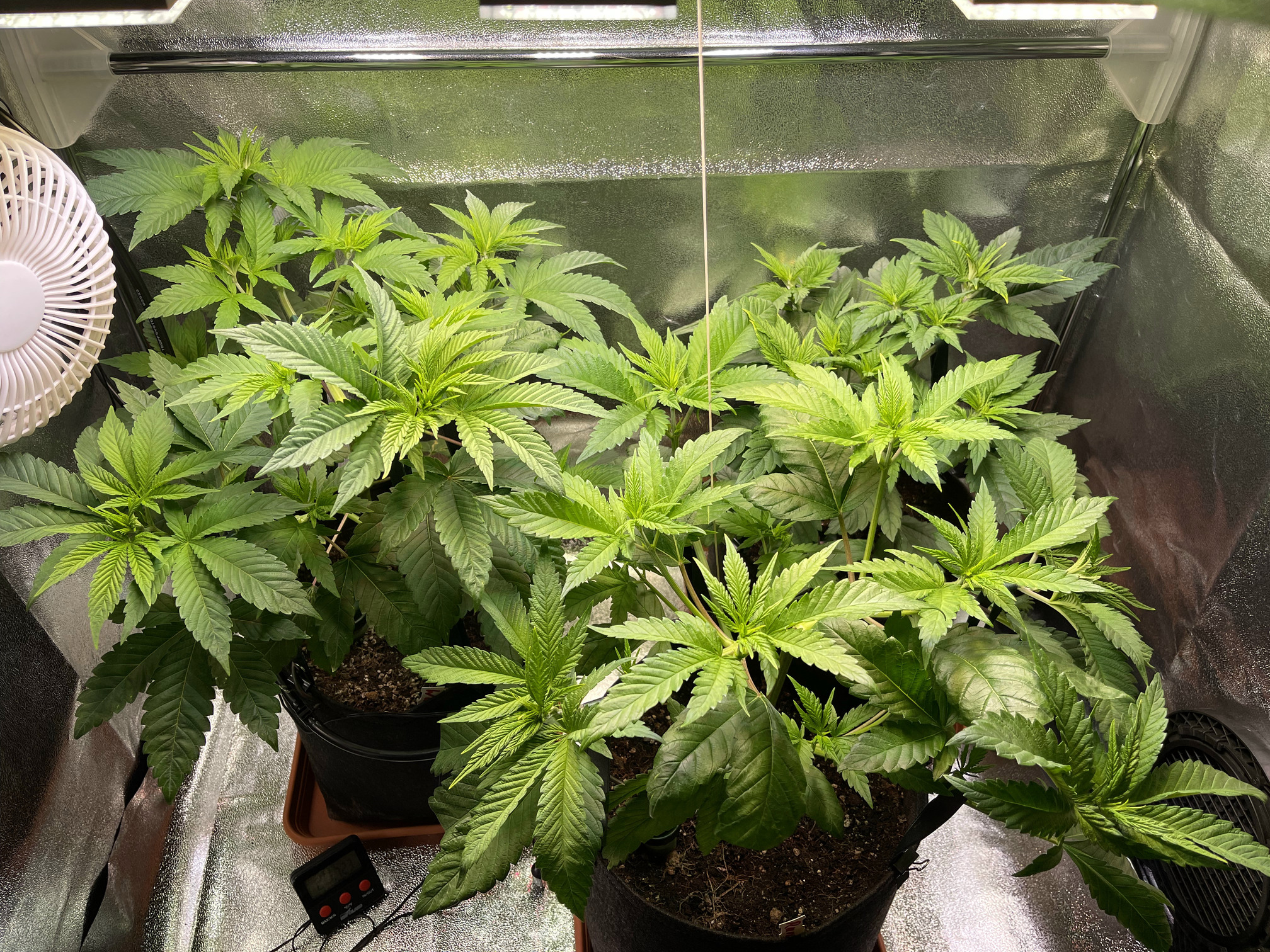 wird langsam Zeit etwas zu wachsen. Aber ich glaube die töpfe waren zu klein und FLO konnte nicht richtig wirken bzw 5% bei so kleinem Topf einfach zu wenig sind. den Tomaten geschuldet wollte ich doch noch etwas mehr Platz lassen, aber die sind jetzt raugeflogen. Also umgetopft in die 8l Töpfe mit 10% Flo und angegossen nach ca 70% vom light Schema. LED ist auf 40% gedimmt.