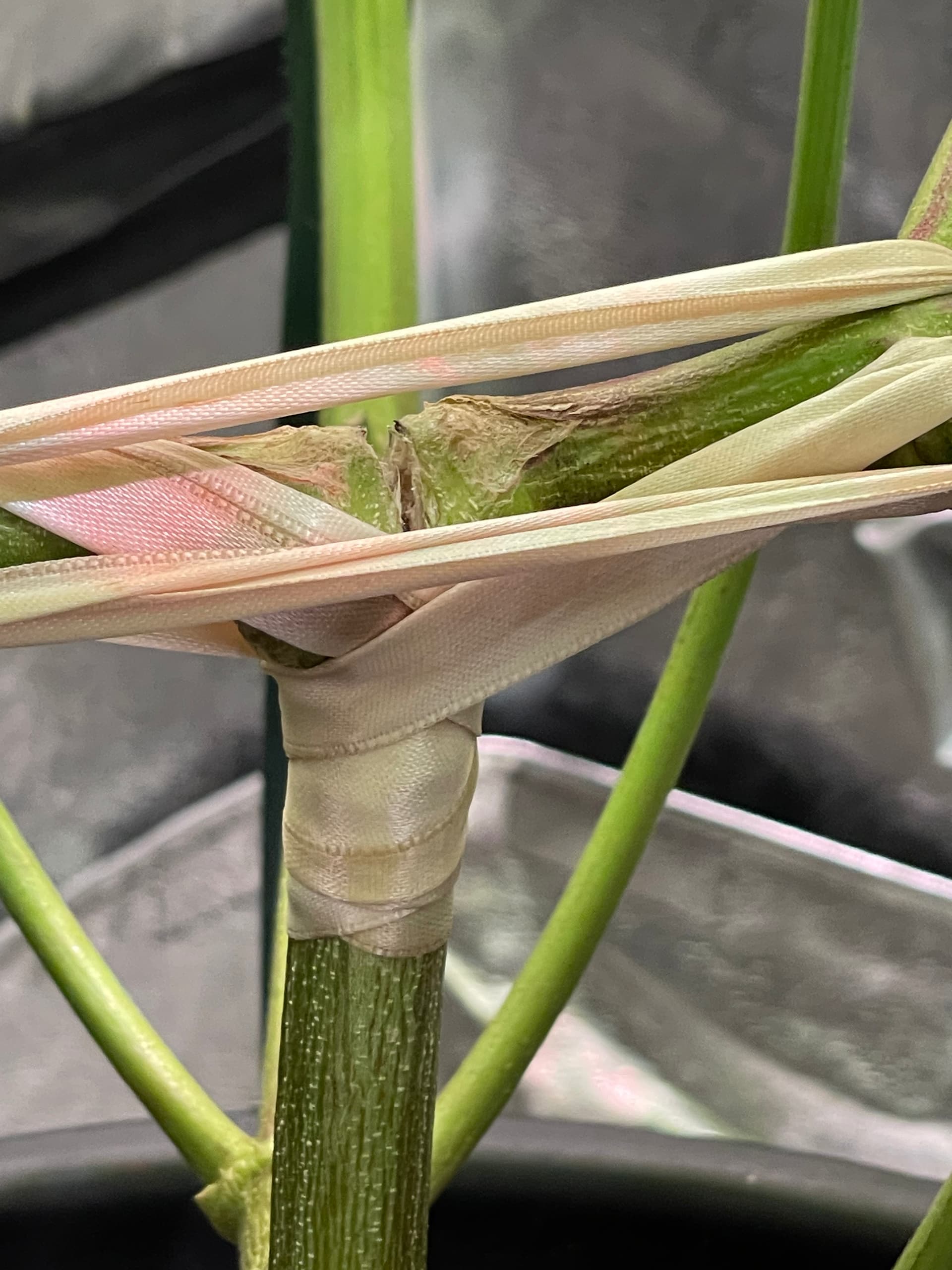 das hier könnt unteranderem mit An dem Mangel schuld sein. Ist mir gestern erst aufgefallen dass ein ordentlicher riss zwischen den Main Stämmen ist. Hab das ganze versucht etwas zu fixen damit es nicht schlimmer wird, nur so wie die Stelle aussieht ist das nicht erst ein paar Tage alt.