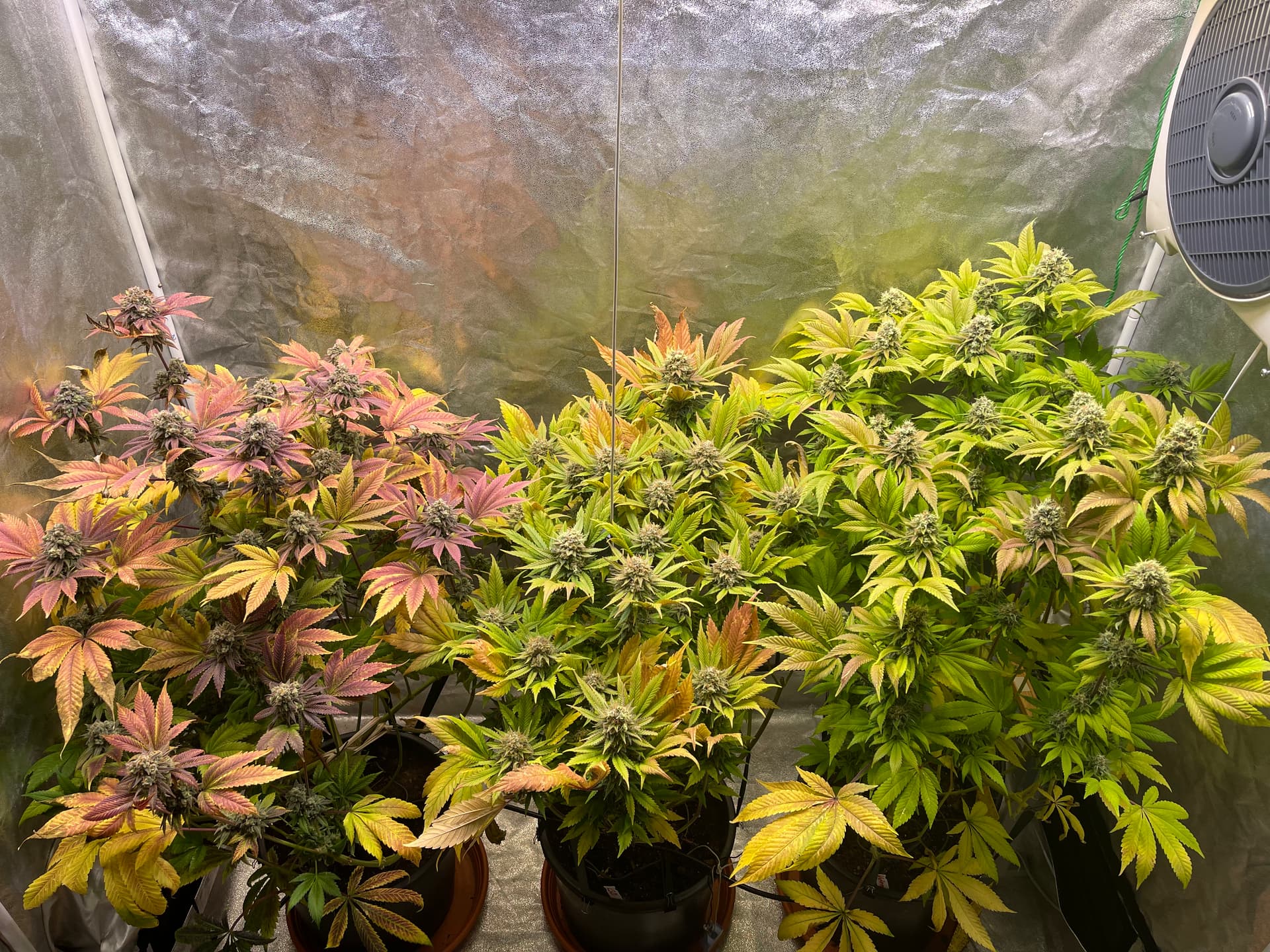Die letzte Woche war noch sehr spannend von Zuwachs an Trichomen und deren Verfärbung. Aber für die Watermelon ganz rechts hat es dann noch nicht gereicht sie heute zu ernten. Die 9. Woche bekommt sie noch bis nächsten Sonntag dann Auf die hab ich mich eigentlich am meisten gefreut und muss am längsten warten. Aber wie sagt man „das Beste kommt zum Schluss“ - Noch 2 Wochen trocknen und in 4 Wochen wird getastet.