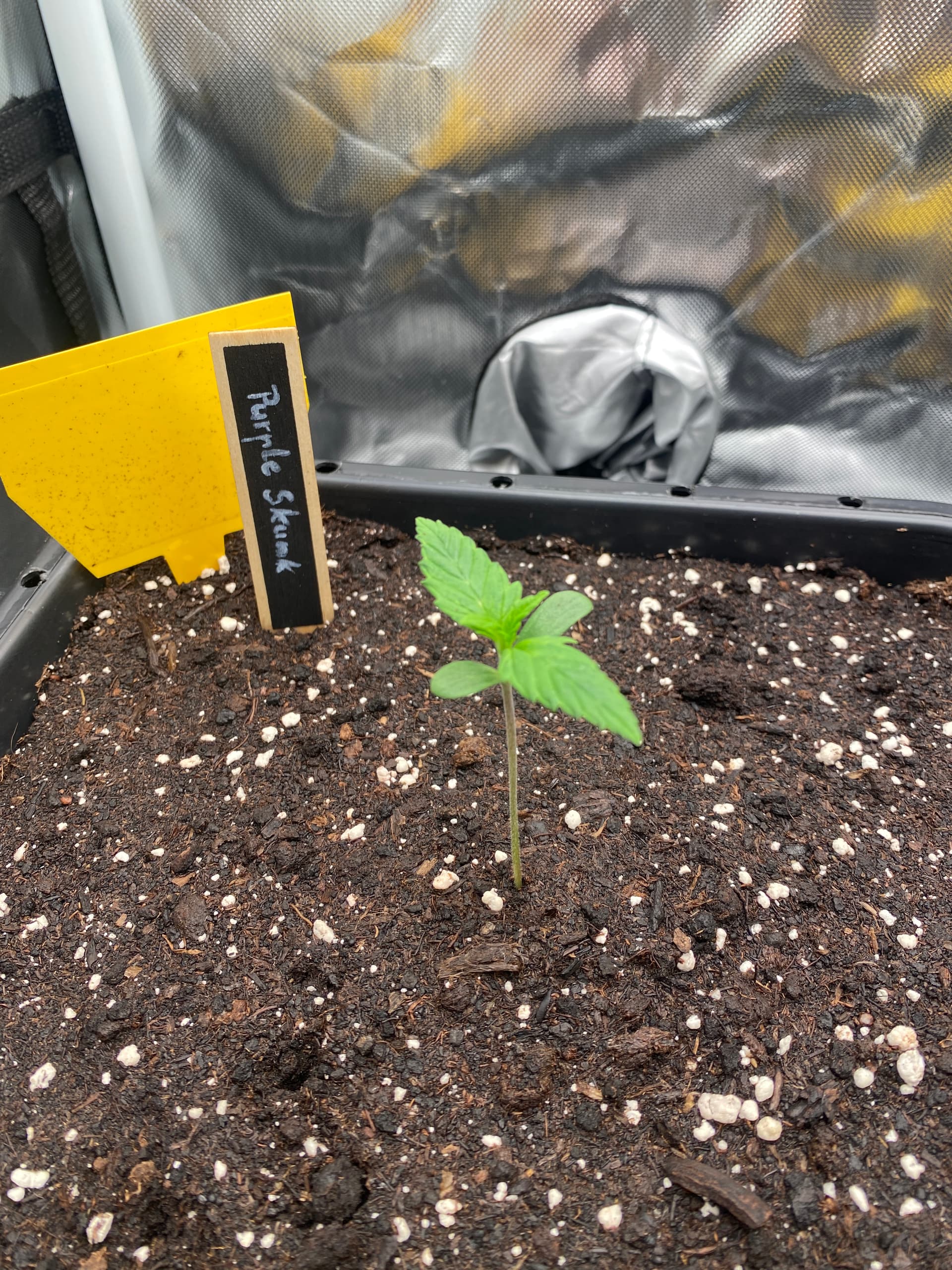 Am Samstag, dem 5. Oktober, wurden die Nüsse für vier Stunden in einem 3% H₂O₂ Bad gebadet - quasi ein Wellness Tag für Samen. Anschließend durften sie es sich bei angenehmen 23°C auf einem feuchten Sofa (oder eher Wattepads) gemütlich machen. Innerhalb von 24 Stunden zeigten alle drei stolz ihre Keimwurzeln, wobei die Purple Skunk offensichtlich die meiste Lust auf’s Wachsen hatte. Eine 100% Keimquote - das freut den Gärtner natürlich!