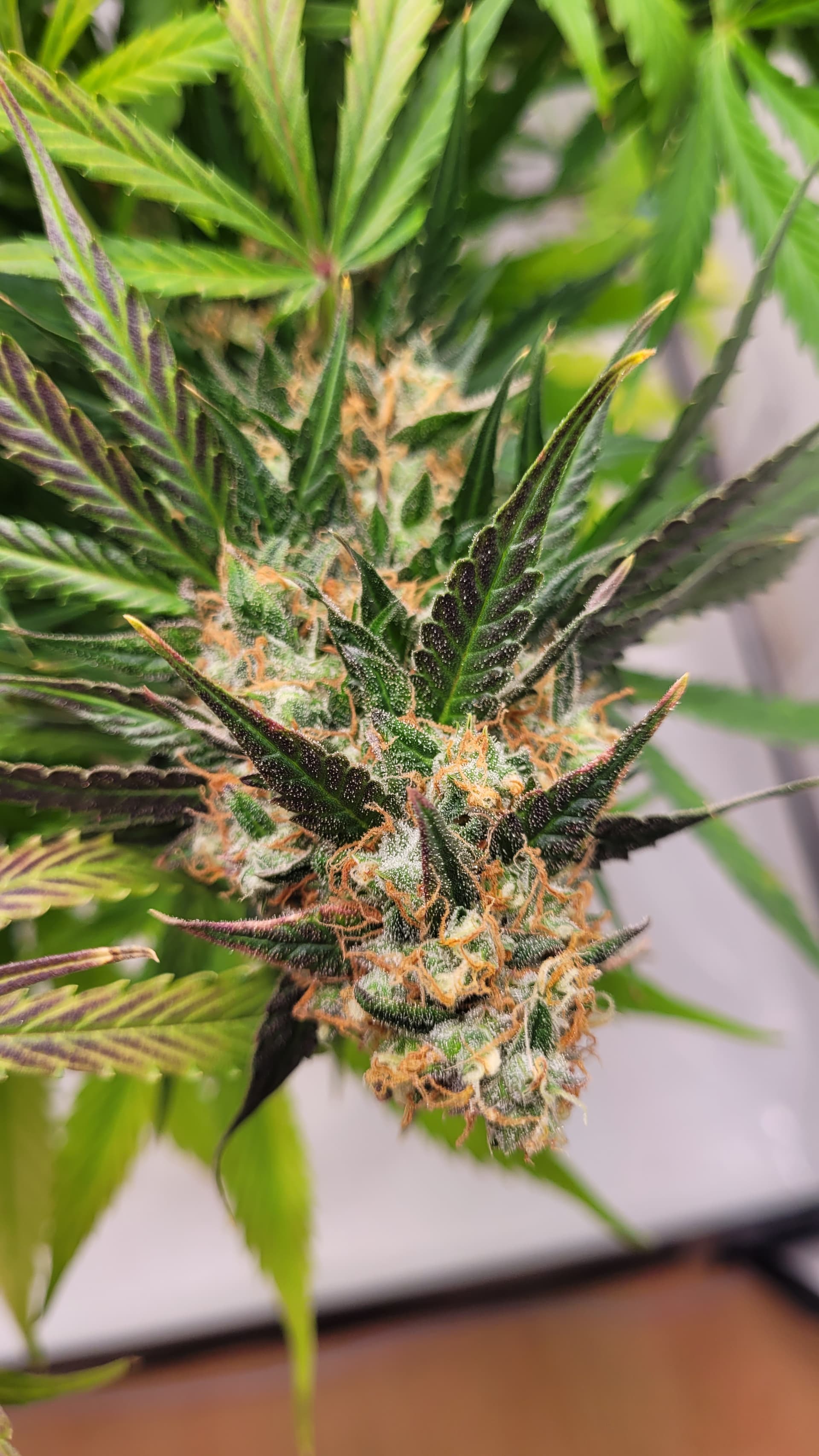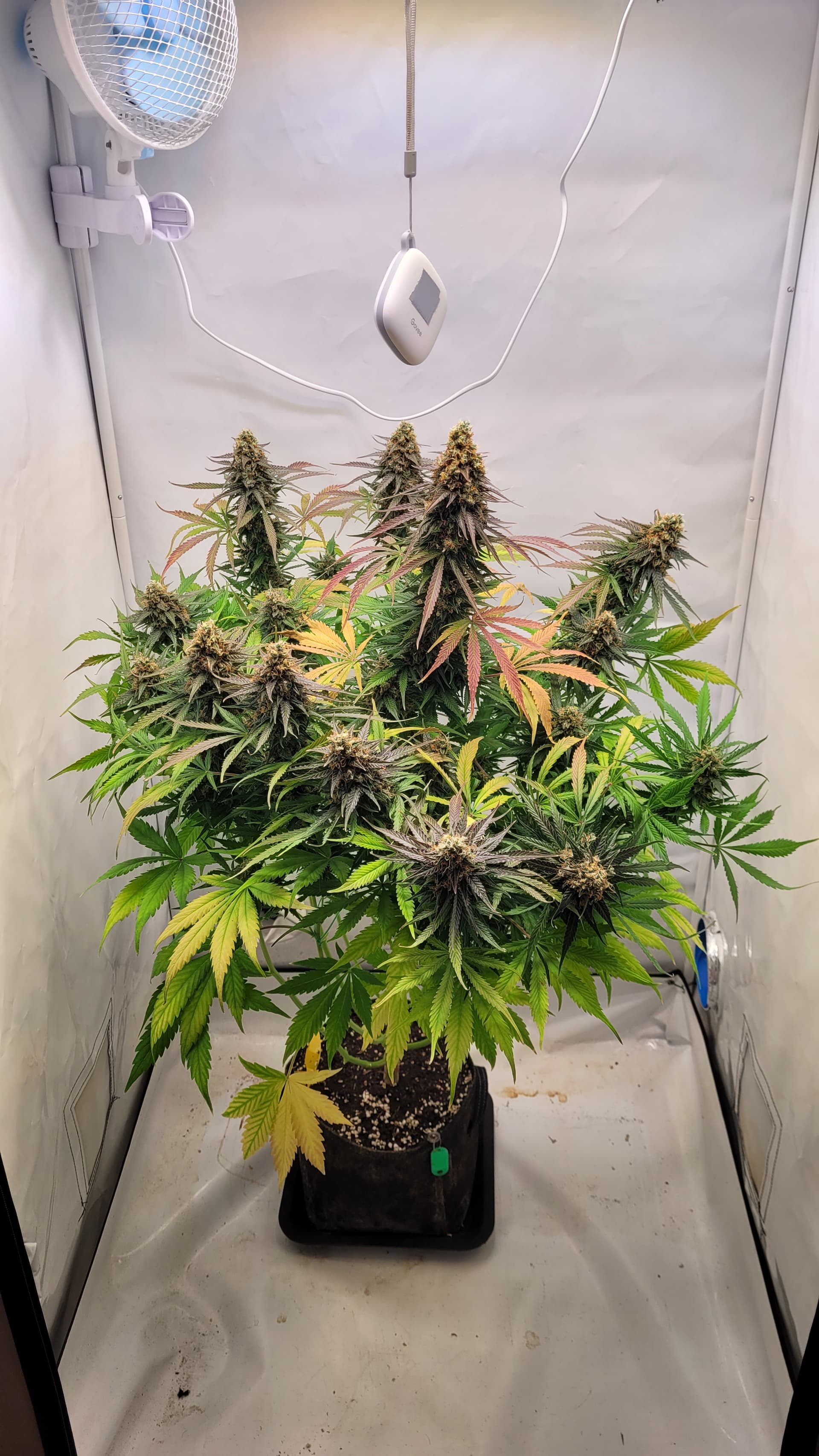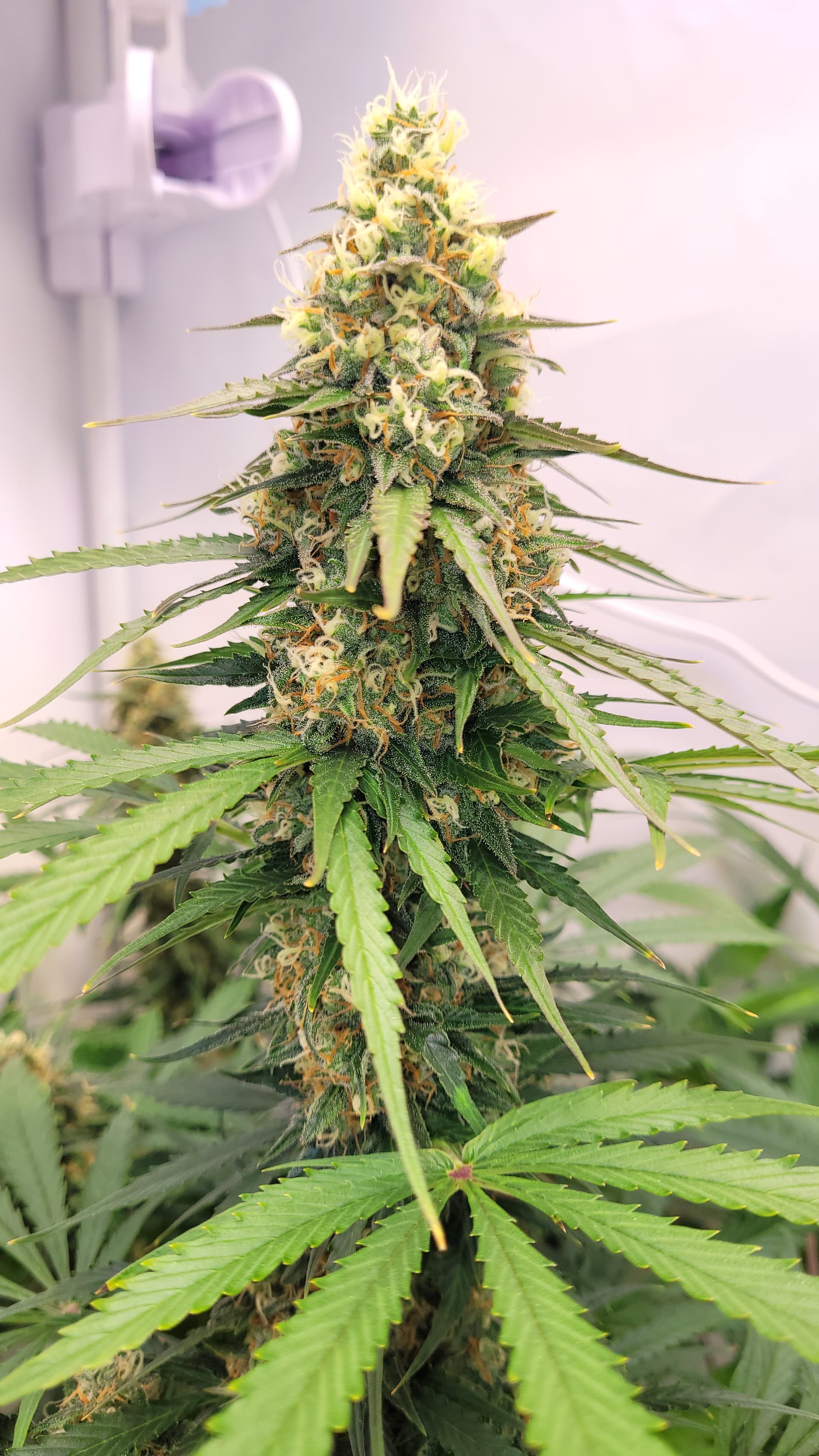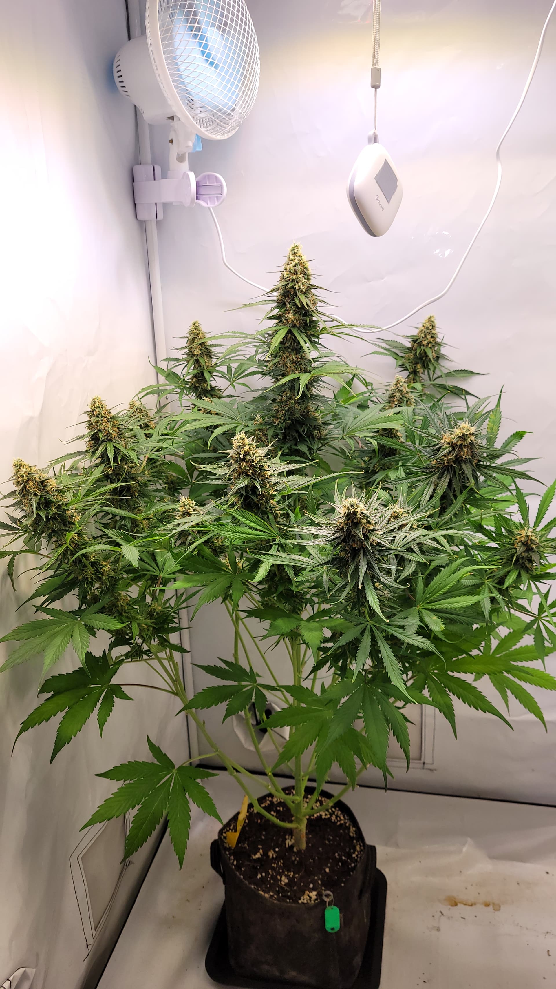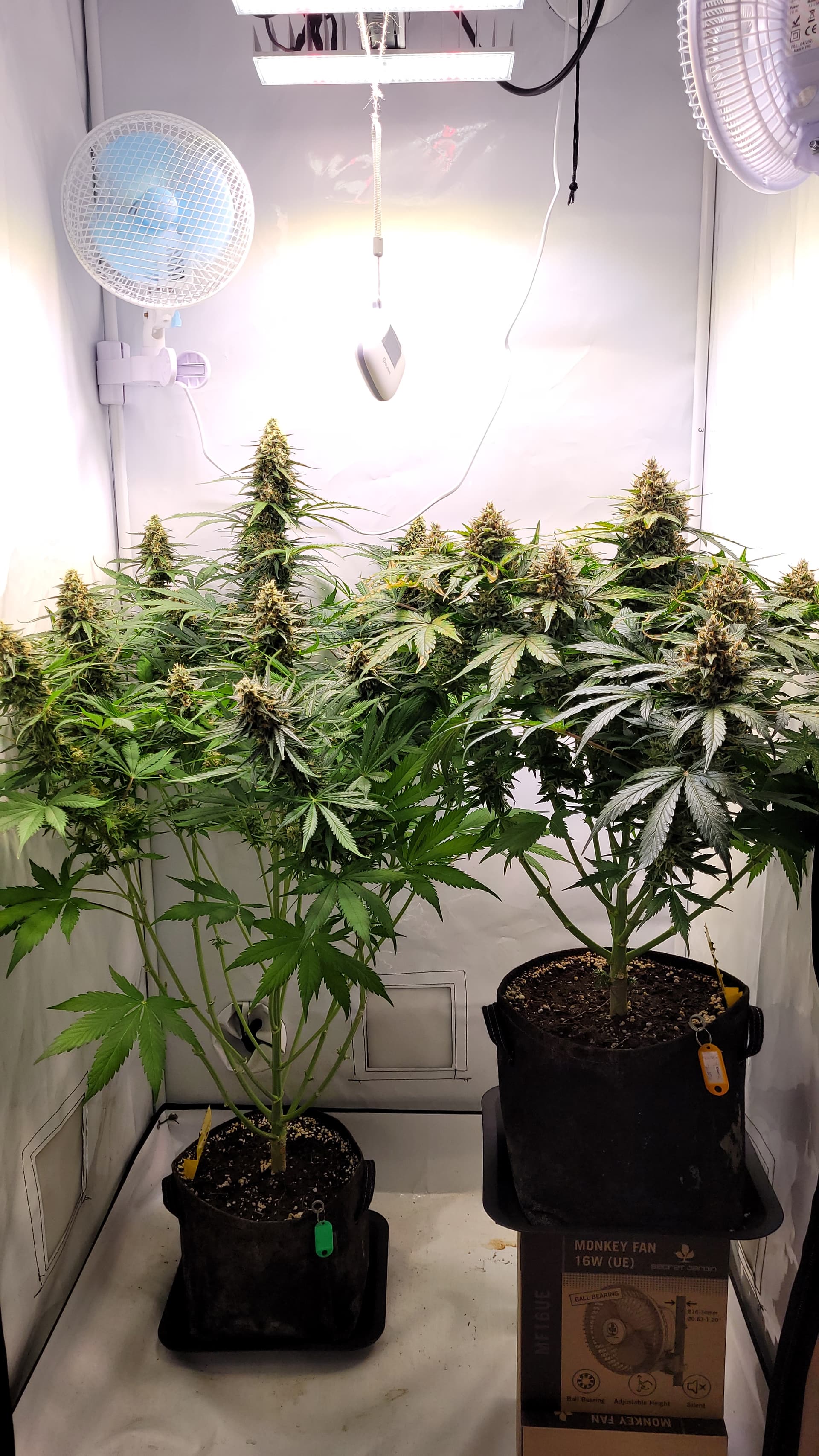 Ich habe vorgestern schonmal eine Kostprobe unten abgeschnitten und mit im Zelt hängen. Auf dem 2. sieht man, wie es aktuell aussieht. Sie ist bei Tag 4 ohne Wasser. Gefällt mir vom grow auch sehr gut