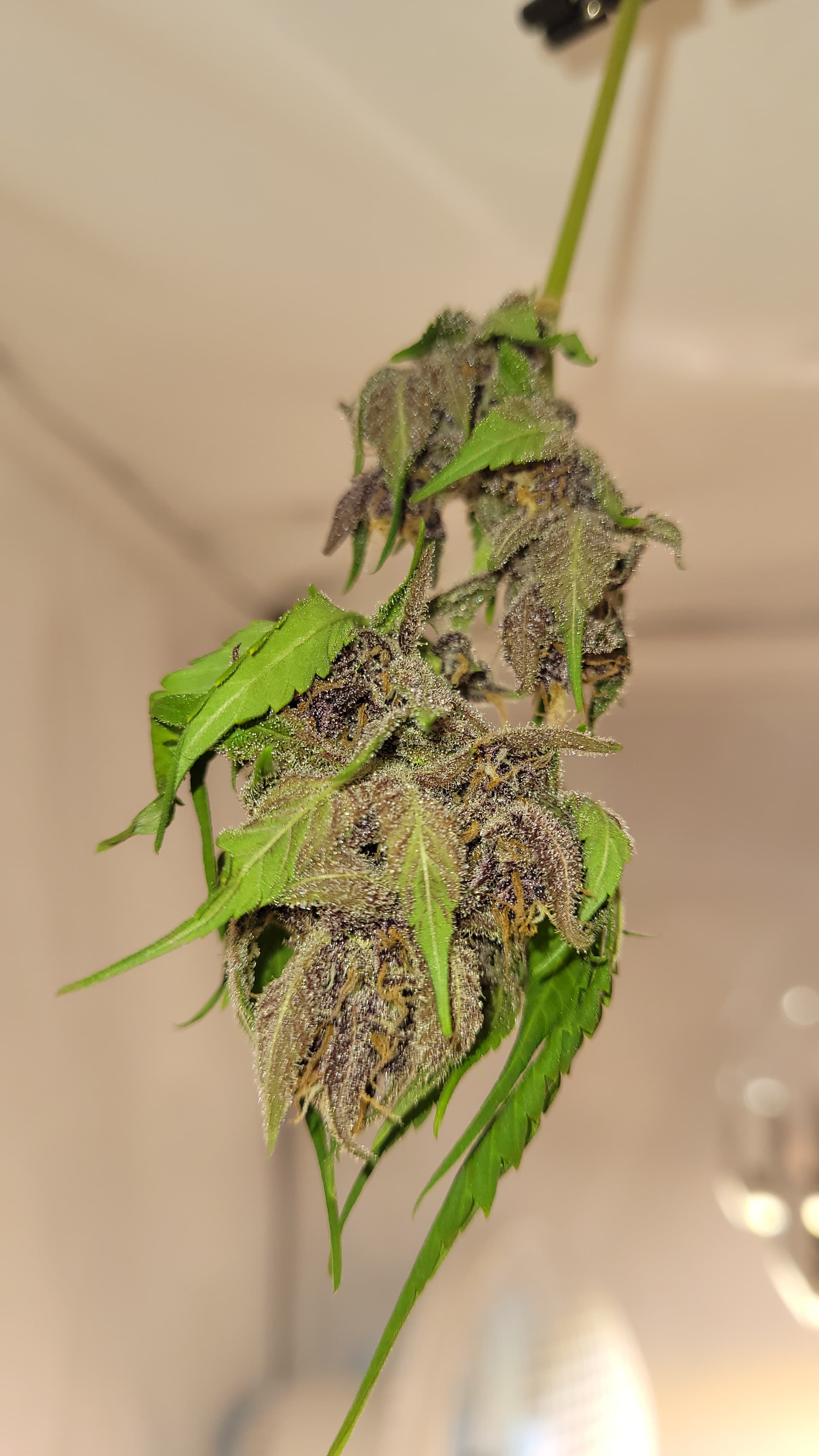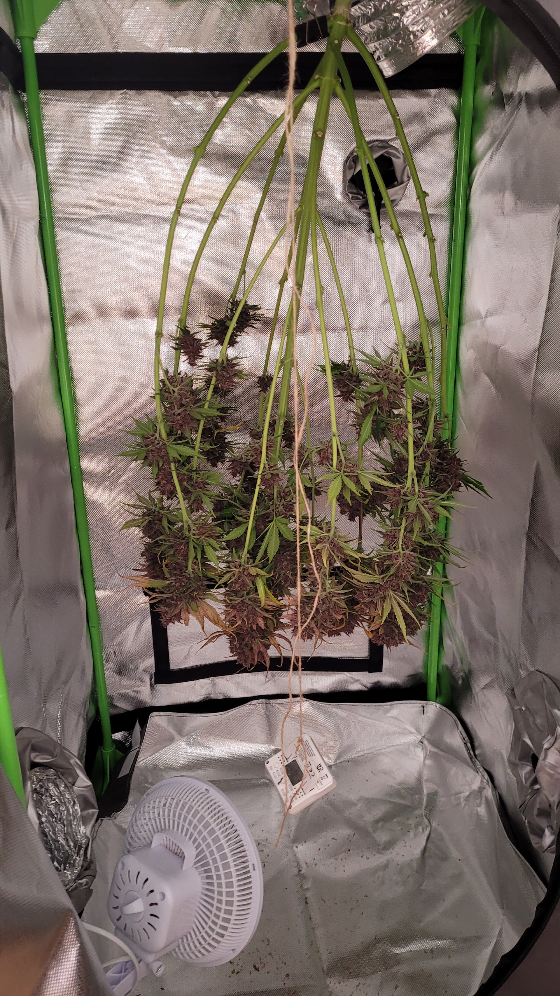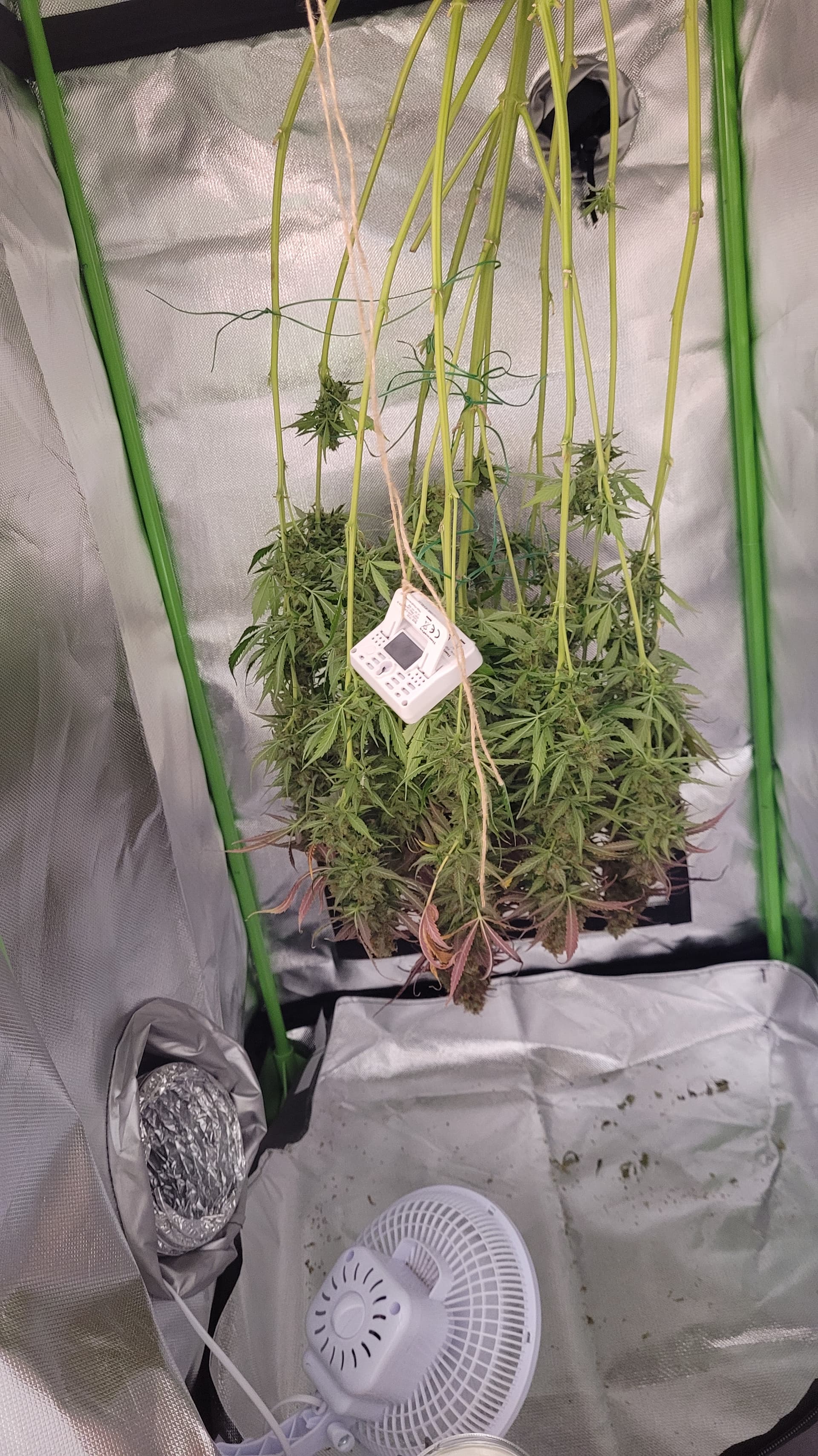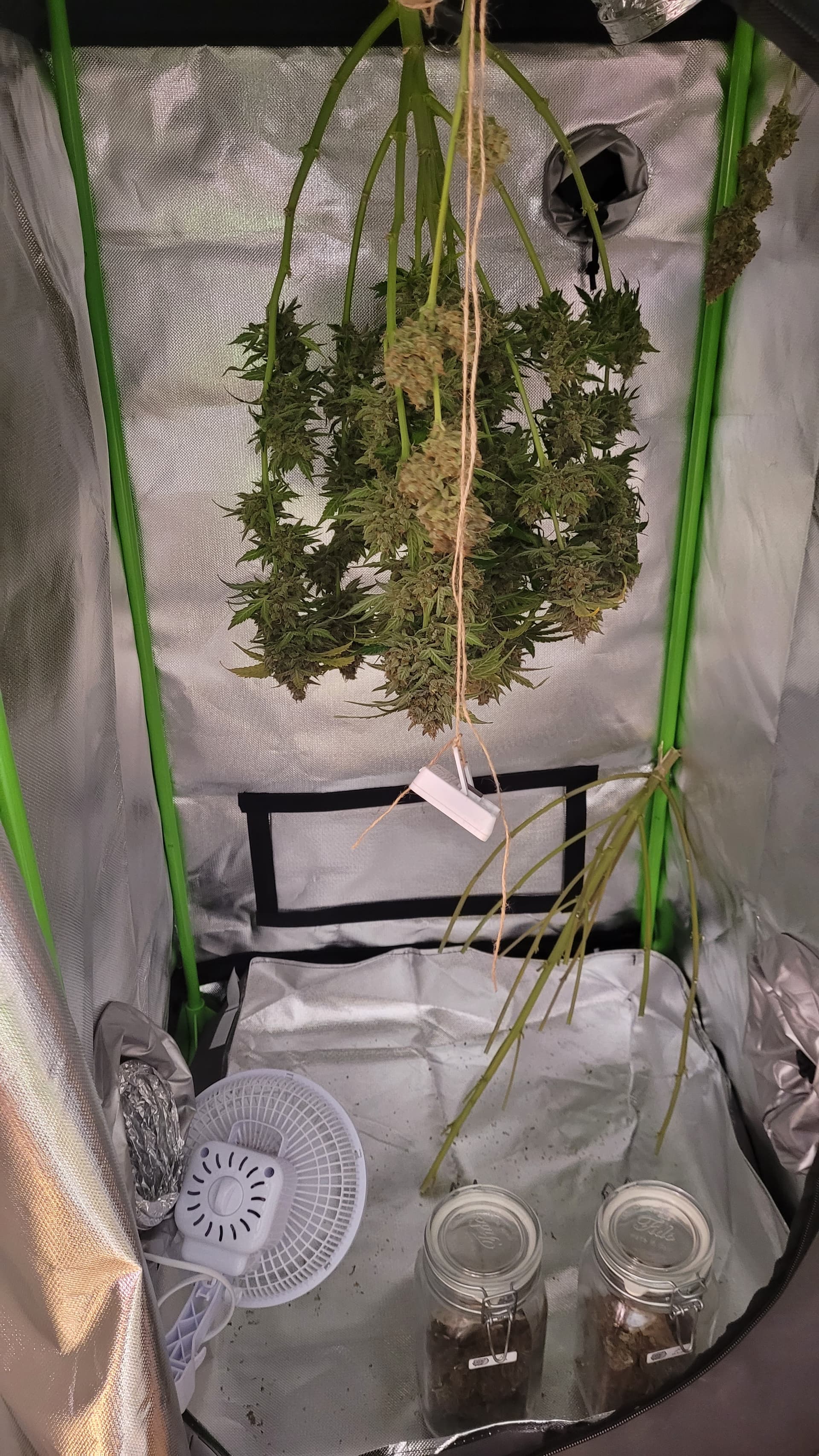 Vorhin habe ich die Apricot aufgehangen. Sie war am anfälligsten während des grows. Nicht groß geworden aber dafür extrem dicke und harzige Buds. Einen Trieb habe ich gesondert nass getrimmt, um die Tage schonmal naschen zu können. Bin aufs Endergebnis gespannt