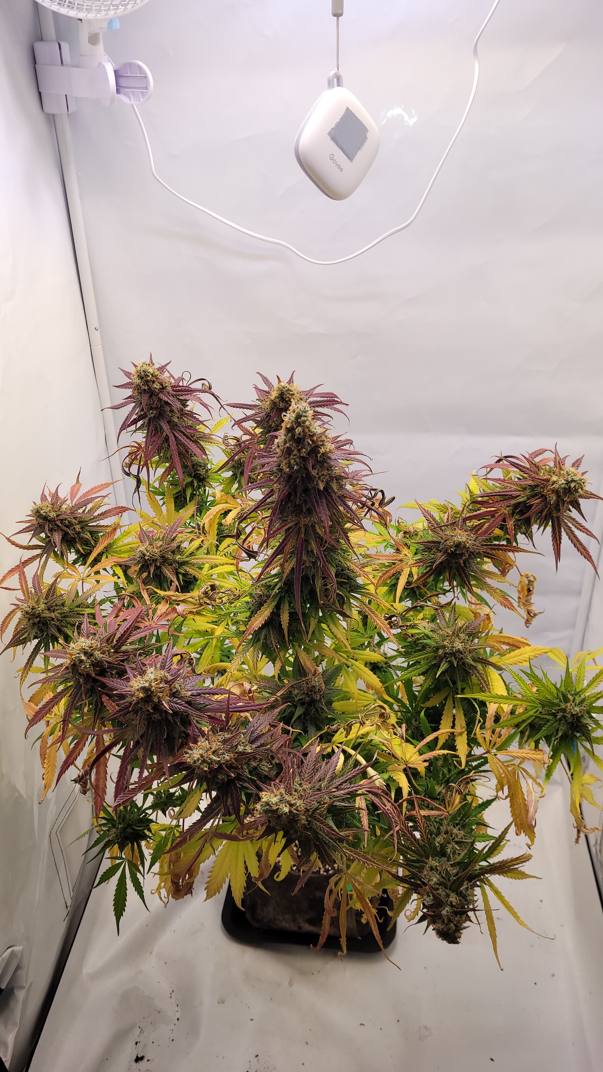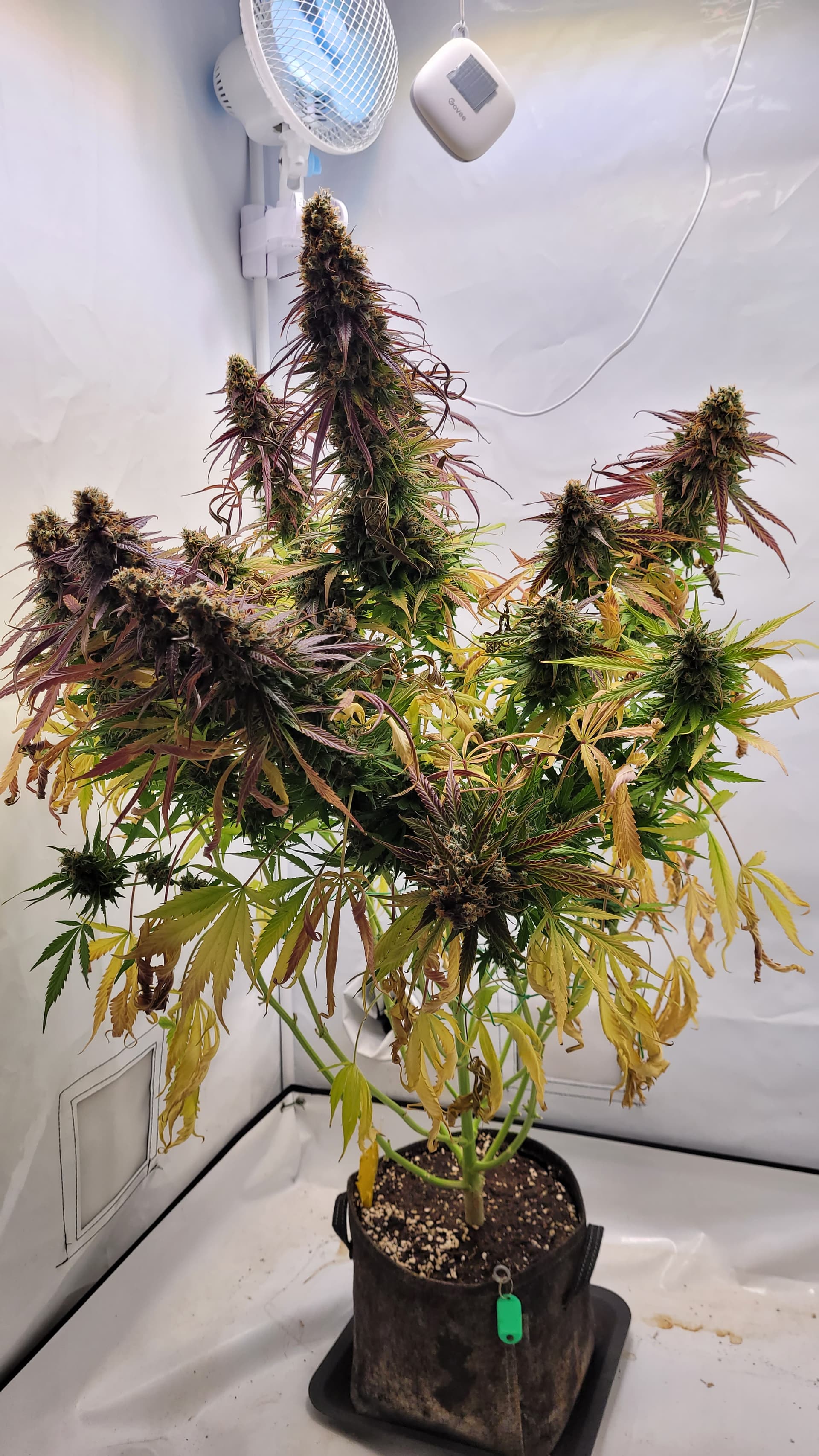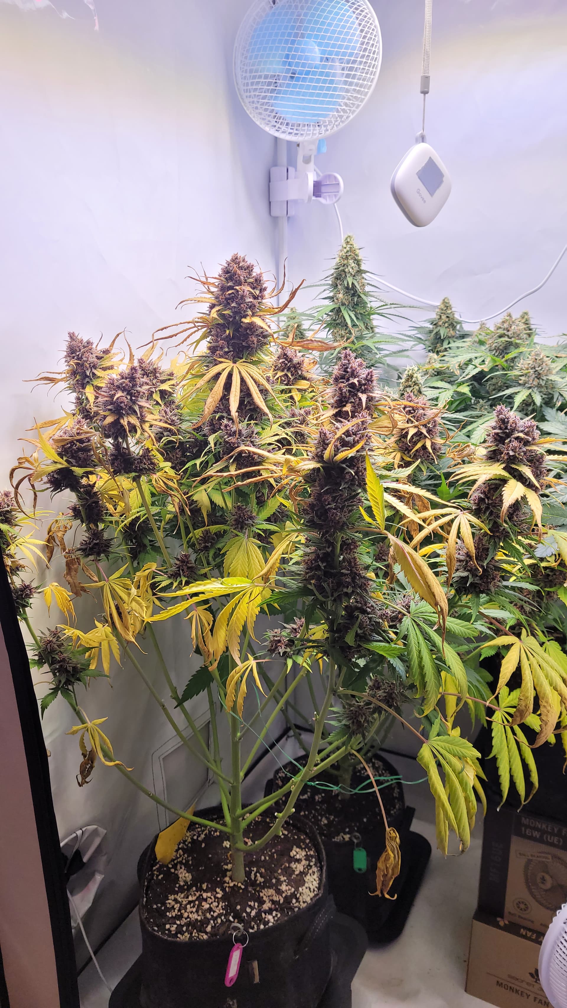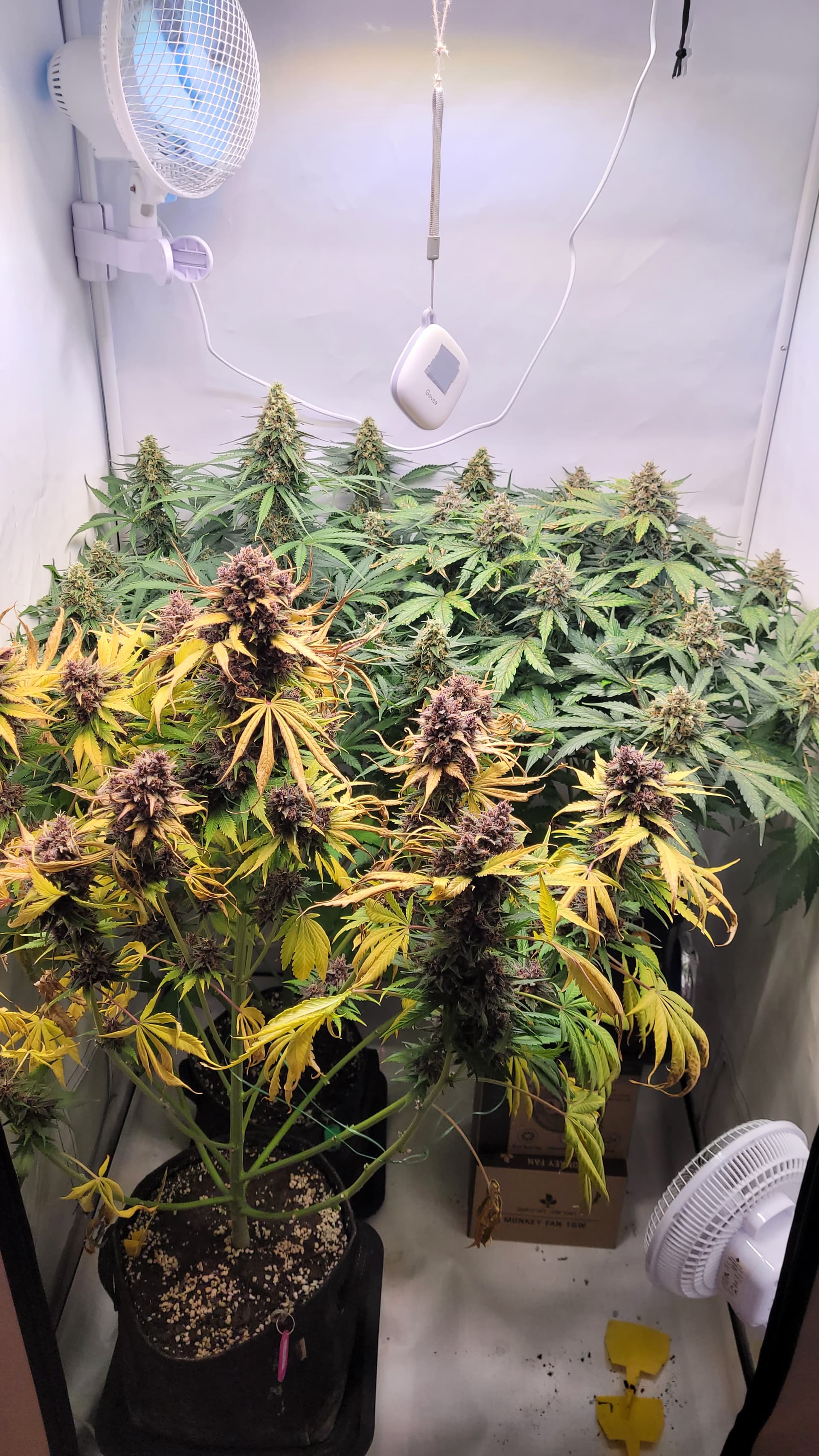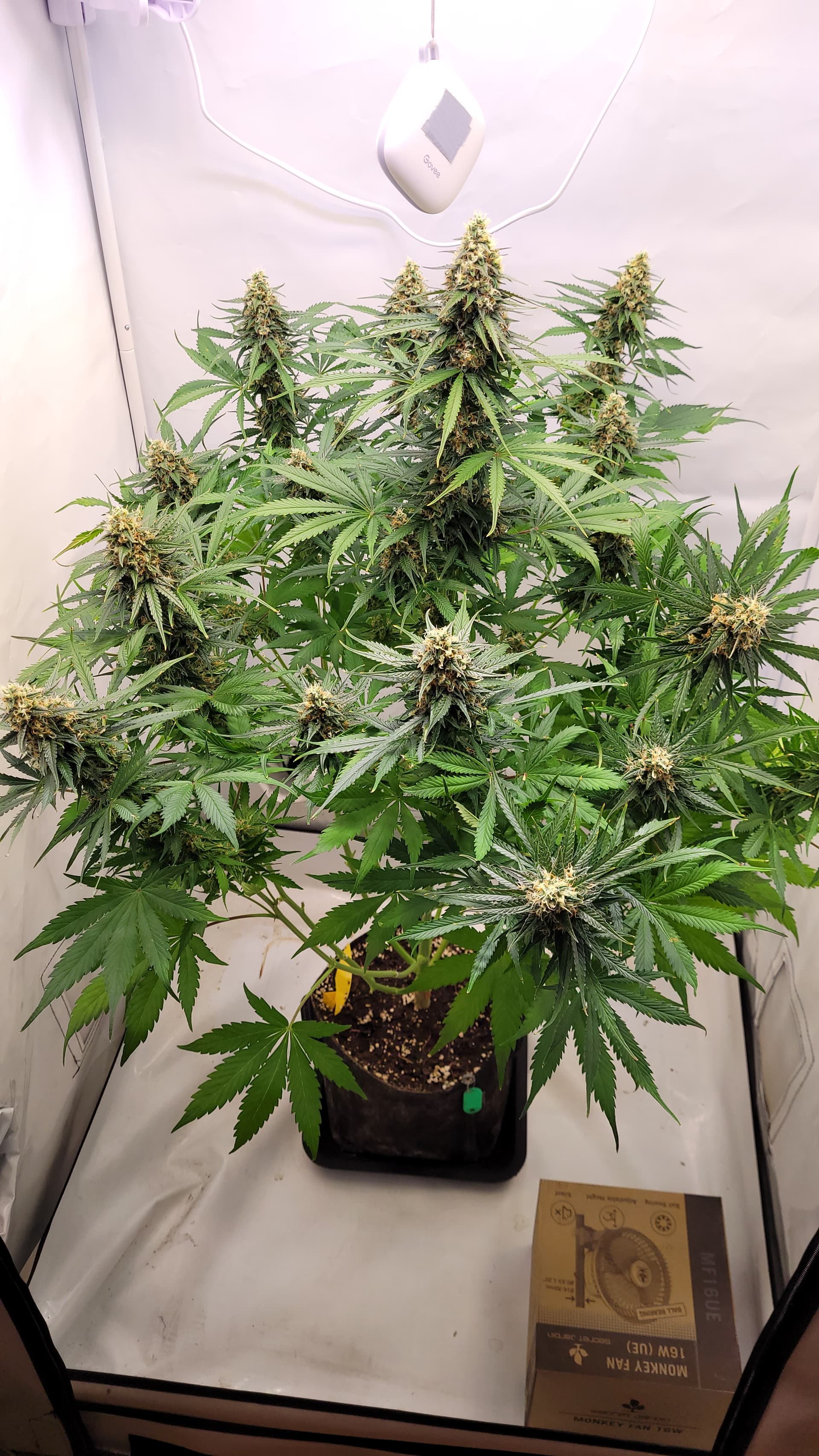 steht jetzt allein. Ich glaube, dass ich tatsächlich Potential liegen lassen habe mit dem absetzen vom Dünger. Da hätte ich sicher noch 1-2 Wochen gehen können. Gut für die Erfahrung, schlecht fürs Ergebnis? Aber mal sehen, was am ende bei raus kommt. Ich musste auch einige Triebe mit Draht stützen, da diese sonst abknicken würden.
