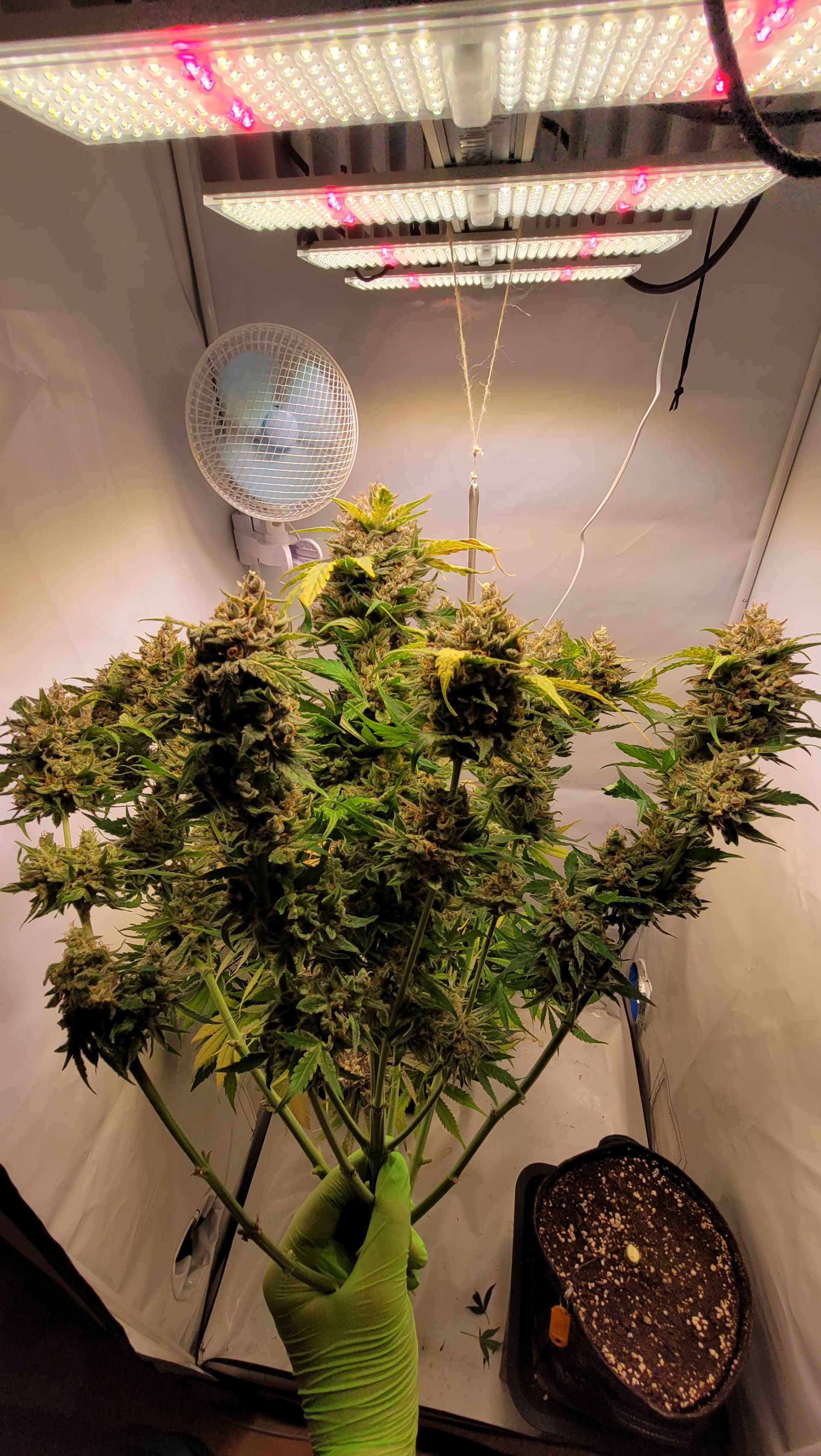 96 Tage später ist die Lampe vorerst aus. Schade, dass ich potential liegen lassen habe beim vorzeitigen einstellen des Düngers, aber ansich sind es doch noch paar Keulen geworden. Sobald diese in den Gläsern gelandet ist, werde ich meinen Grow Room etwas anders einrichten und dann wird es auch weiter gehen. Bis dahin bleibt die Lampe vorerst aus. Ein Schlusswort für diesen Grow wird in den nächsten Wochen noch kommen, nachdem etwas Zeit in den Gläsern vergangen ist. Bis dahin ![]()