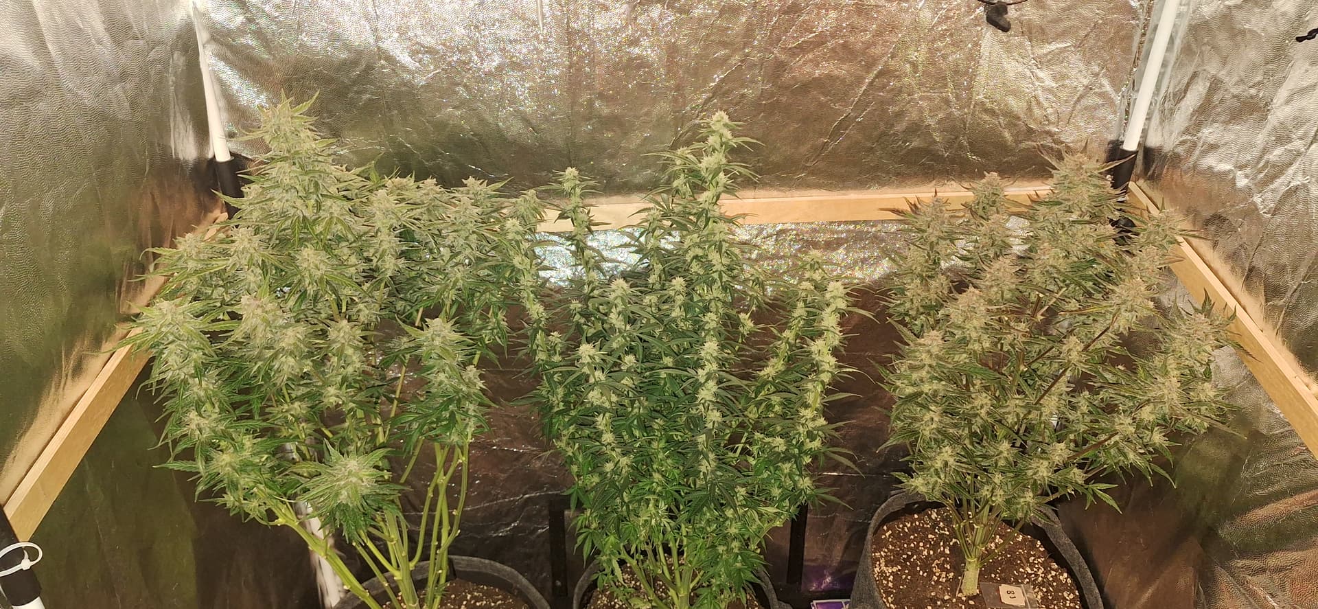Sie wachsen fleißig weiter, Cherry Cookies (Mitte) immer noch nicht in der Blüte. So langsam könnte sie mal starten, da ich mir auch noch nen Stretch erhoff.