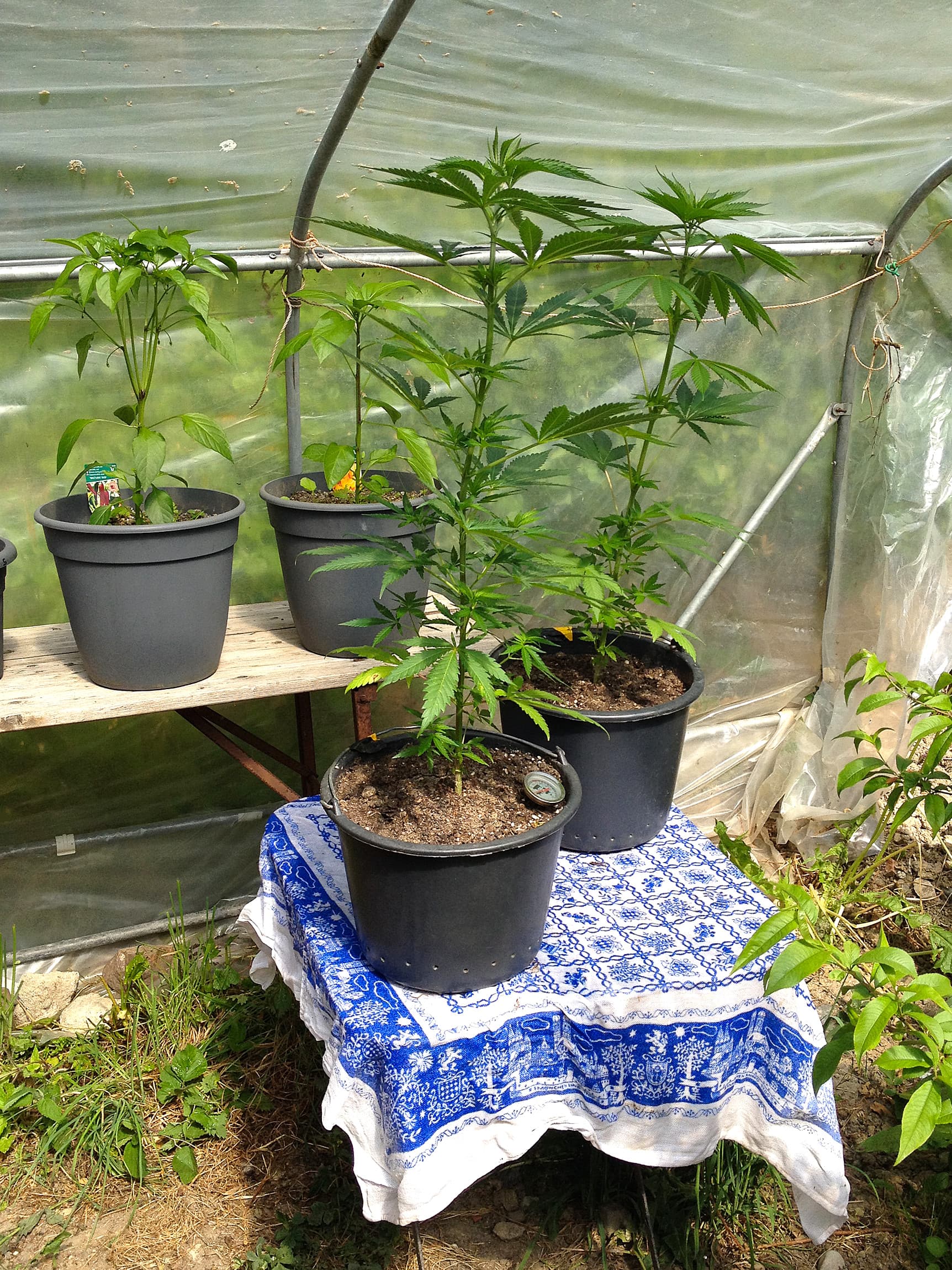 Das is meine Truppe aktuell. Die größte ist bisher die KmintZ von Ripper Seeds ganz links mit knapp 45cm. Wird die nächsten Nächte aber wieder kälter und dann kommen sie wieder rein. Denke 6° C ist mir dann doch etwas zu heikel.