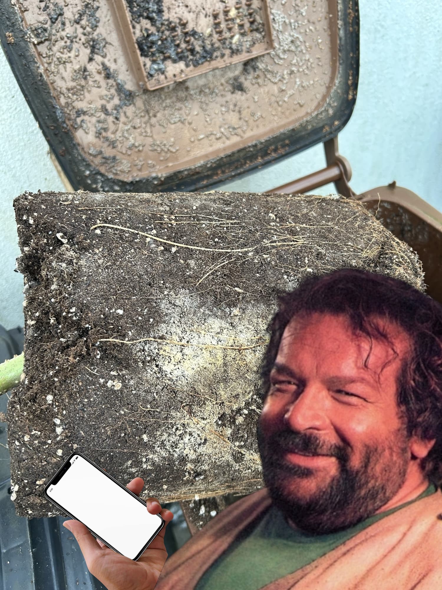Ich stelle es mir so witzig vor, wie bud Spencer vor der Biomüll Tonne steht und einen Wurzelballen fotografiert ![]()