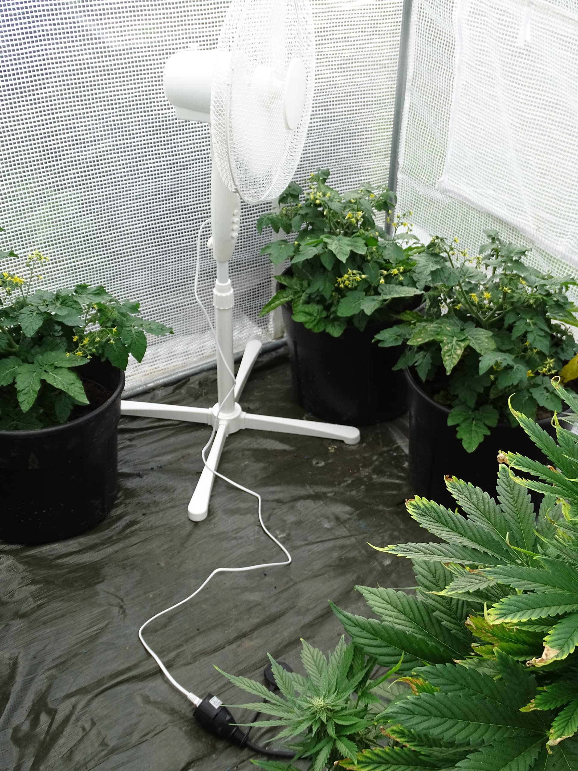 Ich zerstäube die Lösung auch und verteile sie mit dem Ventilator sehr fein im Gewächshaus.