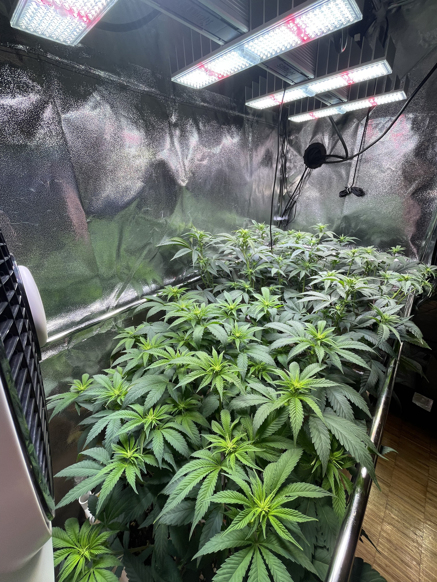 Die brühe unten rauszubekommen macht mir net so Freude. Weniger ist hier mehr. Auch habe ich drauf geachtet in der Umstellung bzw bis zu 2-3 Blütewoche etwas weniger Wasser zu geben. Diese übergroßen Pflanzen haben es deutlich erschwert. Da weniger Feuchtigkeit die Verfügbarkeit von N hemmt und P K dafür besser aufgenommen wird, notwendig um die Plants im Zaum zu halten