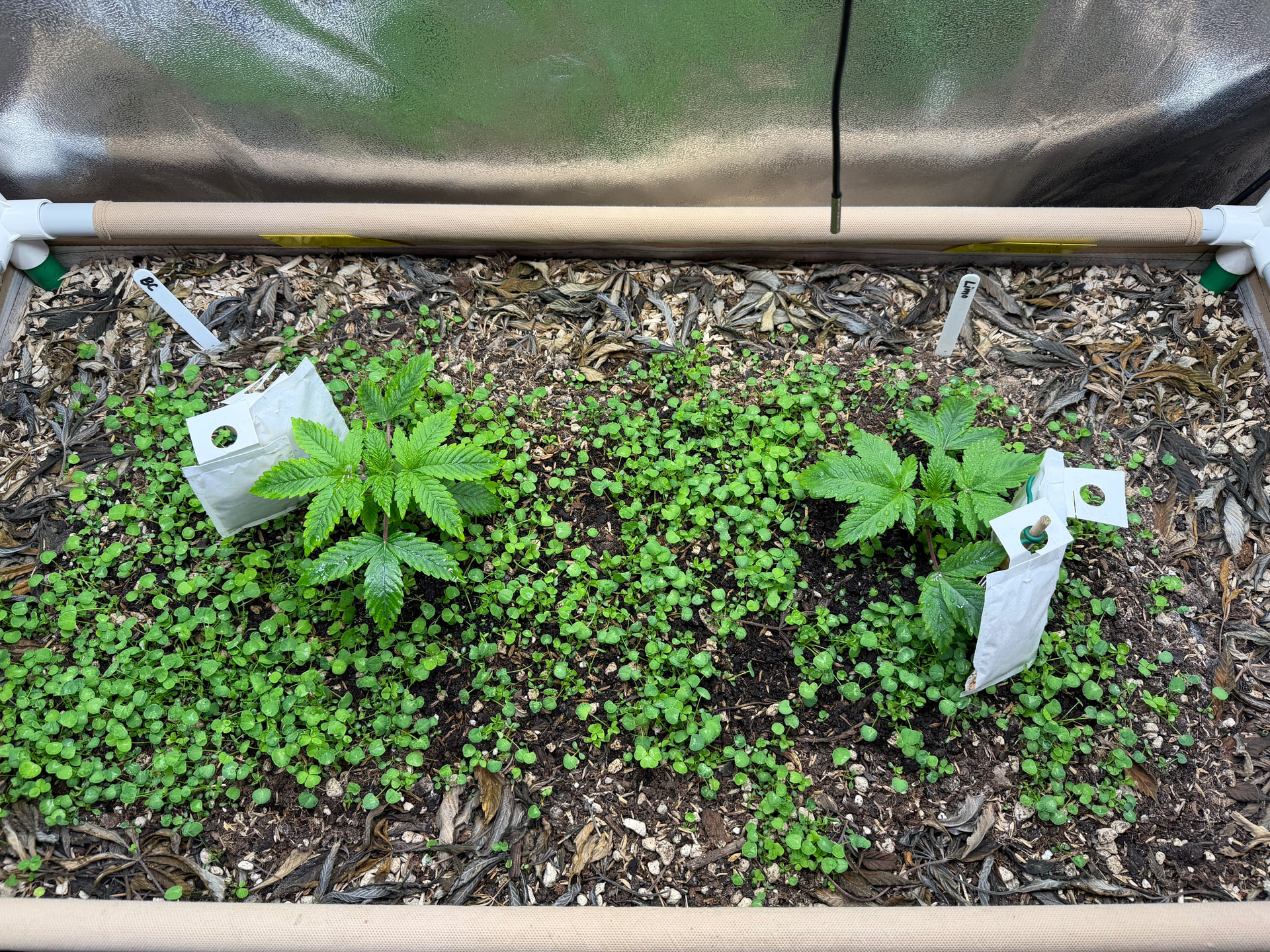 Heute morgen gabs 2-3 Liter Komposttee für die Beiden. Der Klee scheint das ganze bald auch etwas besser zusammen zu halten als bisher