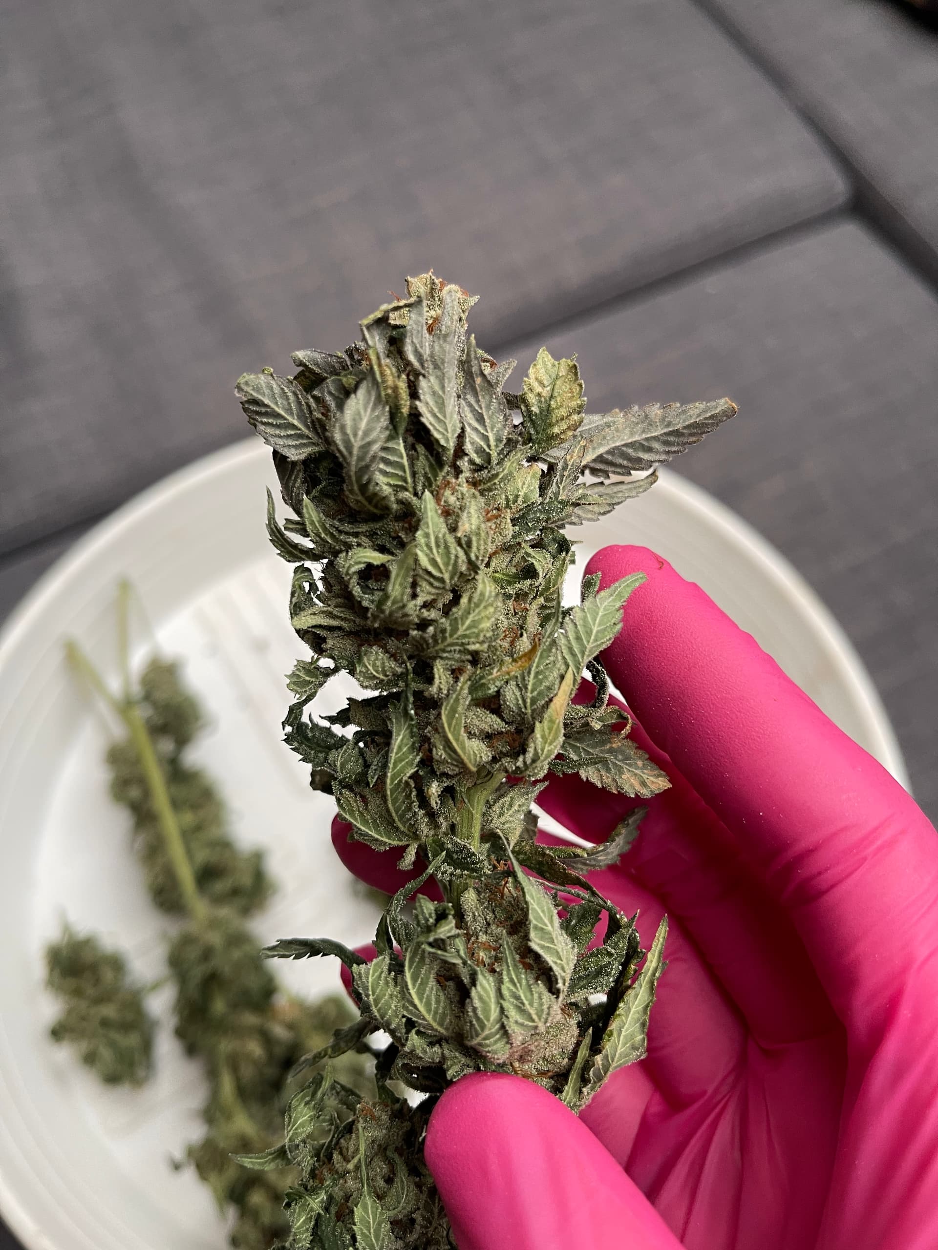 Am Wochenende wurde fleißig die Schere geschwungen und manche Buds waren schon noch etwas pampig, da hat der Feinschnitt nicht gerade spaß gemacht. Außerdem habe ich gleich Beobachtung wie @Snugglez gemacht. Trotz des recht verhaltenen Entlaubens sind einige Blätter an den Blüten nach gewachsen, zu meinem Nachteil.