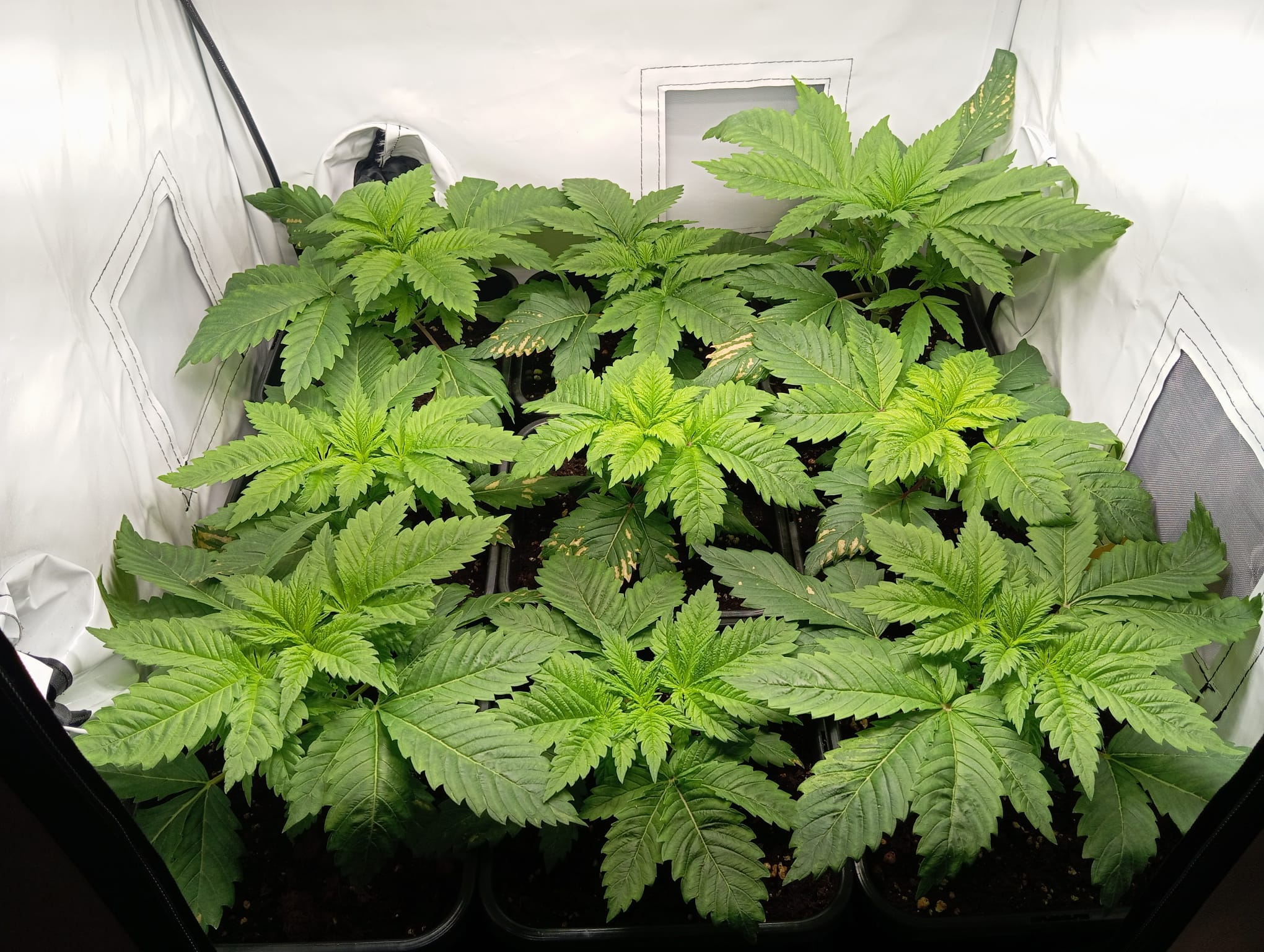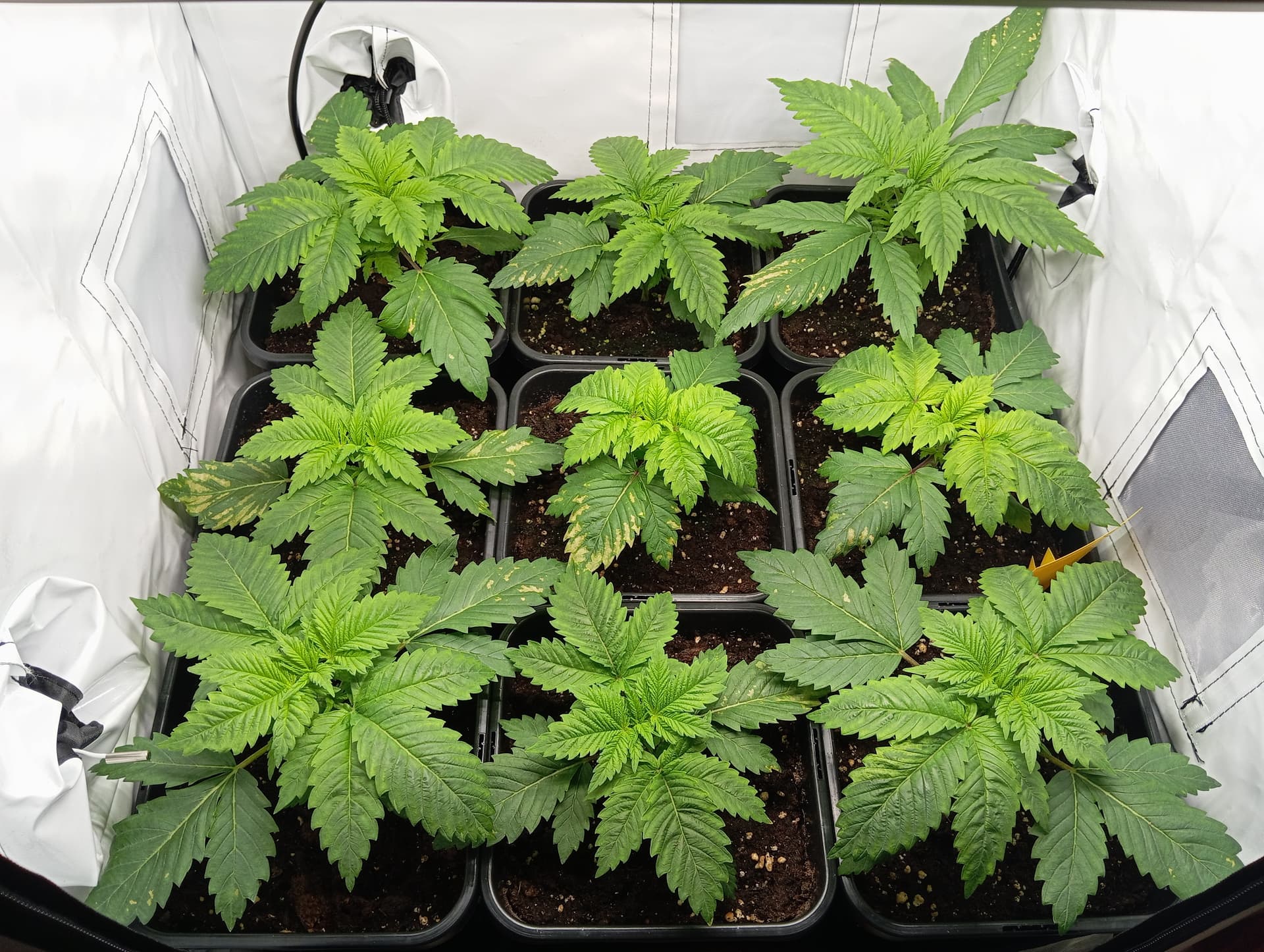 Das ist mein erster Grow jemals und kann noch nicht richtig einschätzen wann die perfekte Zeit ist, meine Ladys in die Blüte zu schicken. Meine Pflänzchen sind aufgrund eines Nährstoffmangels (der behoben wurde) an manchen Stellen ein wenig geschwächt. Mir wurde bei einer anderen Frage in diesem Forum bereits empfohlen, bei meinen Pflanzen möglichst bald die Blütephase einzuleiten, bevor sie zu groß werden und sich gegenseitig den Platz im Zelt wegnehmen.