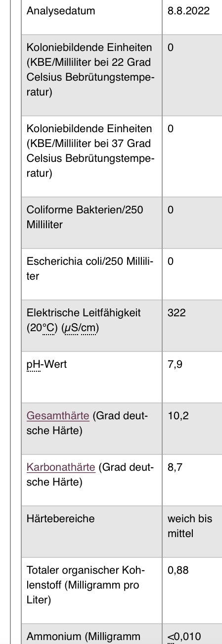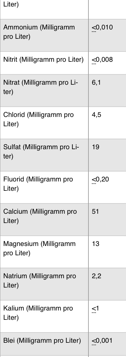 Du hast 51mg Calzium und 13mg Magnesium in einem Liter bei deinem Leitungswasser.