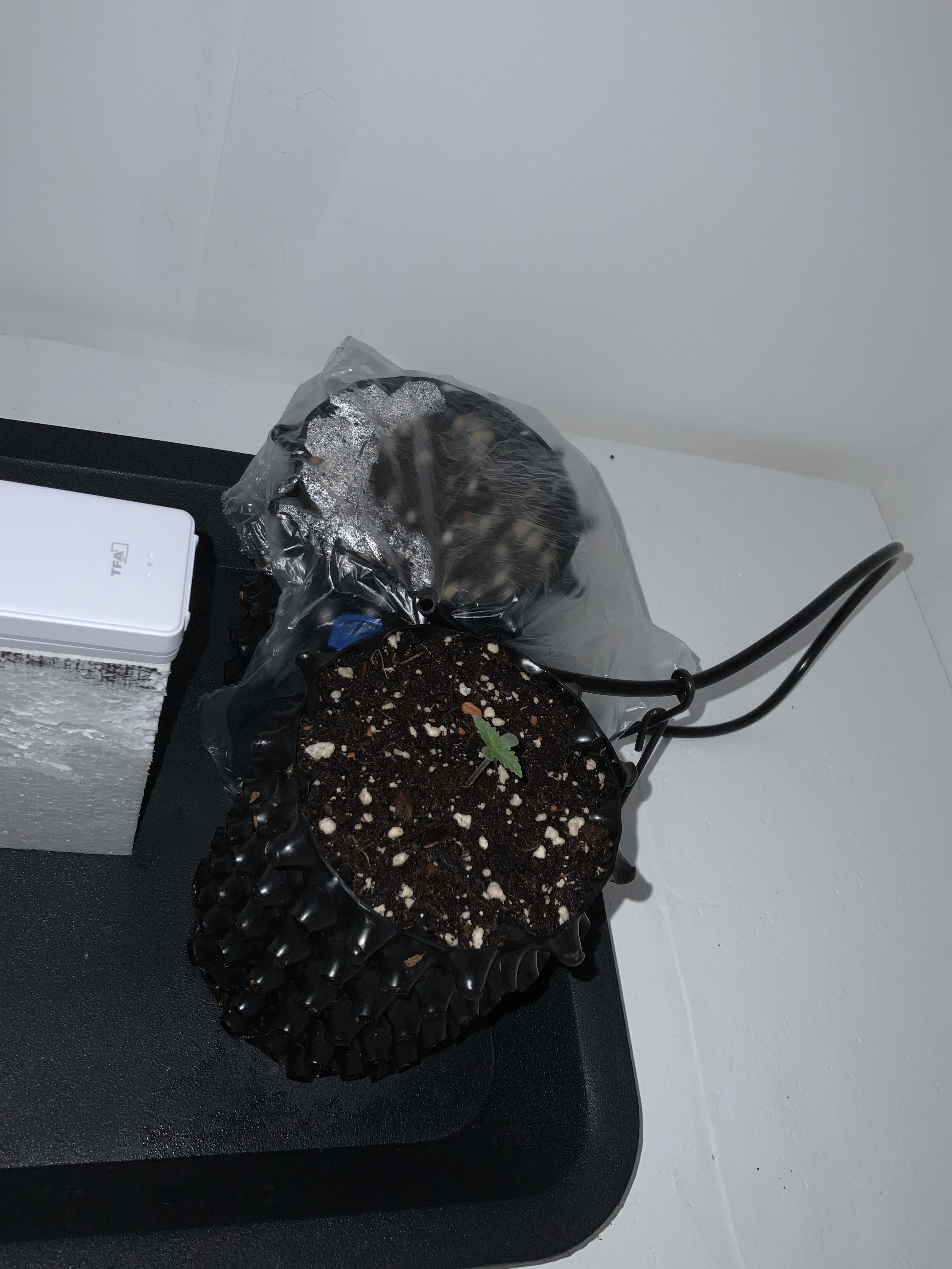 Gestern bzw heute am 26.9 um 0:40Uhr wurden die in die Erde gesteckt, seitdem stehen die in diesem kleinen Schrank im Dunkeln.. habe vorher mal kurz die Tür aufgemacht damit Luft zirkuliert.. jetzt bisschen die Tür aufgemacht und nen großen Ventilator hingestellt der ist aber zu stark deswegen pustet er gegen eine Wand und dann in die kleine Lücke in den Schrank wo die kleinen drinstehen.
