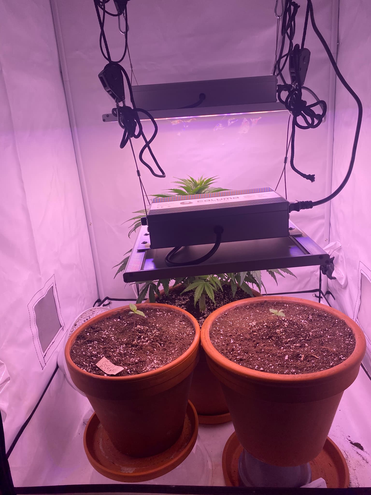 Nach einem Keimdrama nachdem ursprünglich eine SuperSkunk Auto (beide Samen tot) und eine Panty Punch Auto (Krüppelwuchs) vorgesehen war und nur die Gorilla Cookies AUTO (Gift Pack) gekeimt ist (und prächtig steht )