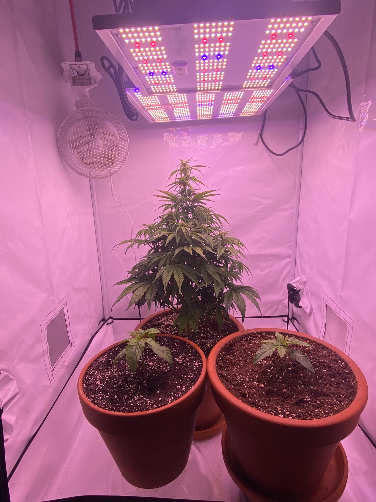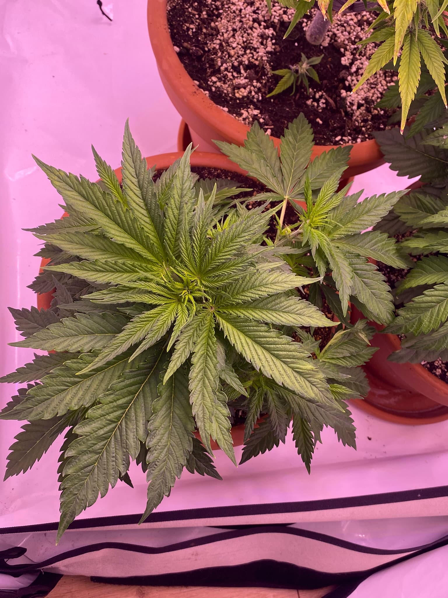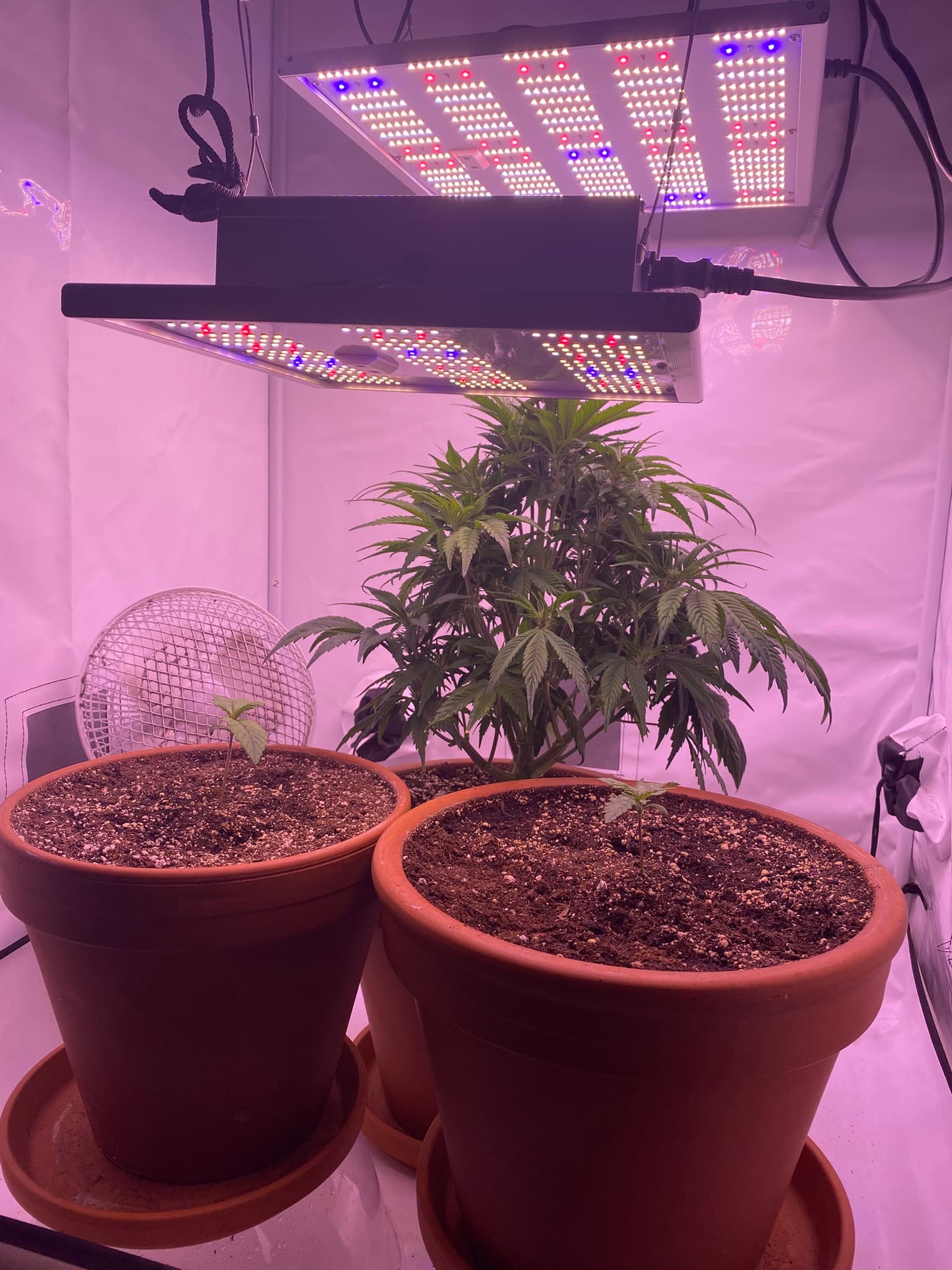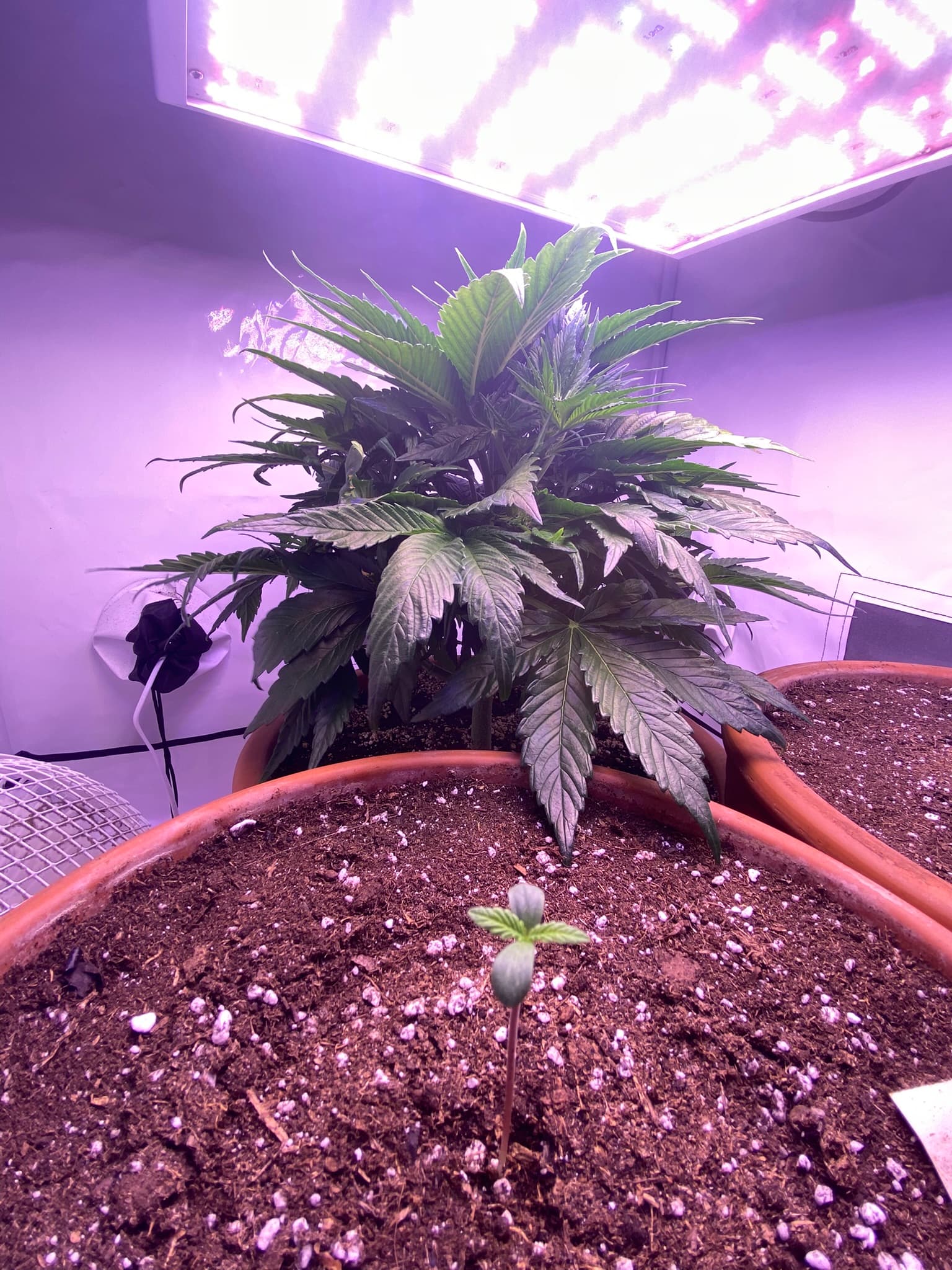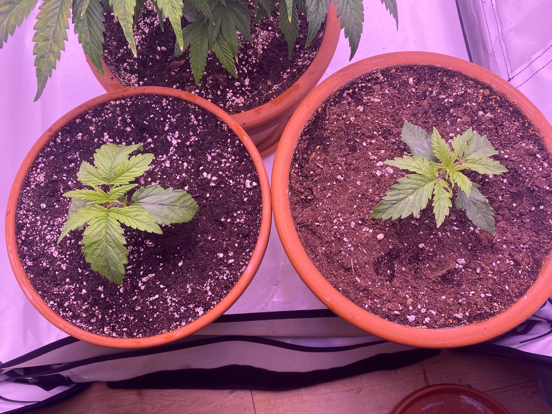 Plan ist die 25 Tage alte Gorilla Cookies Automatik weiterhin mit 18/6 auf 50 % Lampenleistung 15 cm Abstand zu growen. Die andern beiden sind 24 H im WasserGlas gewesen und wurden dann eingepflanzt. Keimen also noch. Hab noch ne 2. Lampe,mach ich dann auf 25% wenn sie dann gekeimt sind. Dann lustige Vegi Phase mit den beiden Feminisierten 18/6 bis ich mich dann dazu entscheide die Blüte einzuleiten , und dann läuft die Gorilla Cookies AUTO halt auf 12 / 12 Lichtstunden. War bei der SuperSkunk auch kein Problem. Ist meine letzte Automatik.