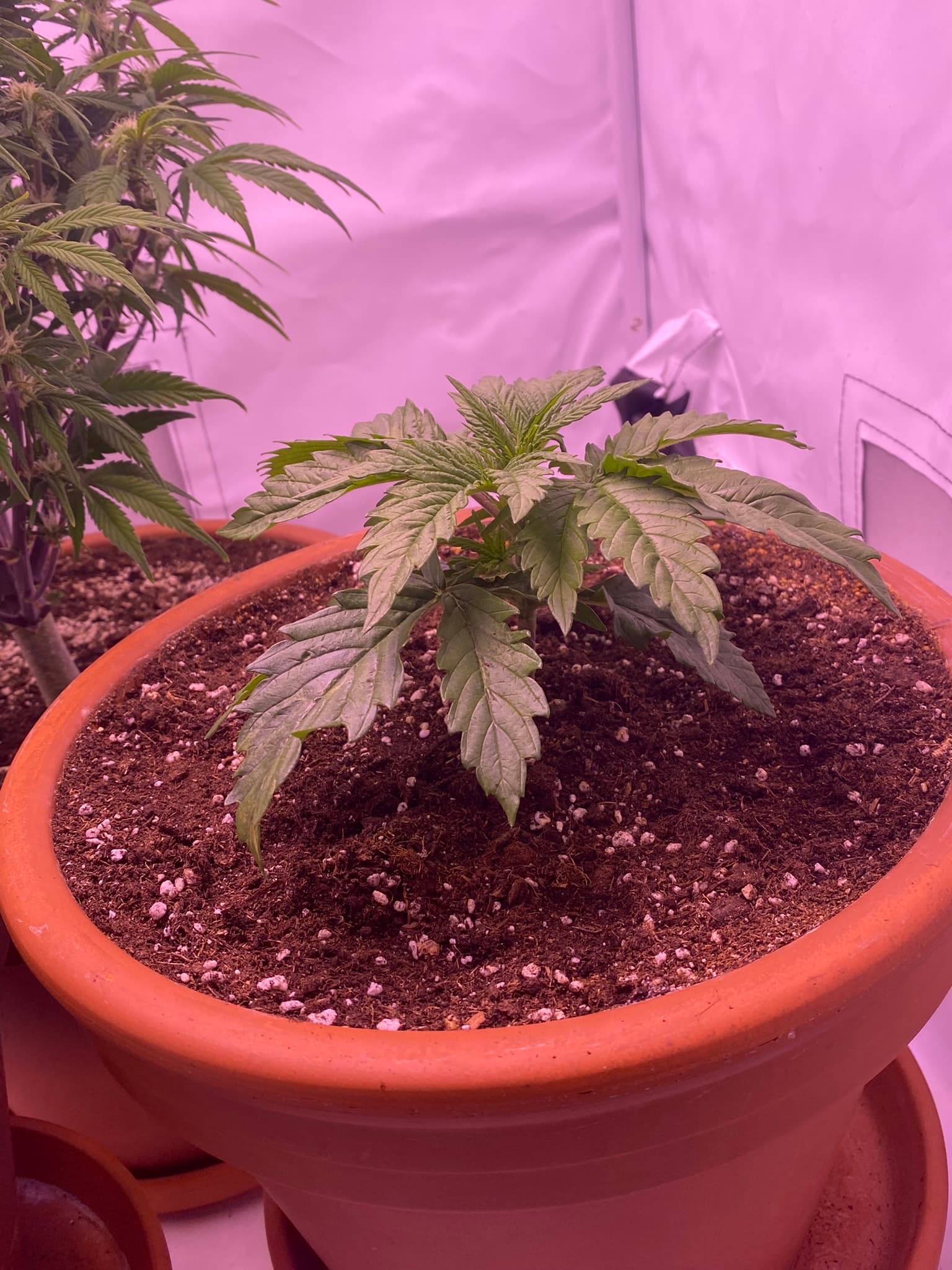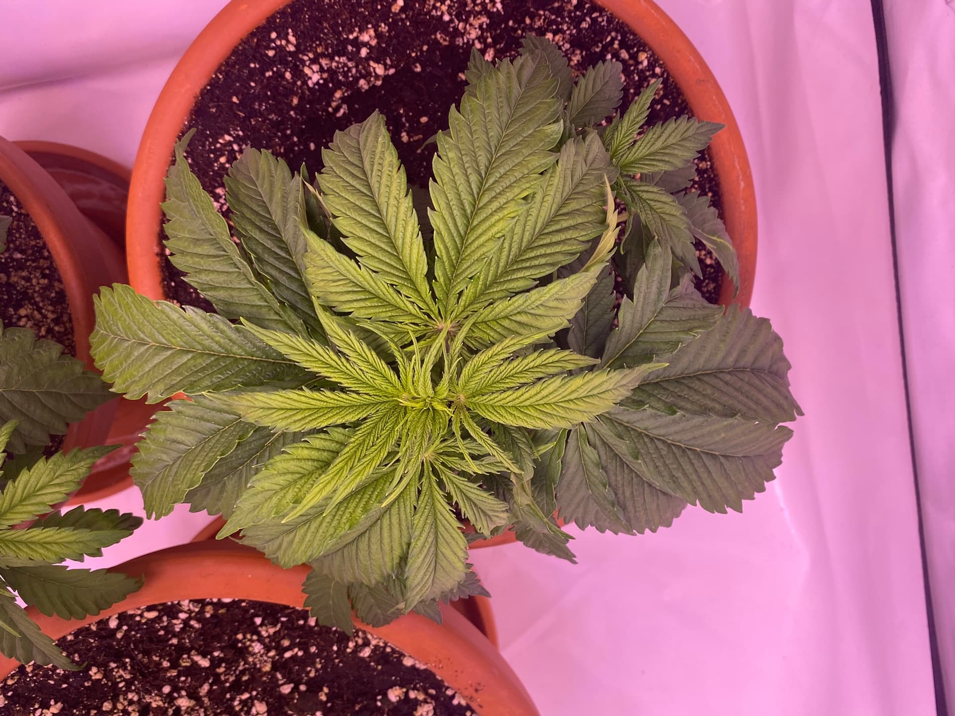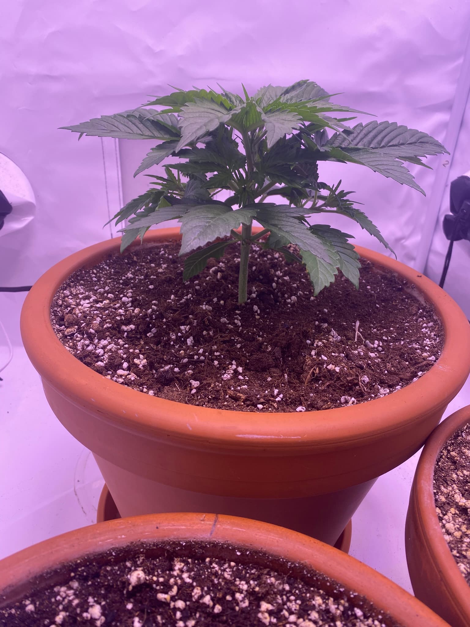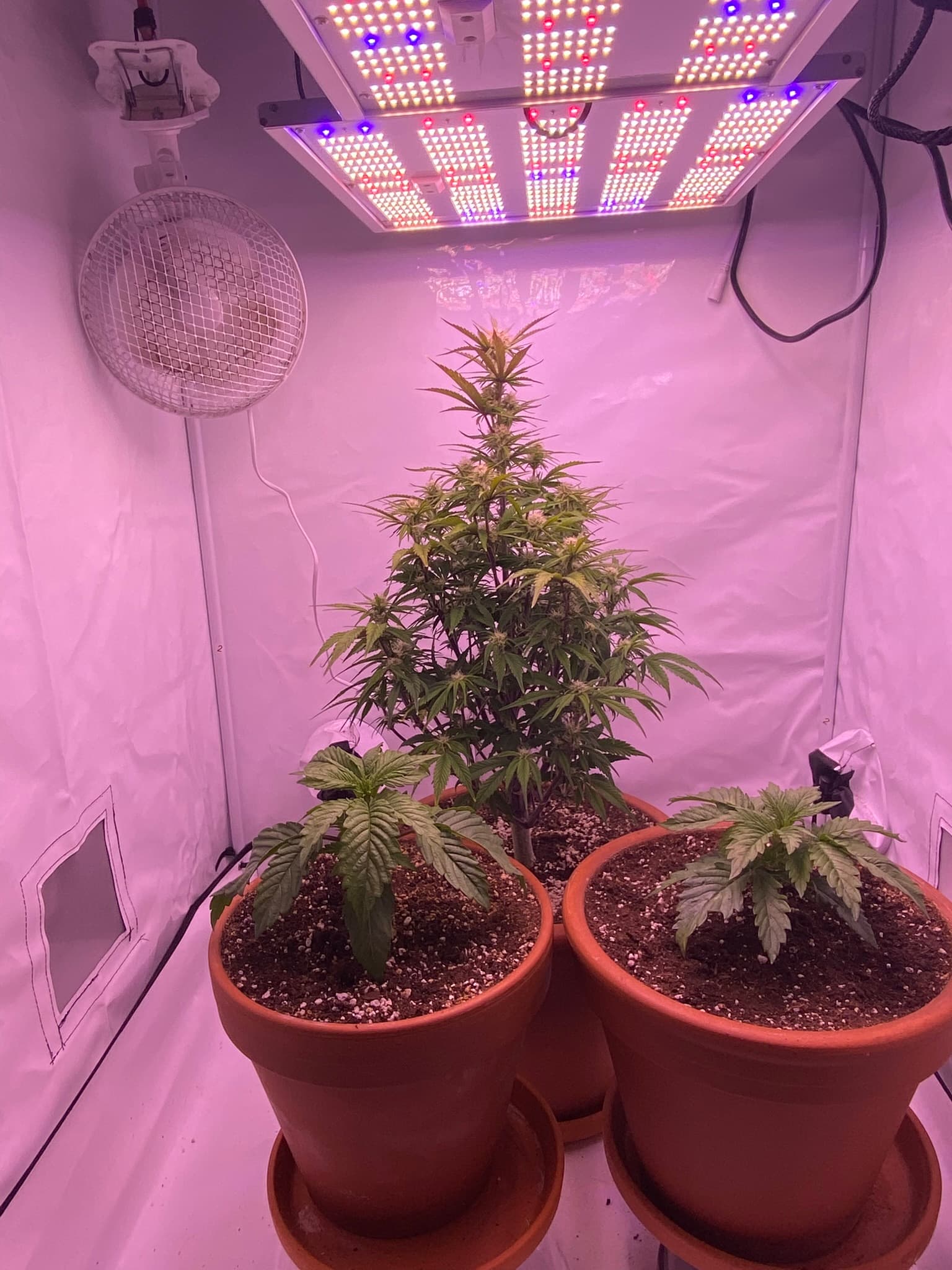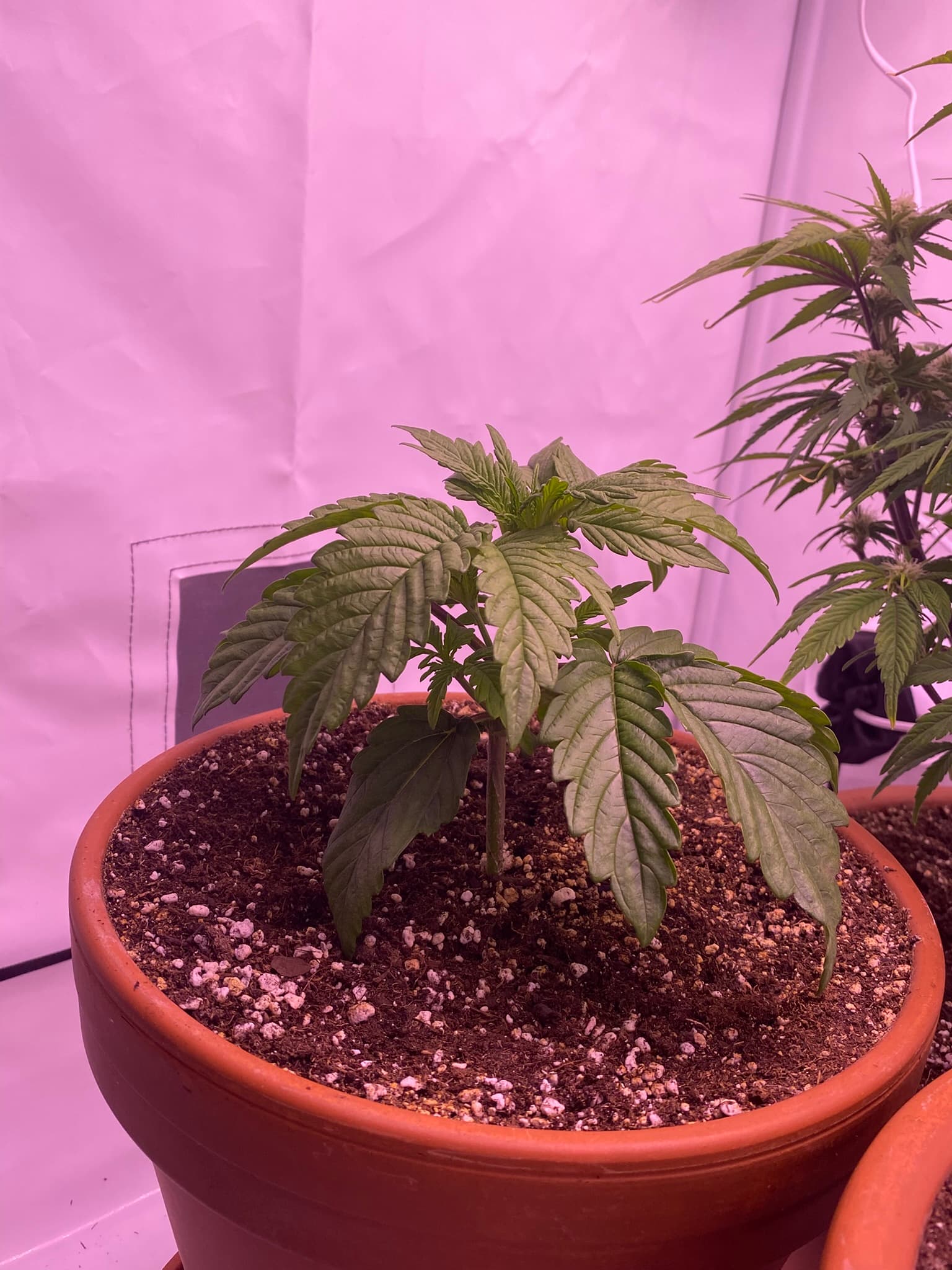 Plan ist die 25 Tage alte Gorilla Cookies Automatik weiterhin mit 18/6 auf 50 % Lampenleistung 15 cm Abstand zu growen. Die andern beiden sind 24 H im WasserGlas gewesen und wurden dann eingepflanzt. Keimen also noch. Hab noch ne 2. Lampe,mach ich dann auf 25% wenn sie dann gekeimt sind. Dann lustige Vegi Phase mit den beiden Feminisierten 18/6 bis ich mich dann dazu entscheide die Blüte einzuleiten , und dann läuft die Gorilla Cookies AUTO halt auf 12 / 12 Lichtstunden. War bei der SuperSkunk auch kein Problem. Ist meine letzte Automatik.