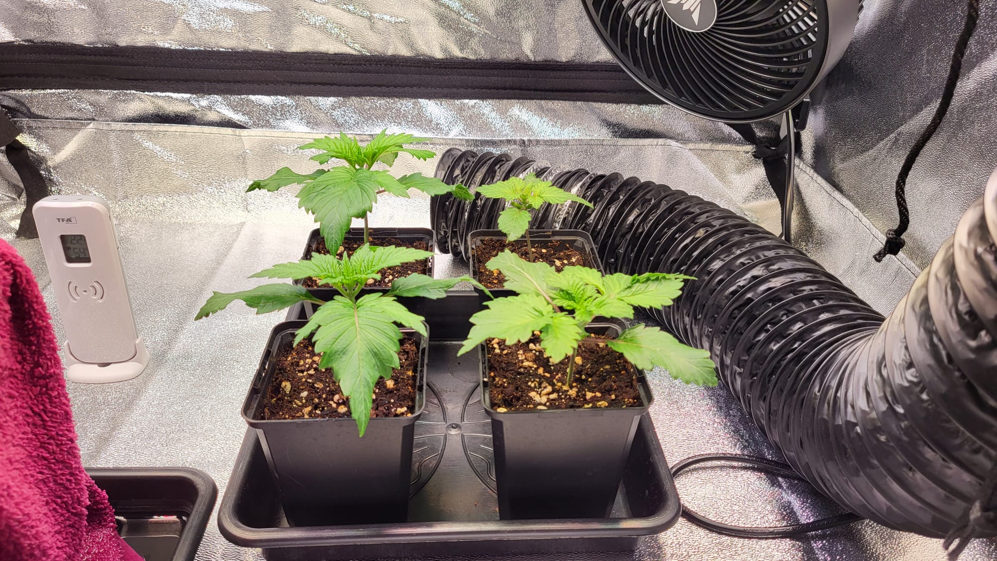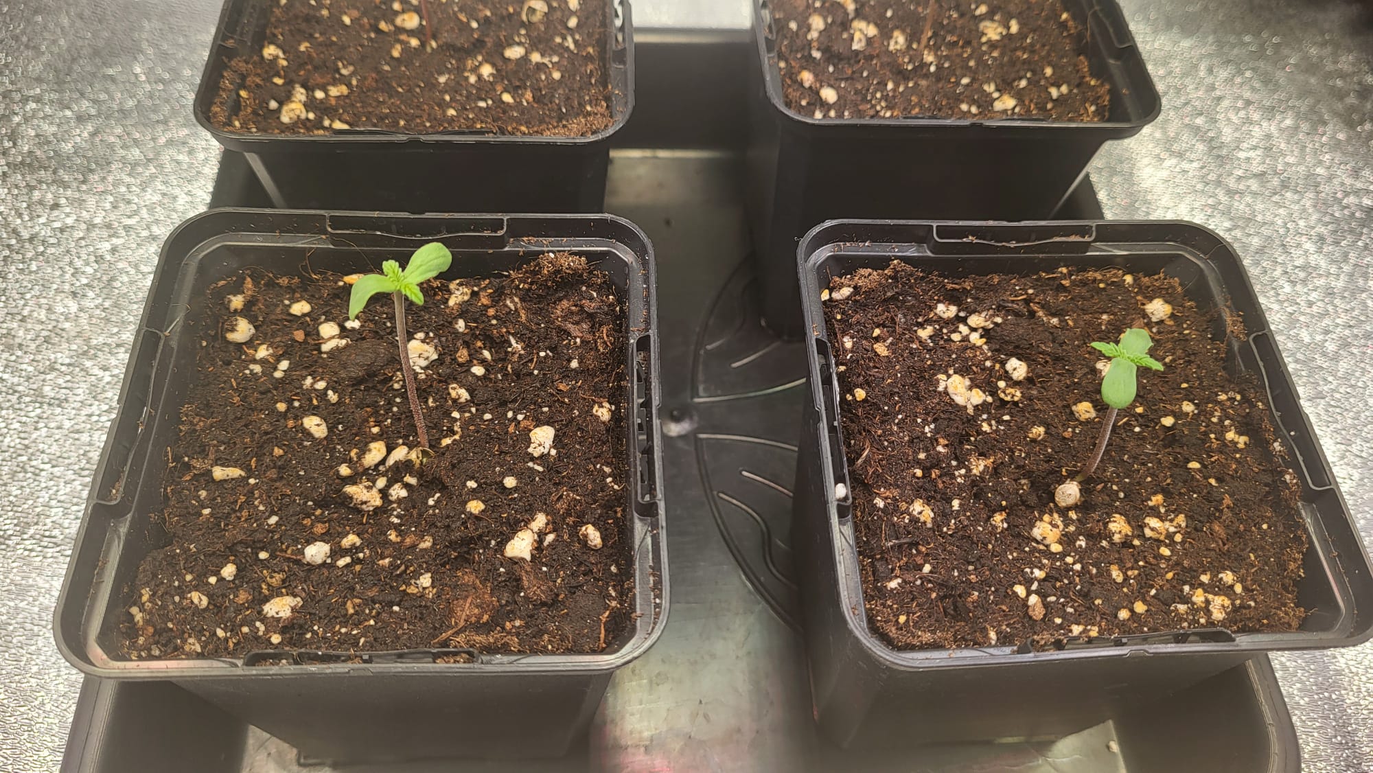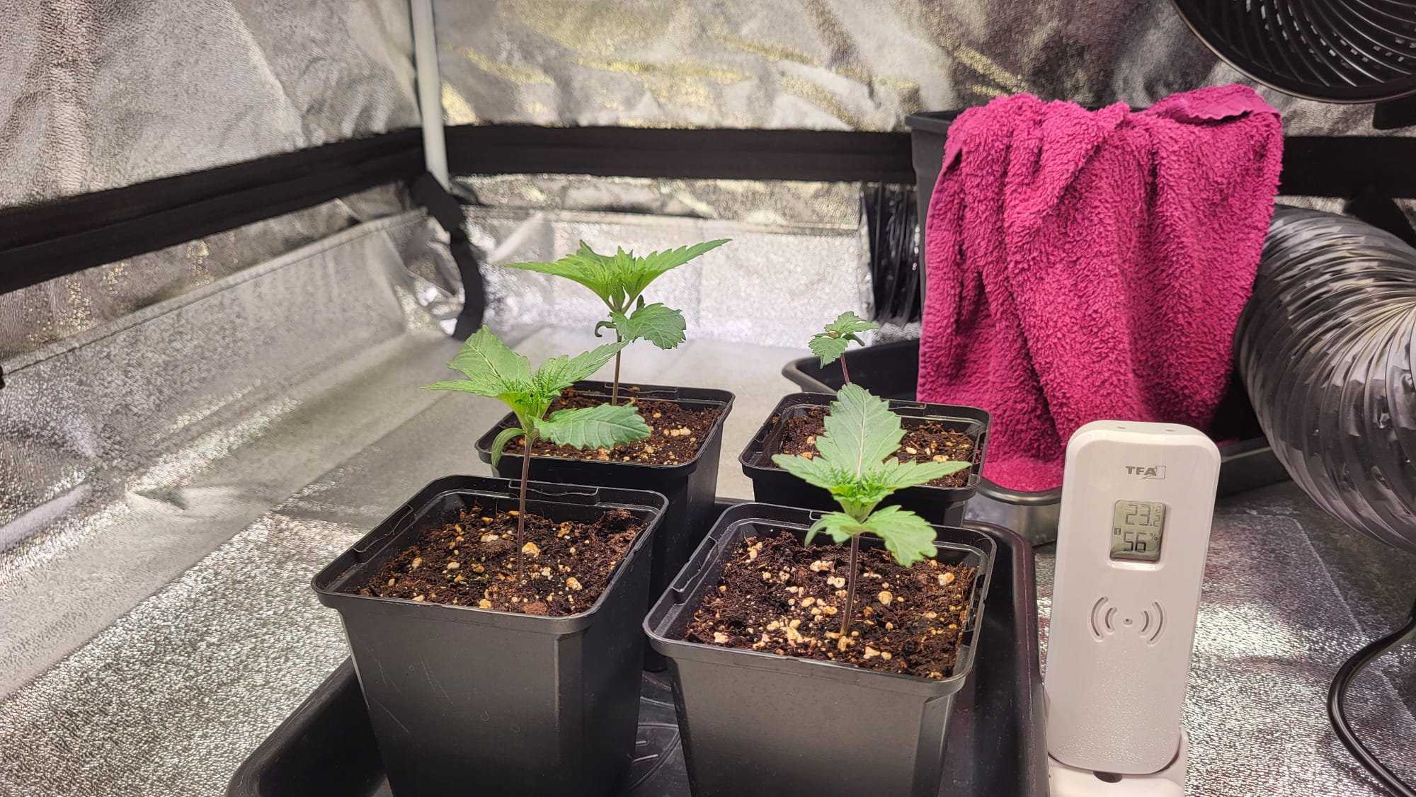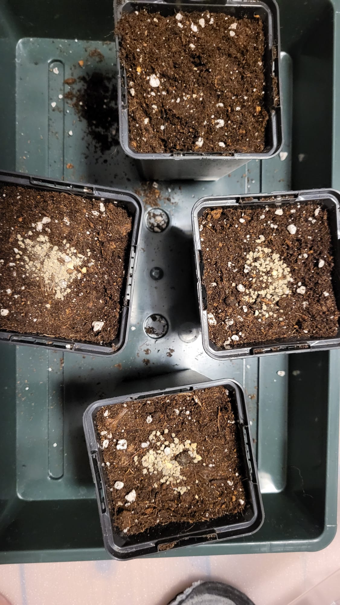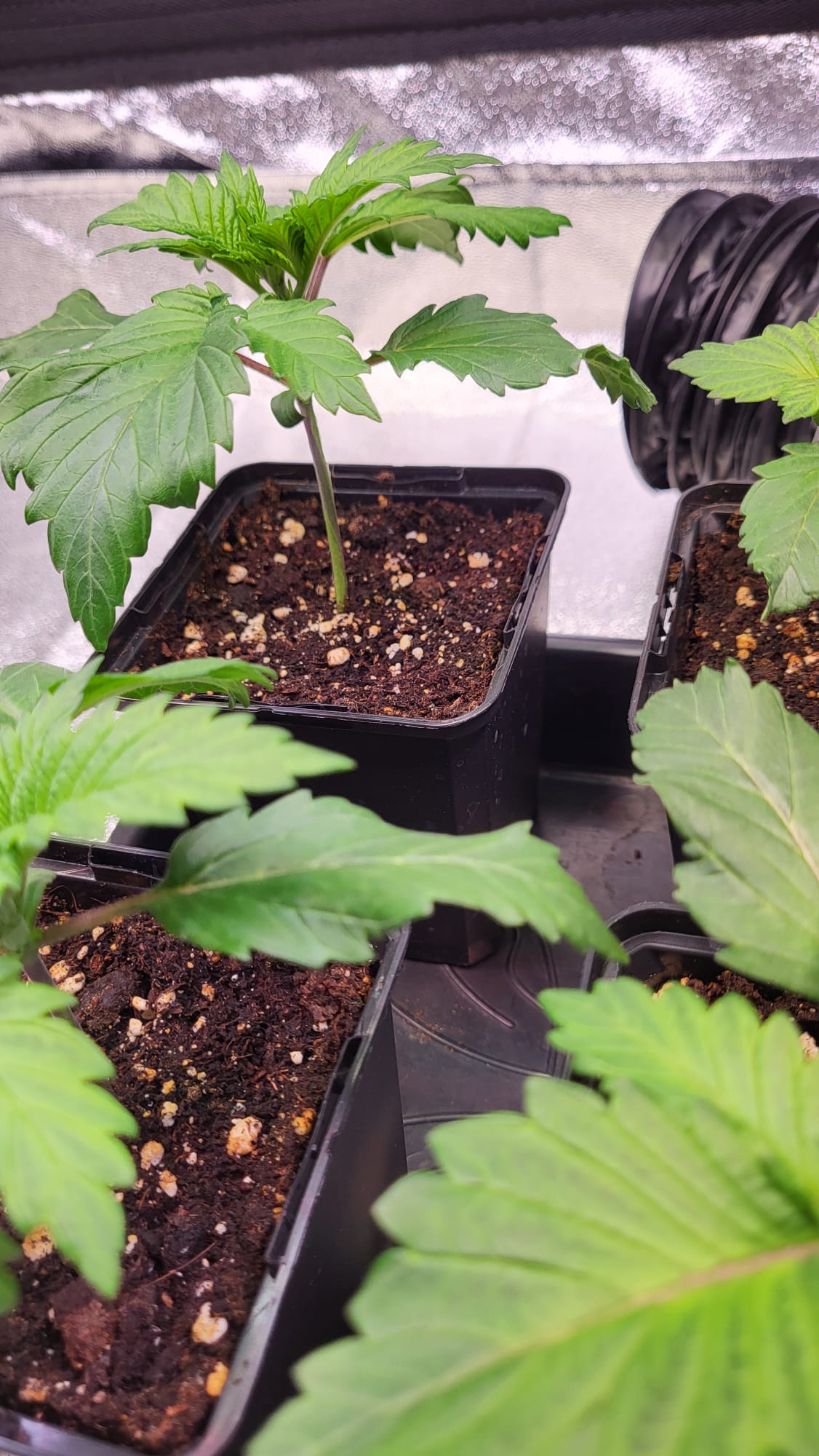 bin mir da noch etwas unsicher. Letztes Mal hatte ich 0,5 L → 3,5 L → 11 L. Ich würde die 3,5 L Töpfe weglassen oder durch kleinere ersetzen, je nachdem wie ich es zum Grow Shop schaffe.