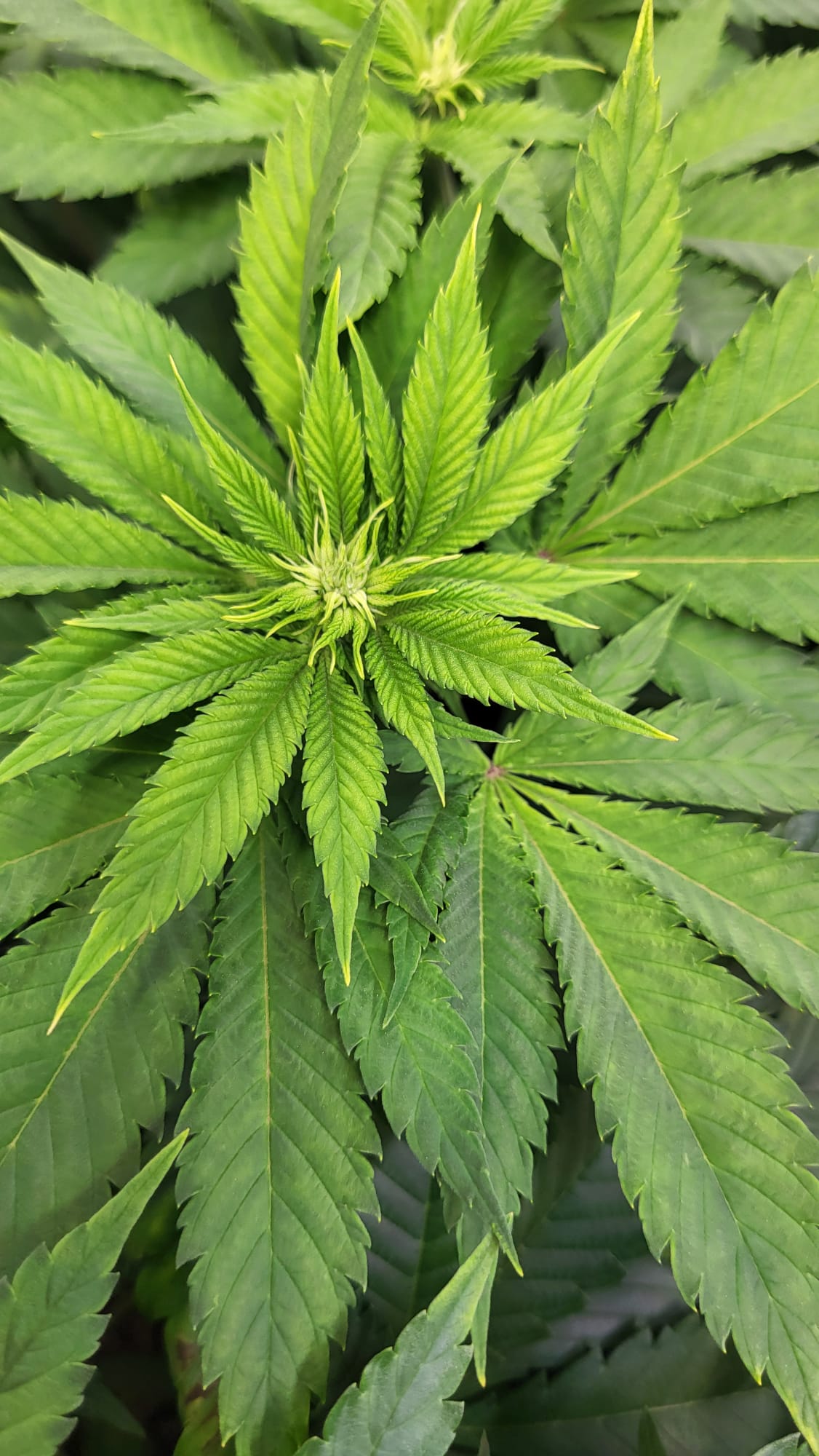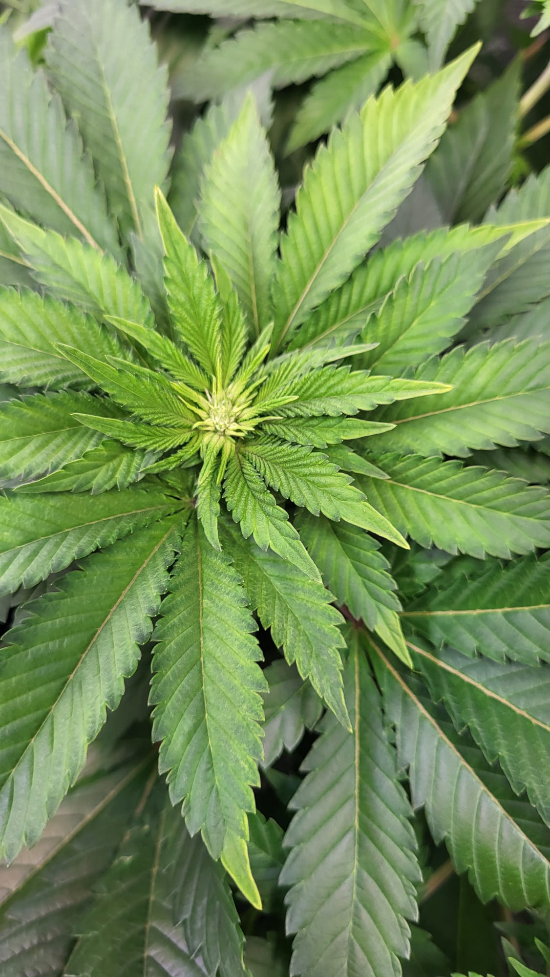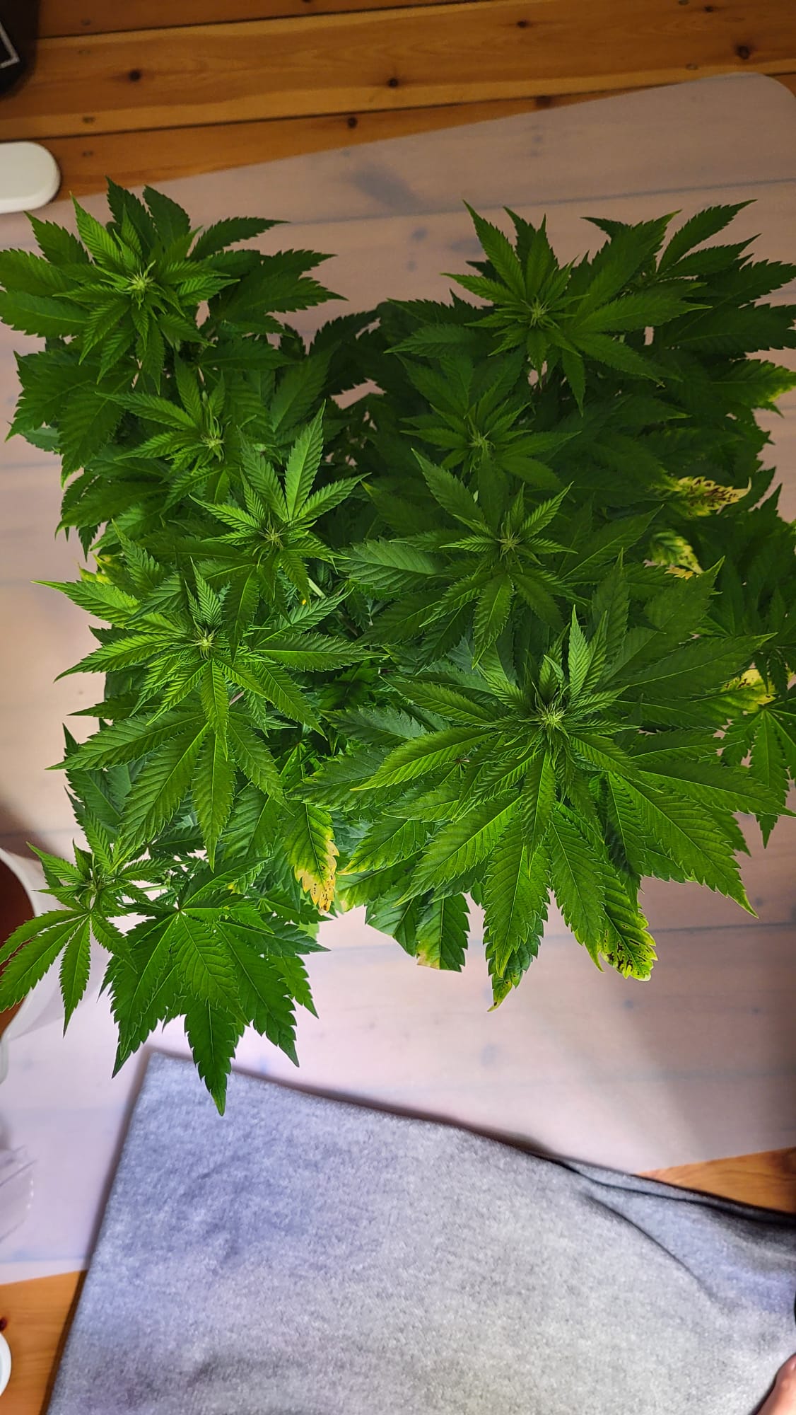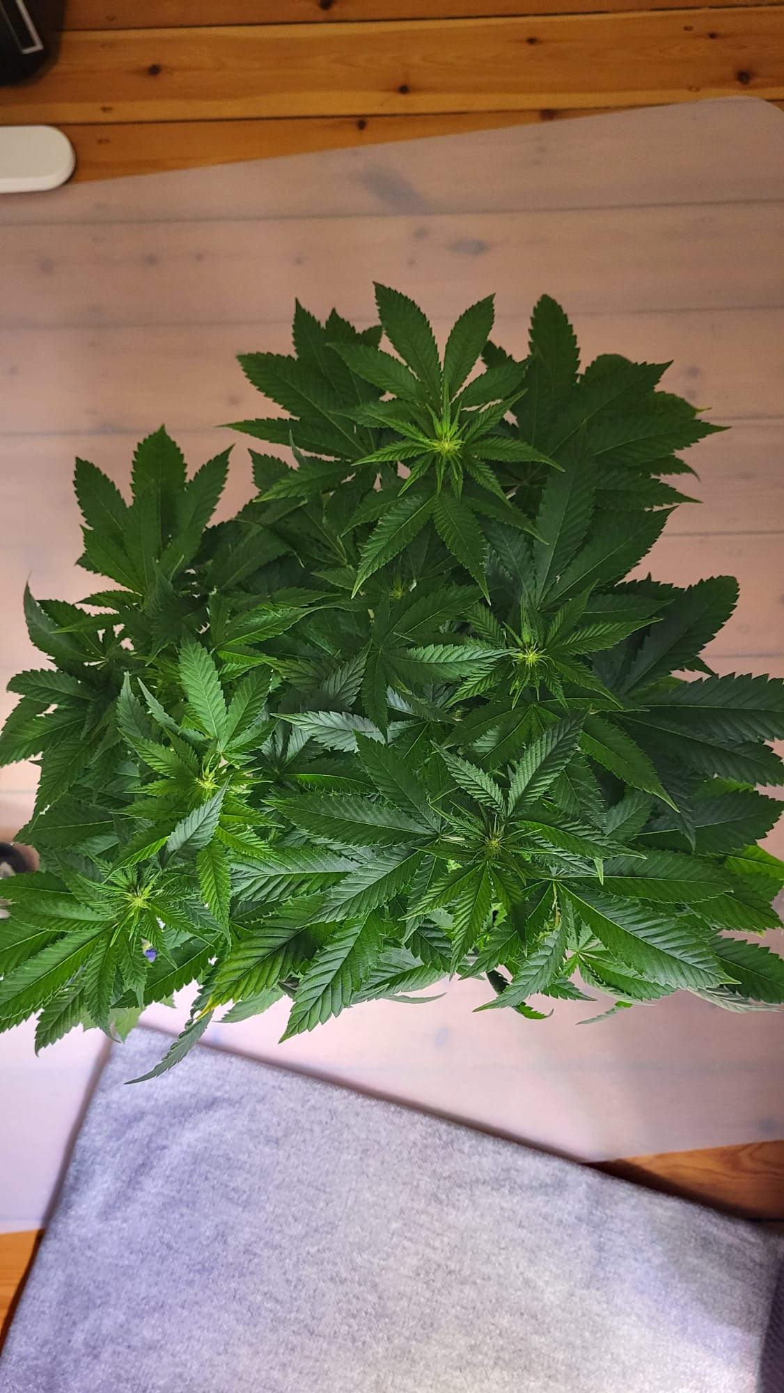 Ich wollte der Pflanze noch paar Tage geben, dass sich die oberen Triebe noch etwas entwickeln und sie sich noch etwas erholt. Dann nochmal entlauben (v.a. die Blätter die nach innen zeigen) und demnächst auf 12/12 stellen. Vielleicht in einer Woche oder so.