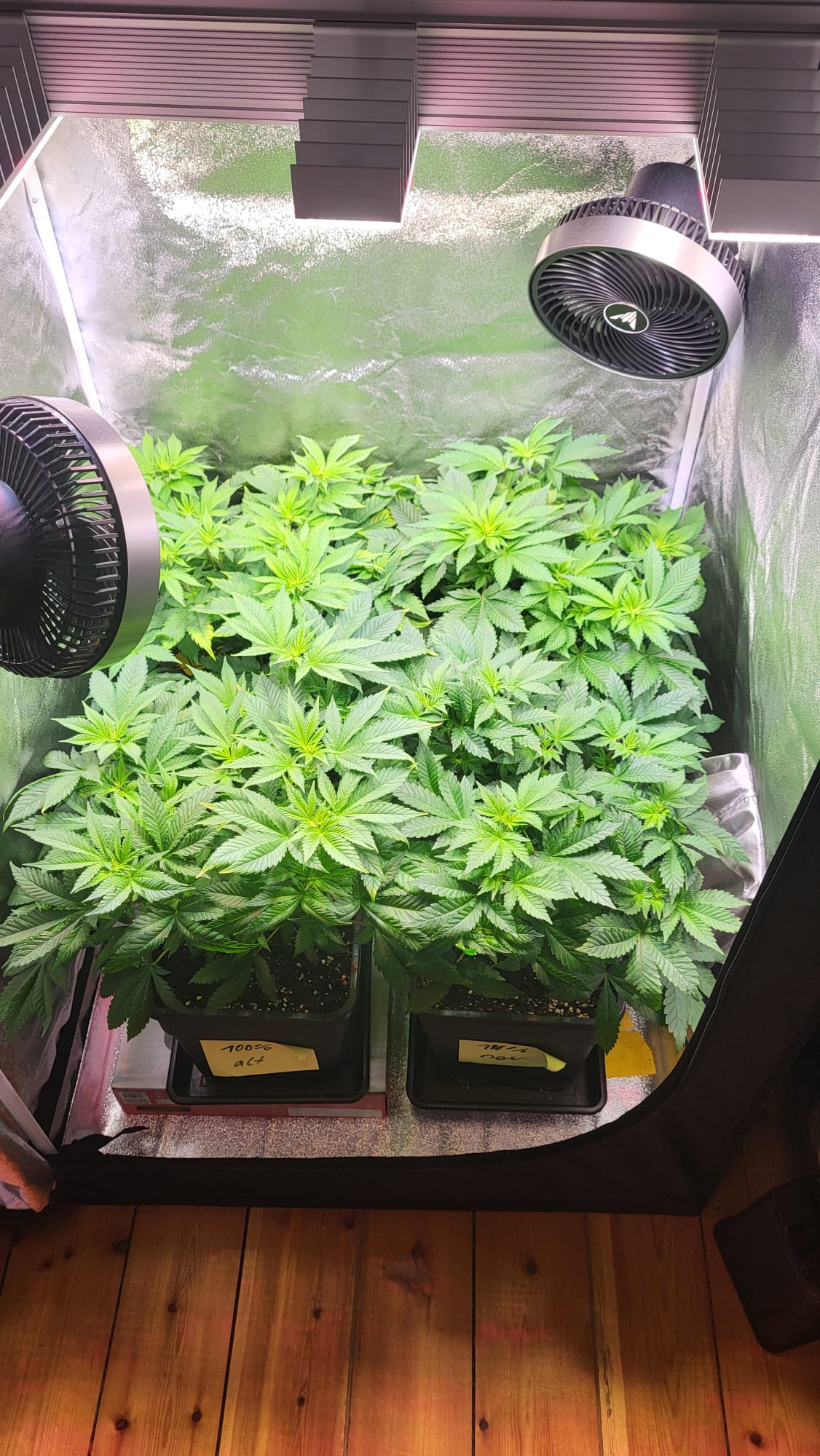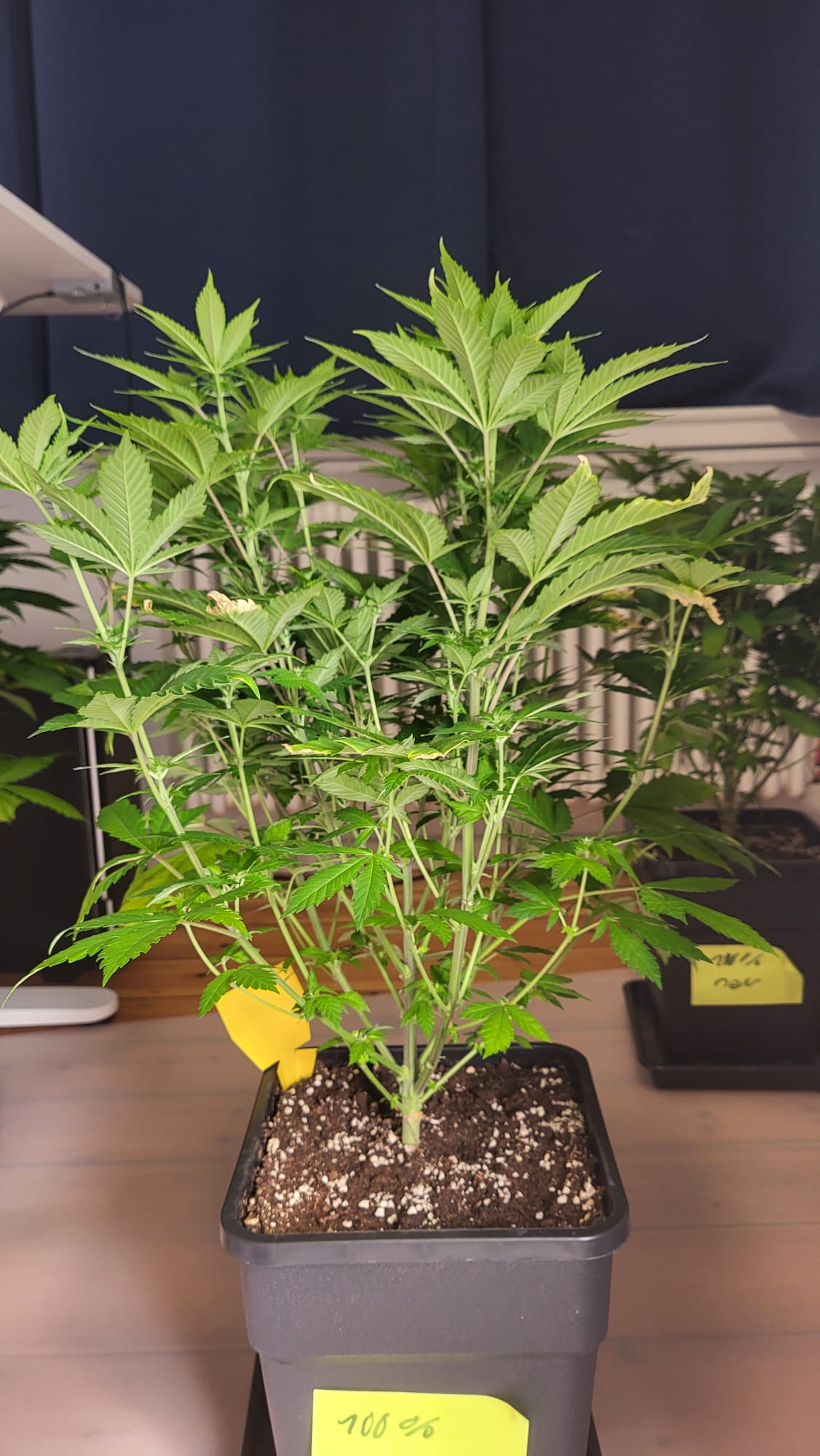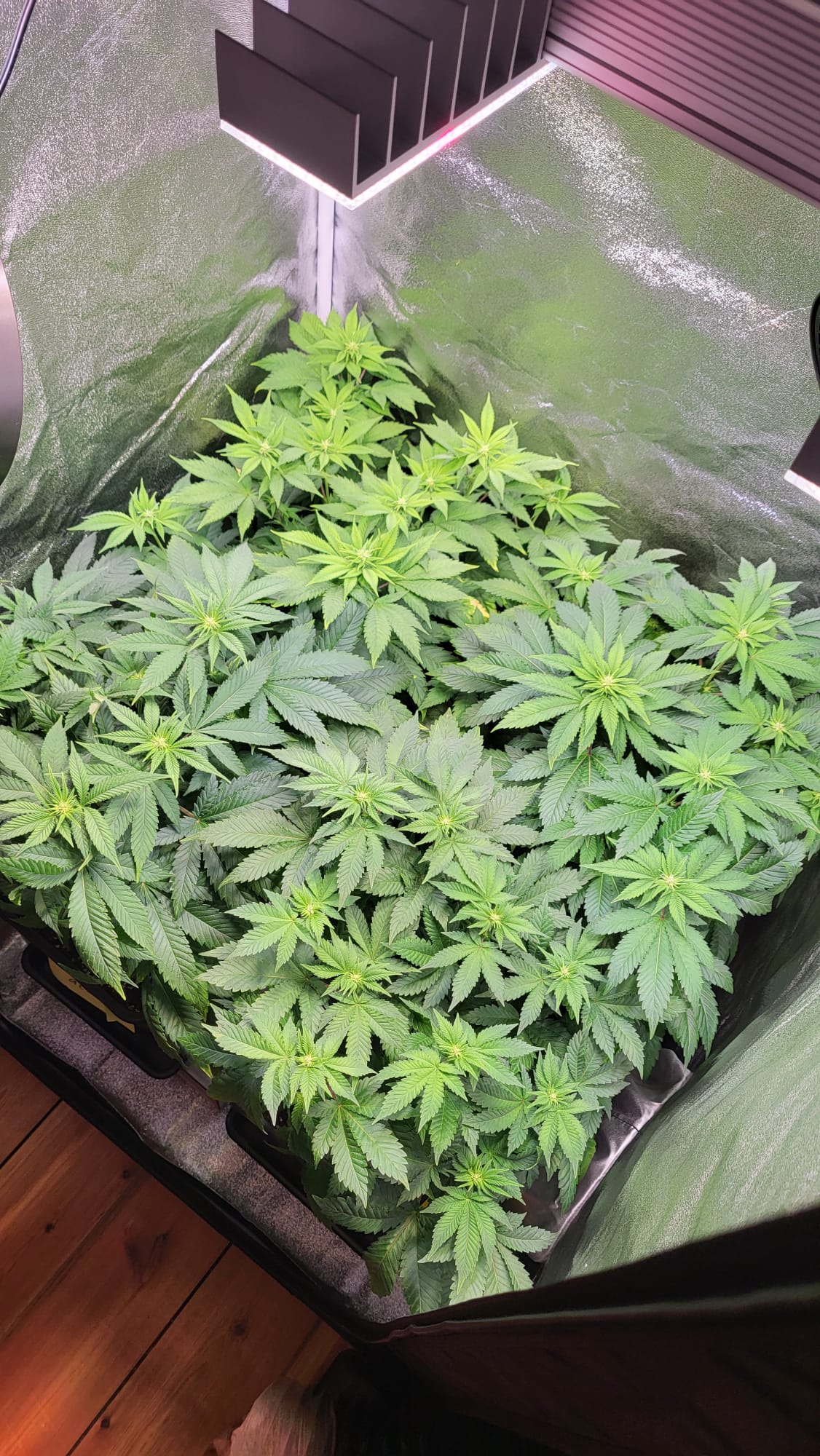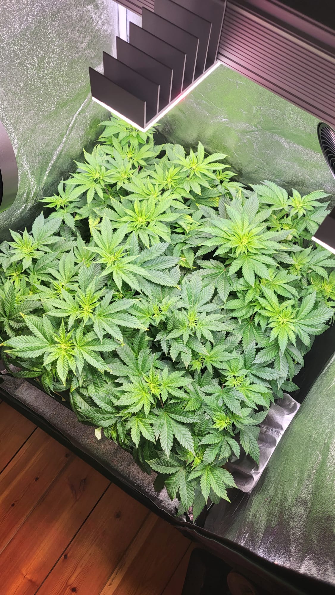 Wenn die Pflanzen dann näher an die Lampe heranwachsen, würde ich nochmal den Abstand einstellen und auf 100% gehen.