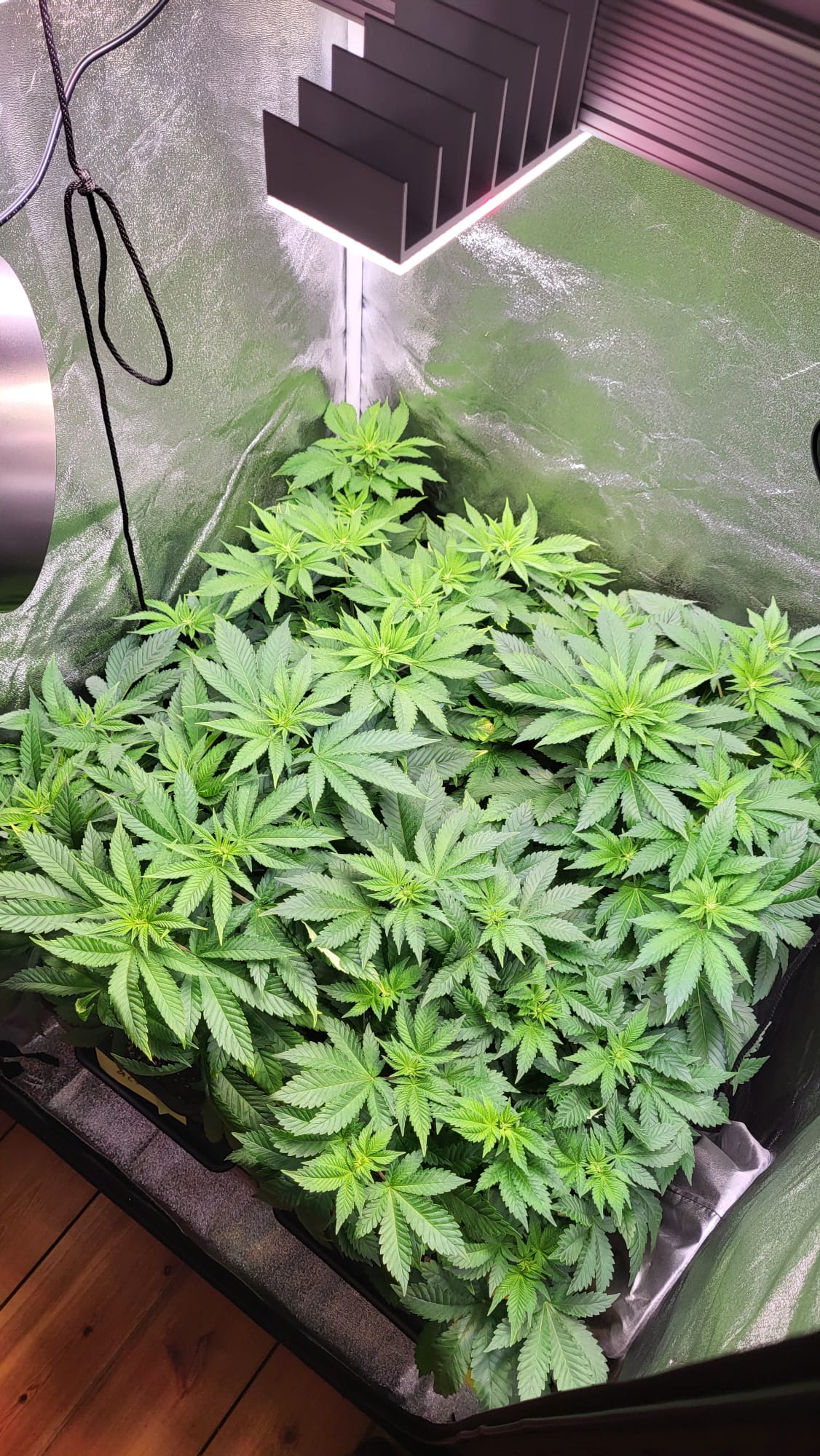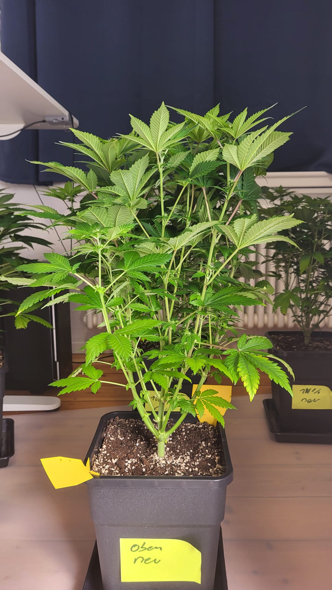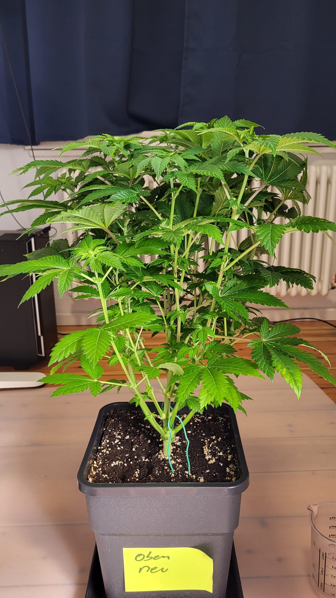 Hab heute etwas LST gemacht. Sowohl paar Triebe gedrückt als auch wieder den Gartendraht vom Nagel abgehängt.