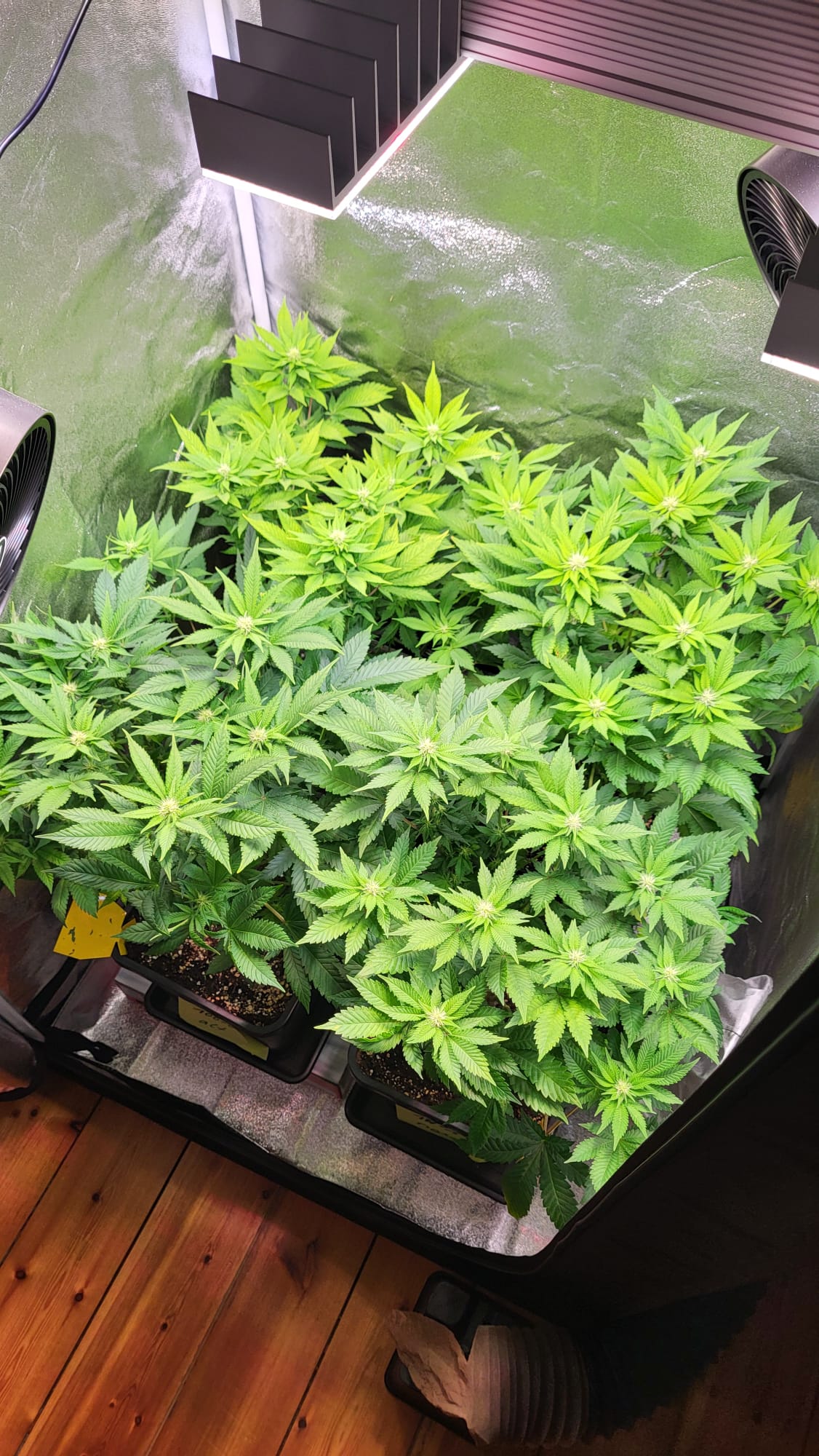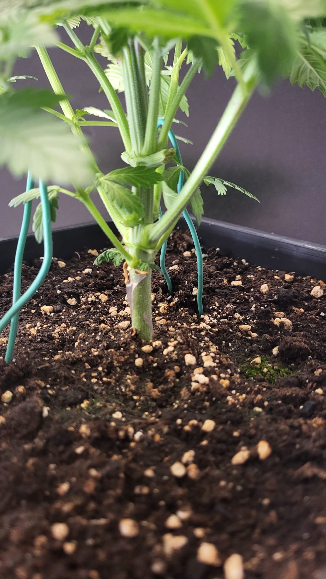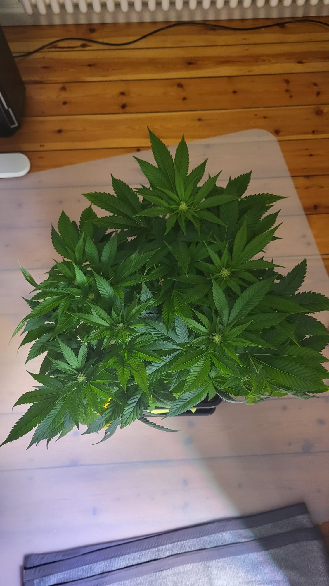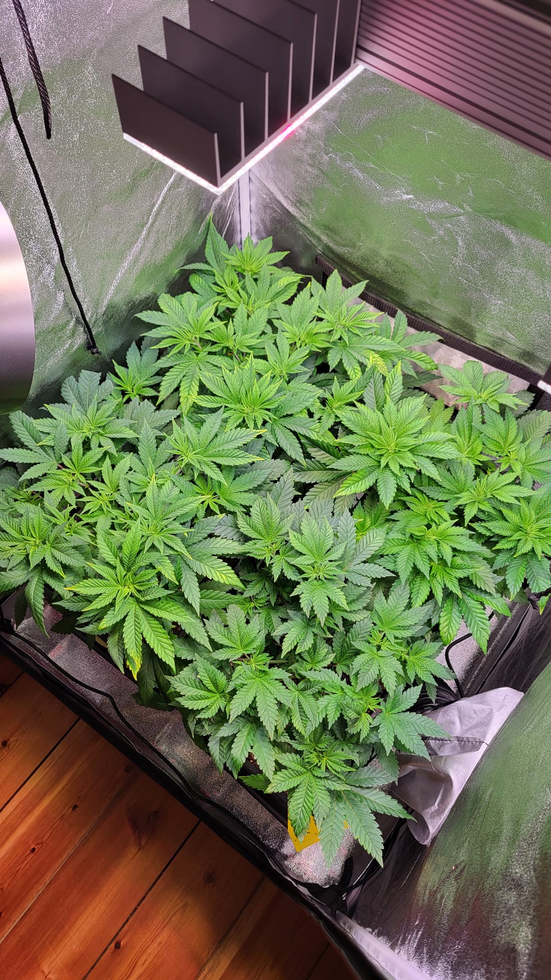 Hab heute etwas LST gemacht. Sowohl paar Triebe gedrückt als auch wieder den Gartendraht vom Nagel abgehängt.