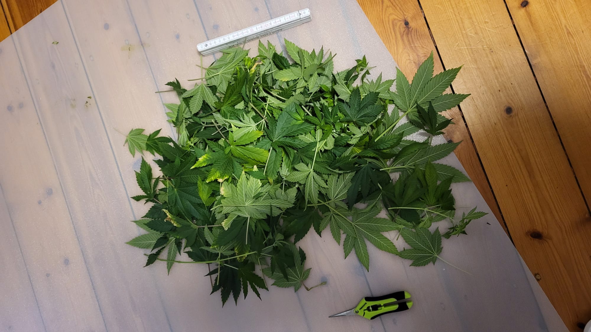 Vielleicht ist Lolipoppen hier nicht 100% der richtige Begriff. Mir ging es primär darum mit HST den Airflow und Lichtflow zu verbessern. Hab die Blätter entfernt, die in die Mitte gewachsen sind oder sehr viel Schatten geworfen haben und unten alles entfernt wie beim Lolipopping, aber nicht 35-50%, sondern eher bei ca. 20%. Und paar Triebe habe ich noch entfernt, die entweder zu klein waren oder den Airflow gestört haben.