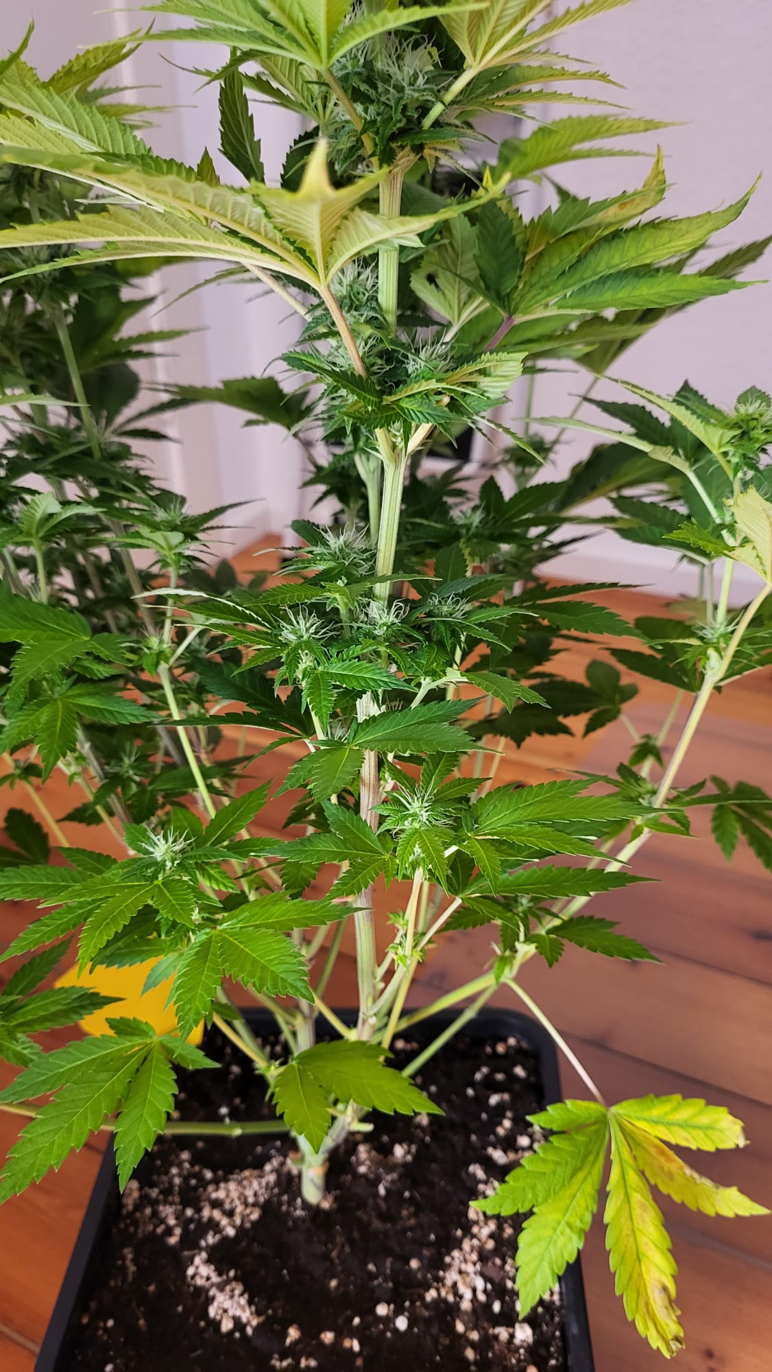 Ich hole die Pflanzen immer raus zum Gießen. Je nachdem wie ich sie rein tue, berühren sie wahrscheinlich mal mehr mal weniger die Zeltwand. Es ist insgesamt sehr dicht im Zelt. Die Pflanzen berühren sich auch gegenseitig teilweise, wenn ich sie weiter von der Wand weg tue.