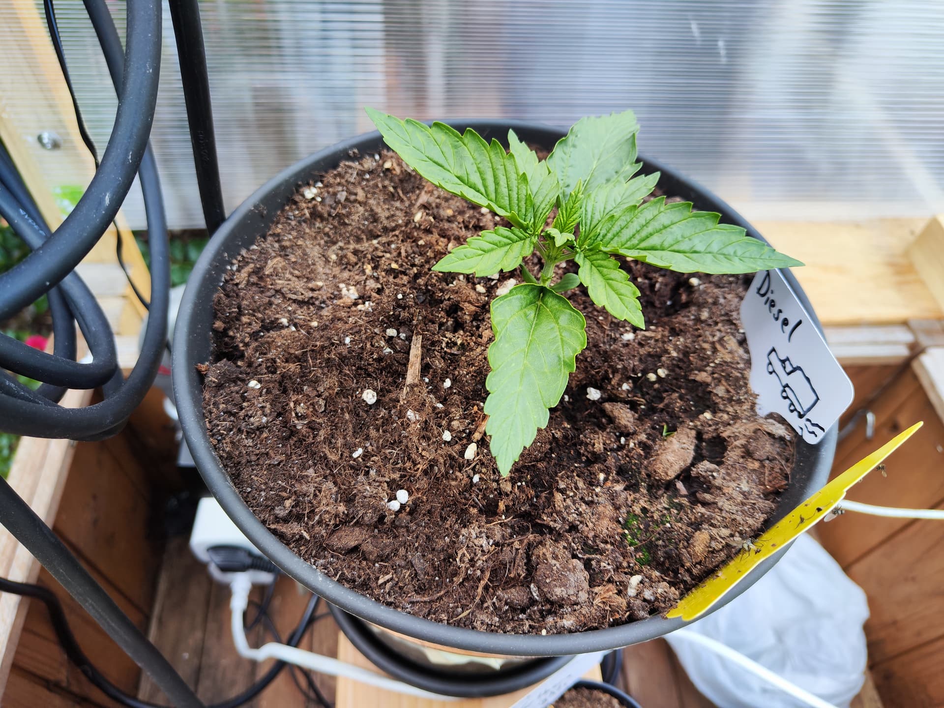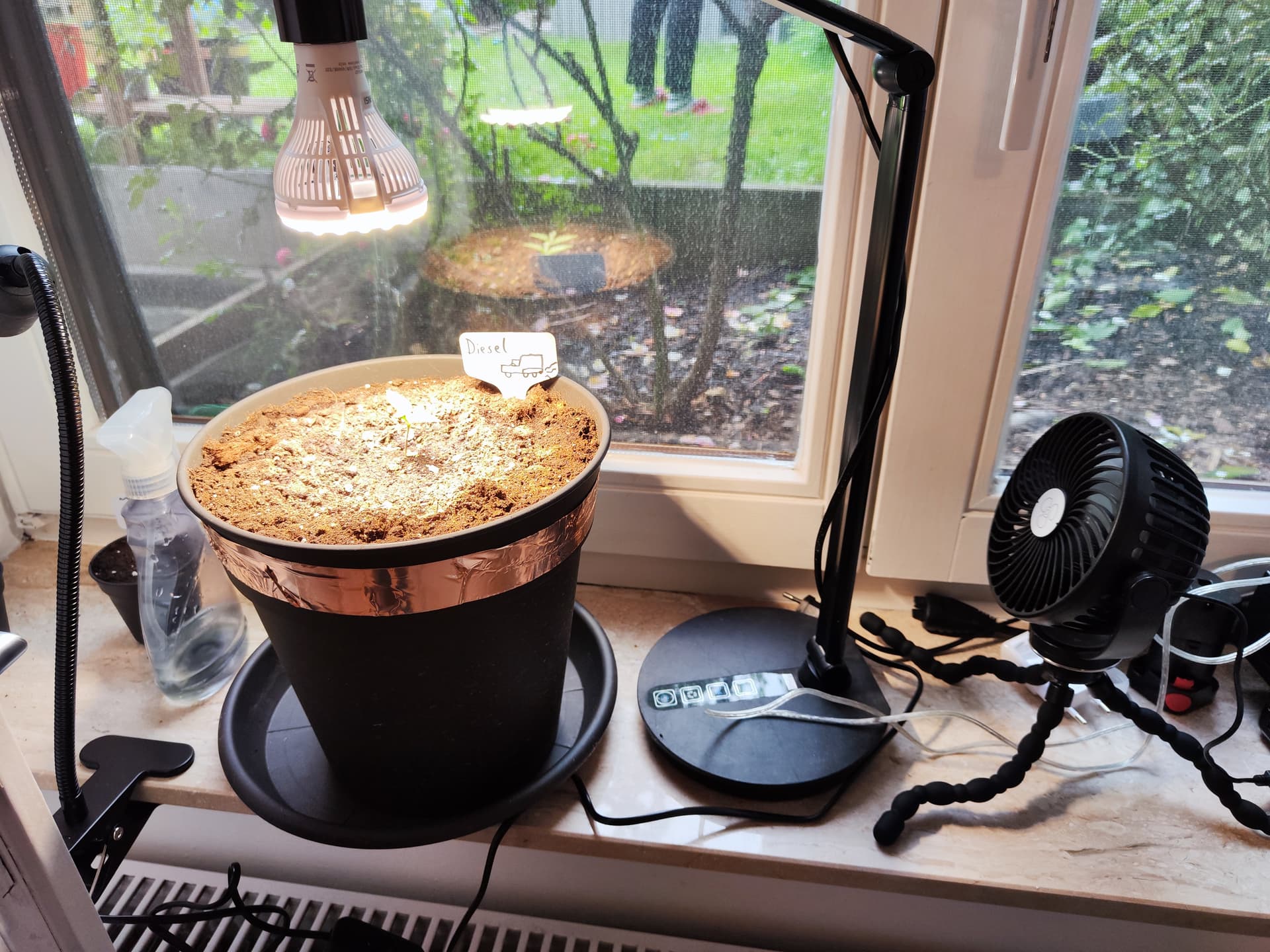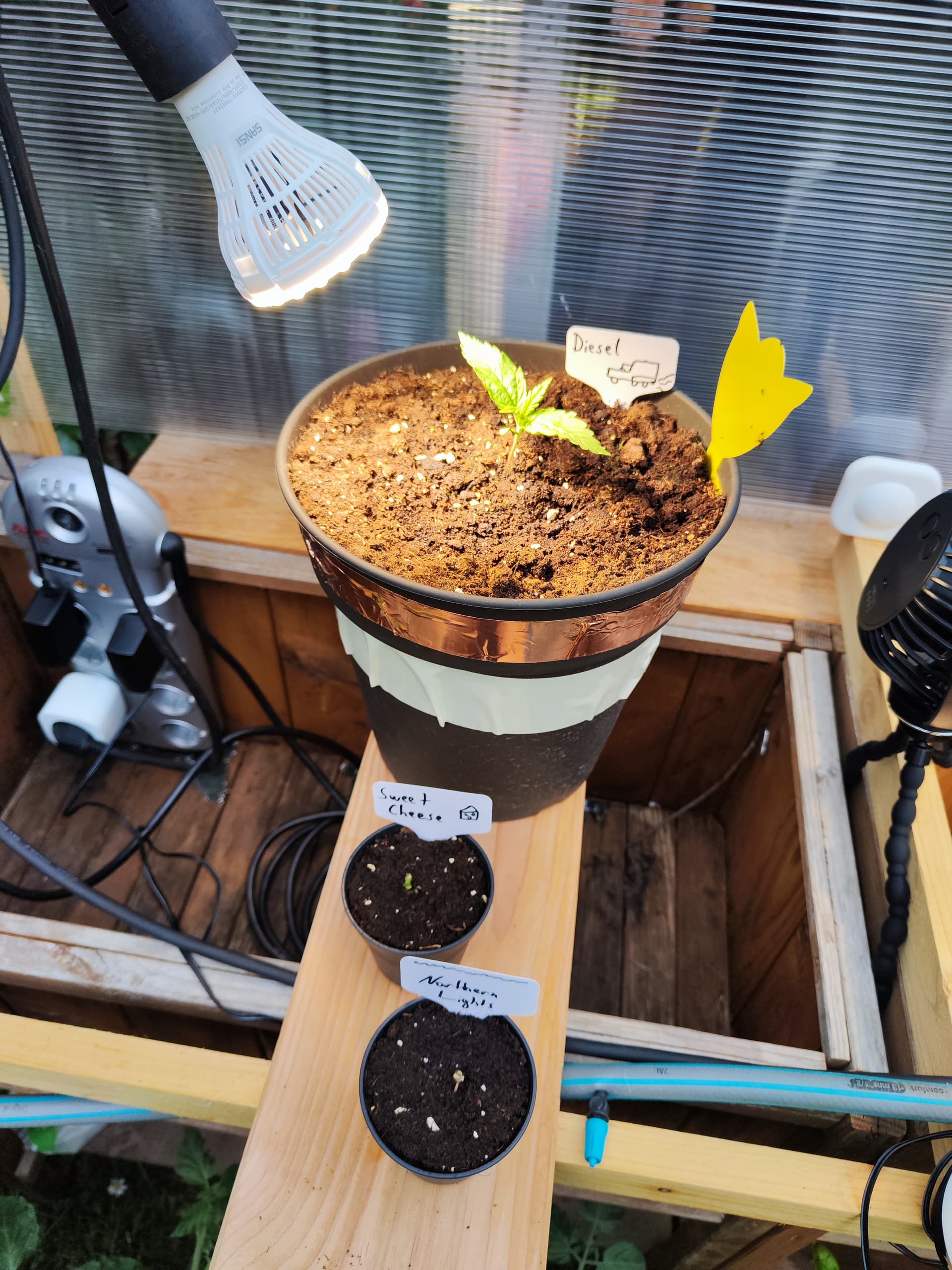 Diesel gedeiht gut ohne spargeln. Könnte etwas mehr am Stamm haben, aber Lüfter muss aktuell Sunset Sherbet aus Grow 1 retten. Topf hat ein zweites Band bekommen, wegen der gierigen Ohrlitzen. Sollten mit dem doppelseitigem Klebeband aufgehalten werden, zmd. von außen.