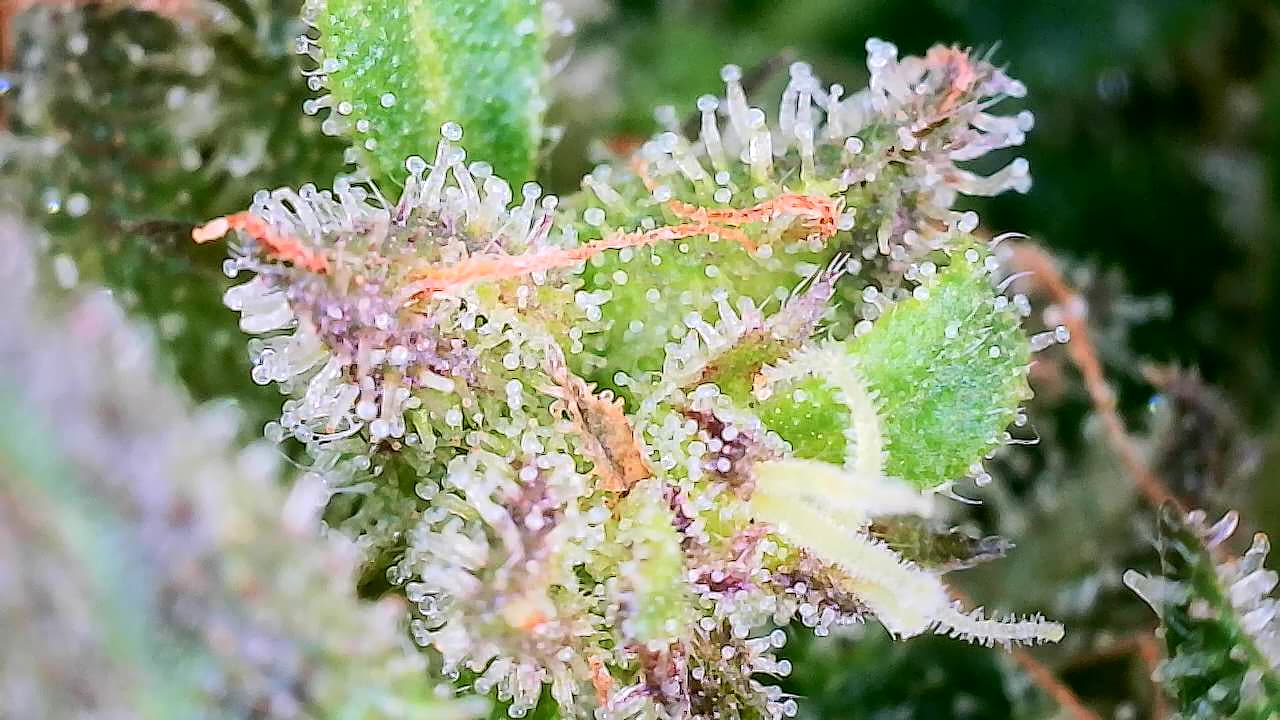 Die Sticky Orange XXL (Tag 35) geht ebenfalls ordentlich ab und hat inzwischen 53cm an Höhe gemacht. Denke mal da fängt bald die Blüte an, die Geschlechtsmerkmale sind bereits gut zu sehen. ![]()