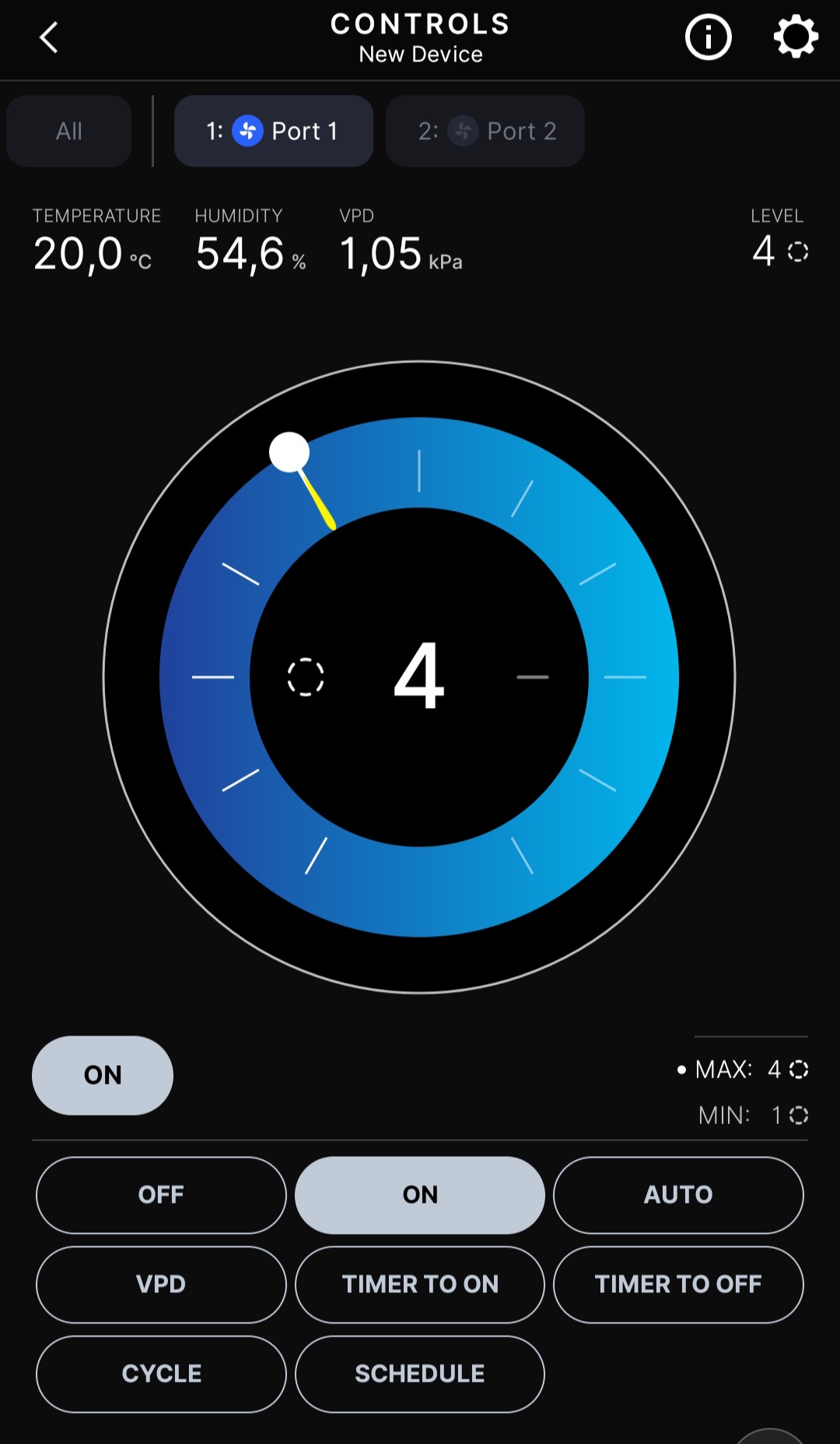 Stellst du den OFF Wert auf 2 ein, läuft er halt immer auf mindestens 2 und geht nicht aus!