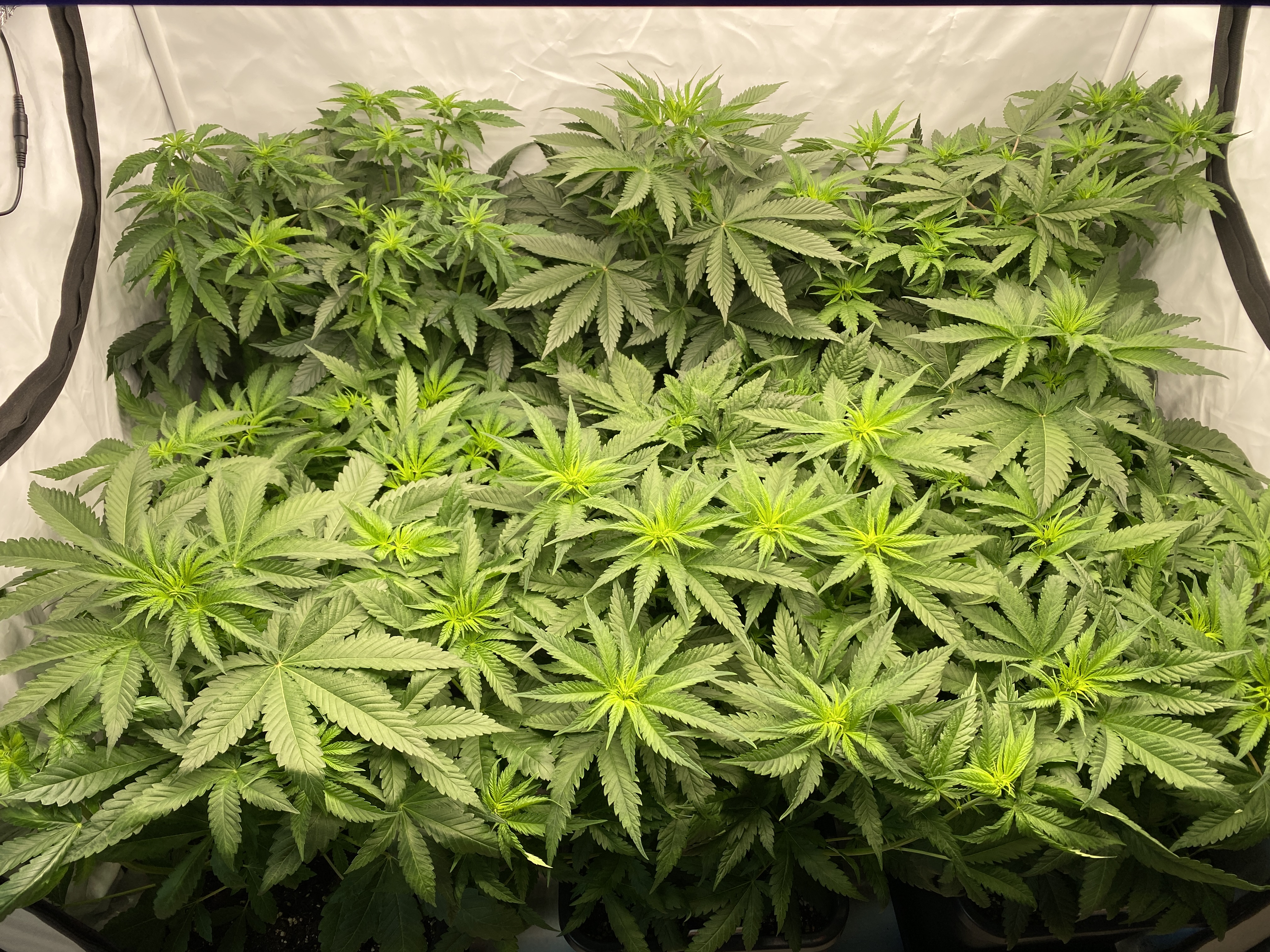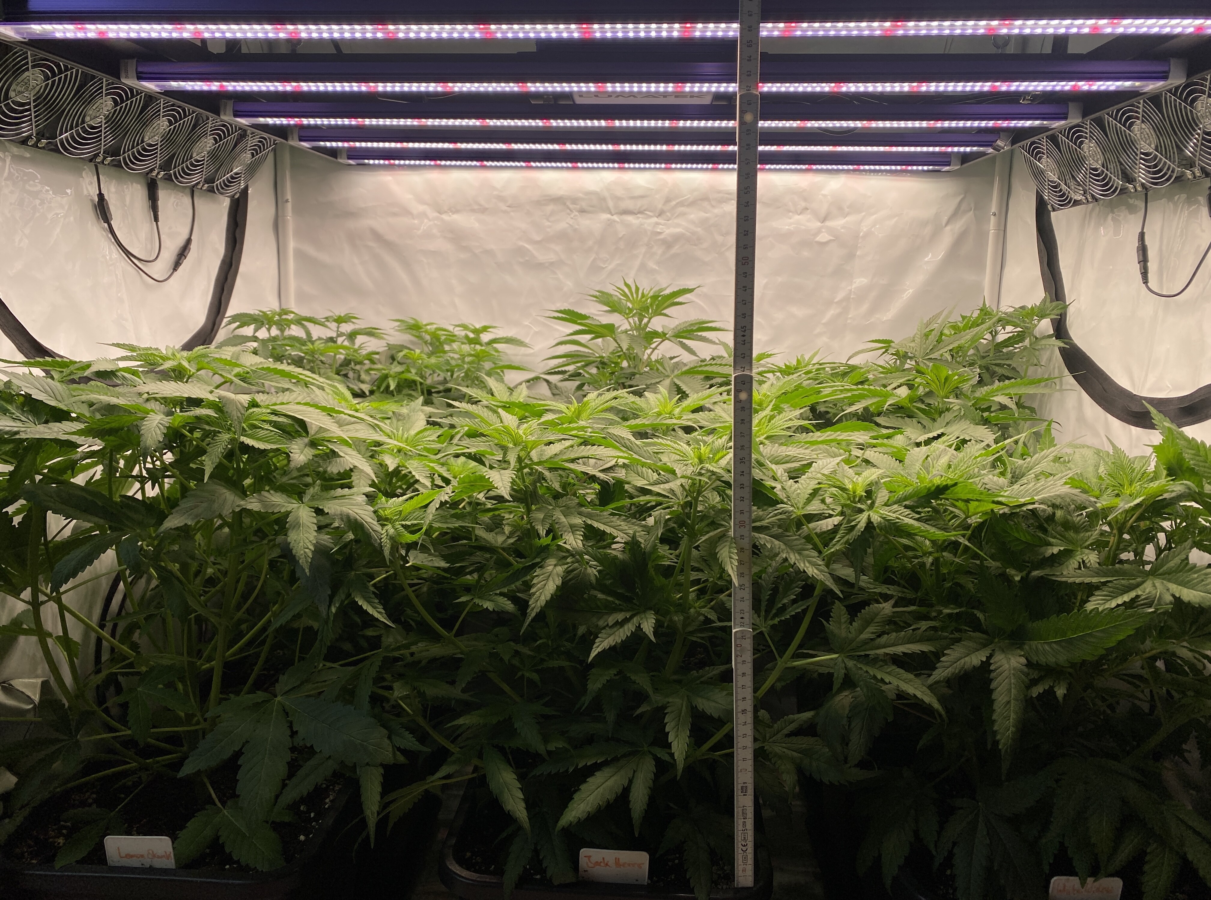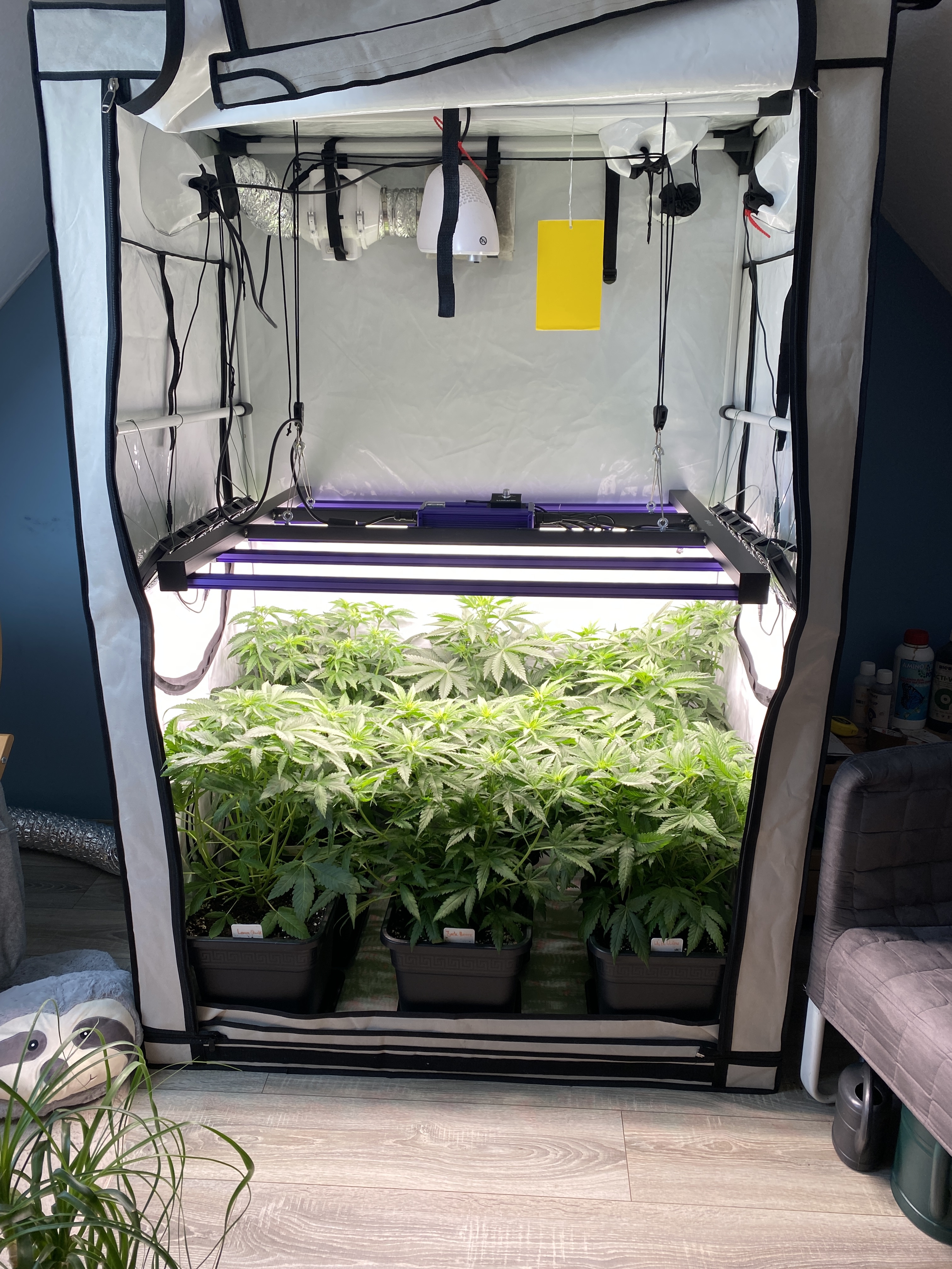 Heute stehen die Pflanzen auf VT29, laut DLI Plan sollen sie sich 6 Wochen in der Vegetationphase halten, bevor man auf Blüte umstellt.