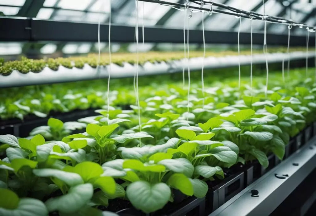 Es geht um Aeroponik. Dabei werden normalerweise mit hohem Druck Nährstoffe in Wasser gelöst von unten an die Pflanze gespritzt. Im Unterschied zu aquaponischen Systemen, wo die Pflanze im Wasser hängt und im Wasser eine Luftpumpe arbeitet, damit die Pflanze auch genügend Luft bekommt.