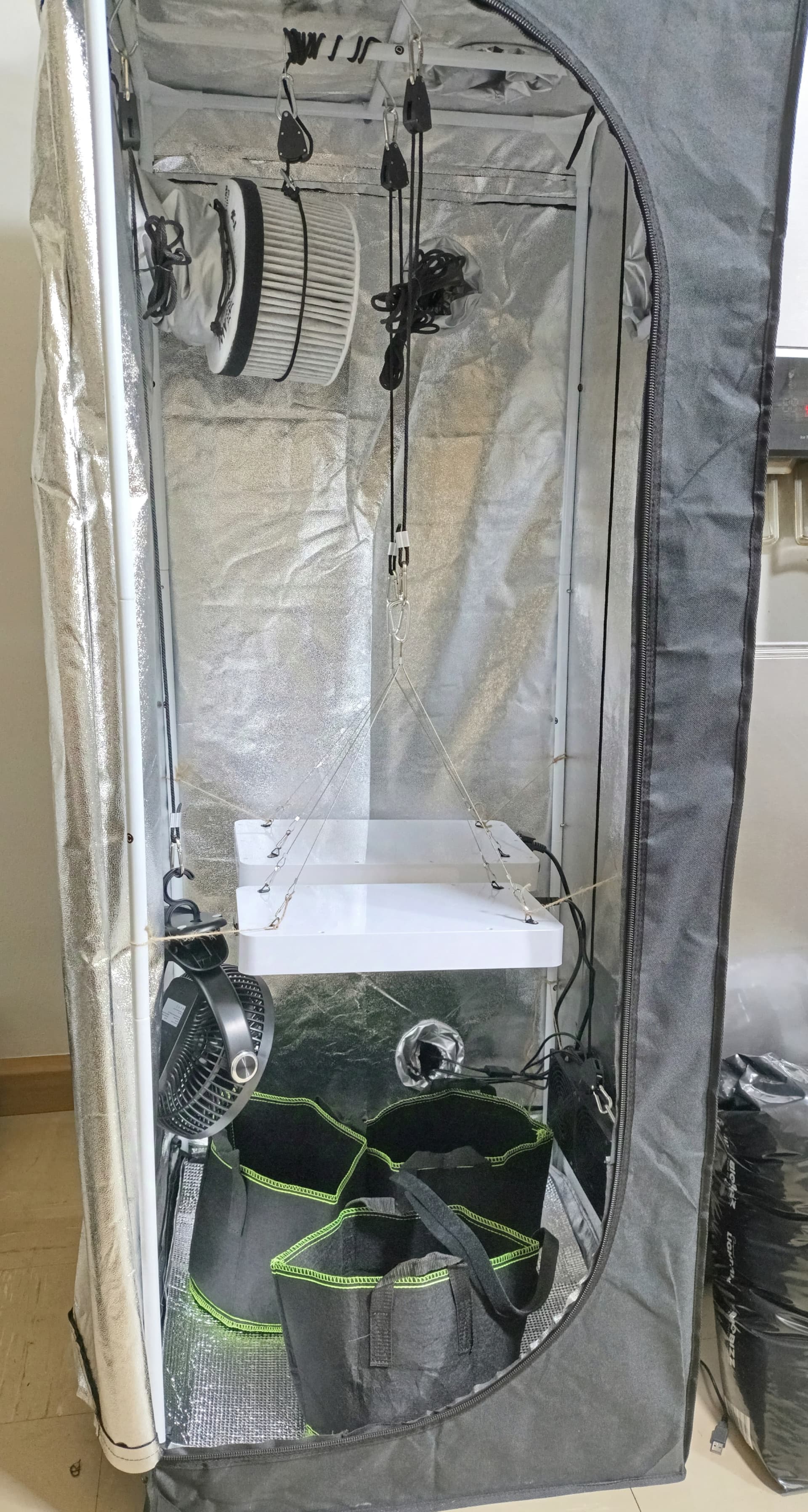 Mit Mini-Gewächshaus und Jiffys will ich die Special Kush hochziehen. Eigentlich sollte ich ein zweites Zelt bekommen. Da gibt es aber Schwierigkeit, also muss ich noch wahrscheinlich für eine der beiden seeds entscheiden.