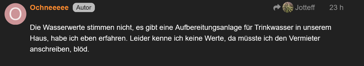 Dennoch wurde ich erstmal nicht am Wasser rummatschen. Einfach mal laufen lassen, warten was passiert und Notizen dazu machen.